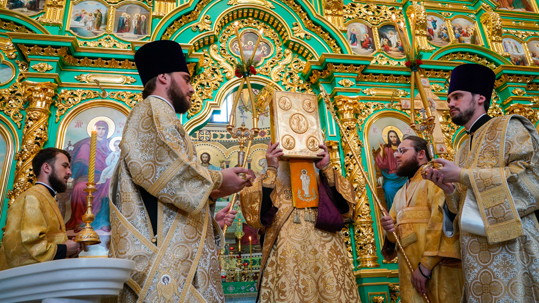 По окончании богослужения Блаженнейший Владыка Онуфрий поздравил сослужащих архиереев, братию и всех верующих с воскресным днем, причастников — с принятием Тела и Крови Христовых и призвал на паству Божие благословение.