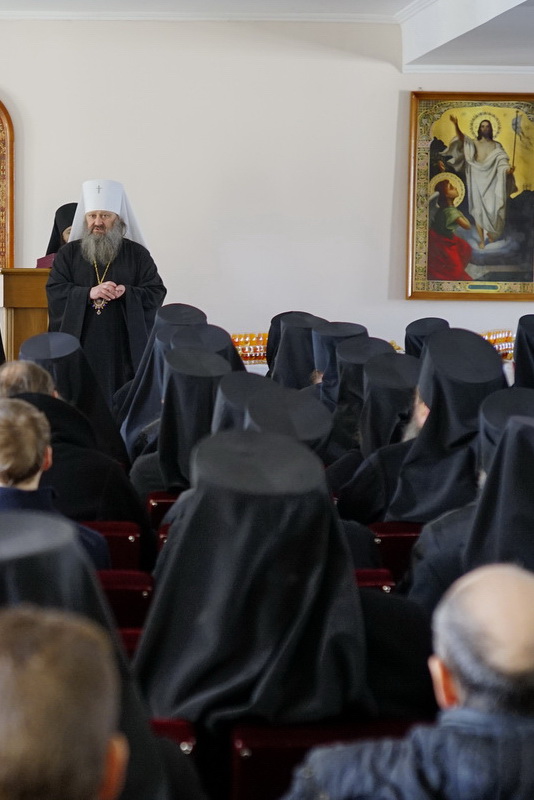 Владыка напомнил, что Господь сподобил его за 20 лет наместничества совершить постриг большинства братии Лавры. Он сказал, что управляет Лаврой не столько поставленное начальство, сколько Божья Матерь, а чтобы удостоиться быть Её сынами, необходимо идти путями Божиими.
