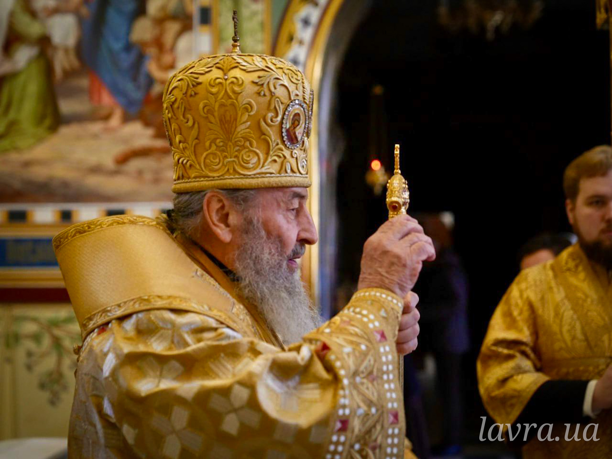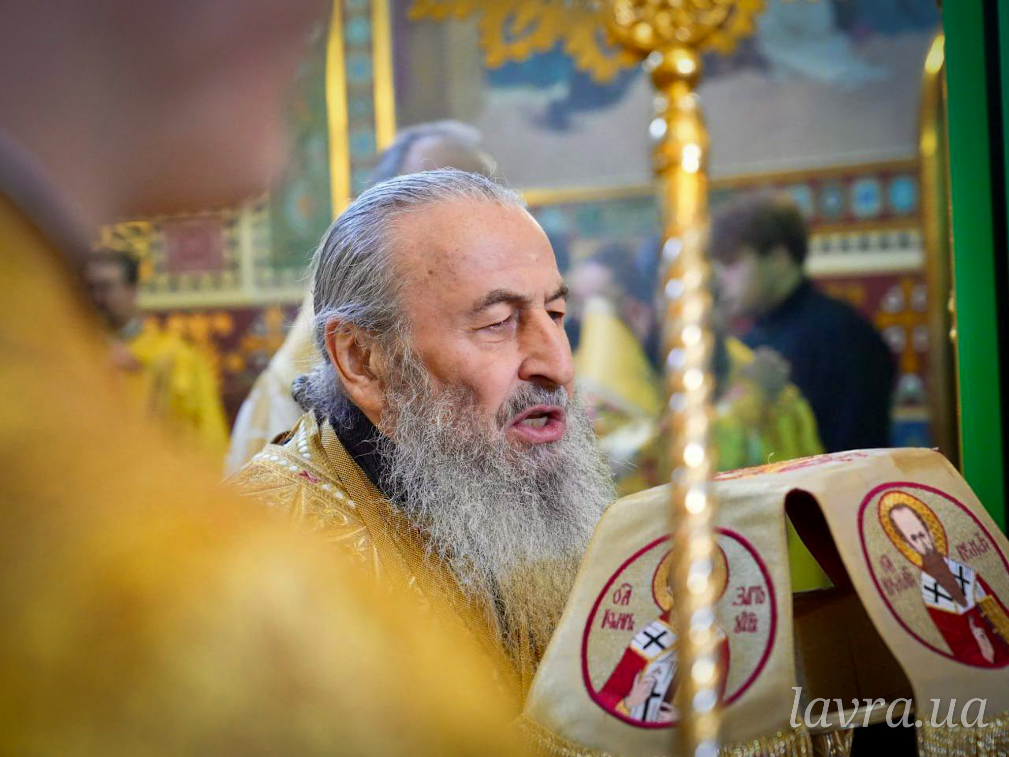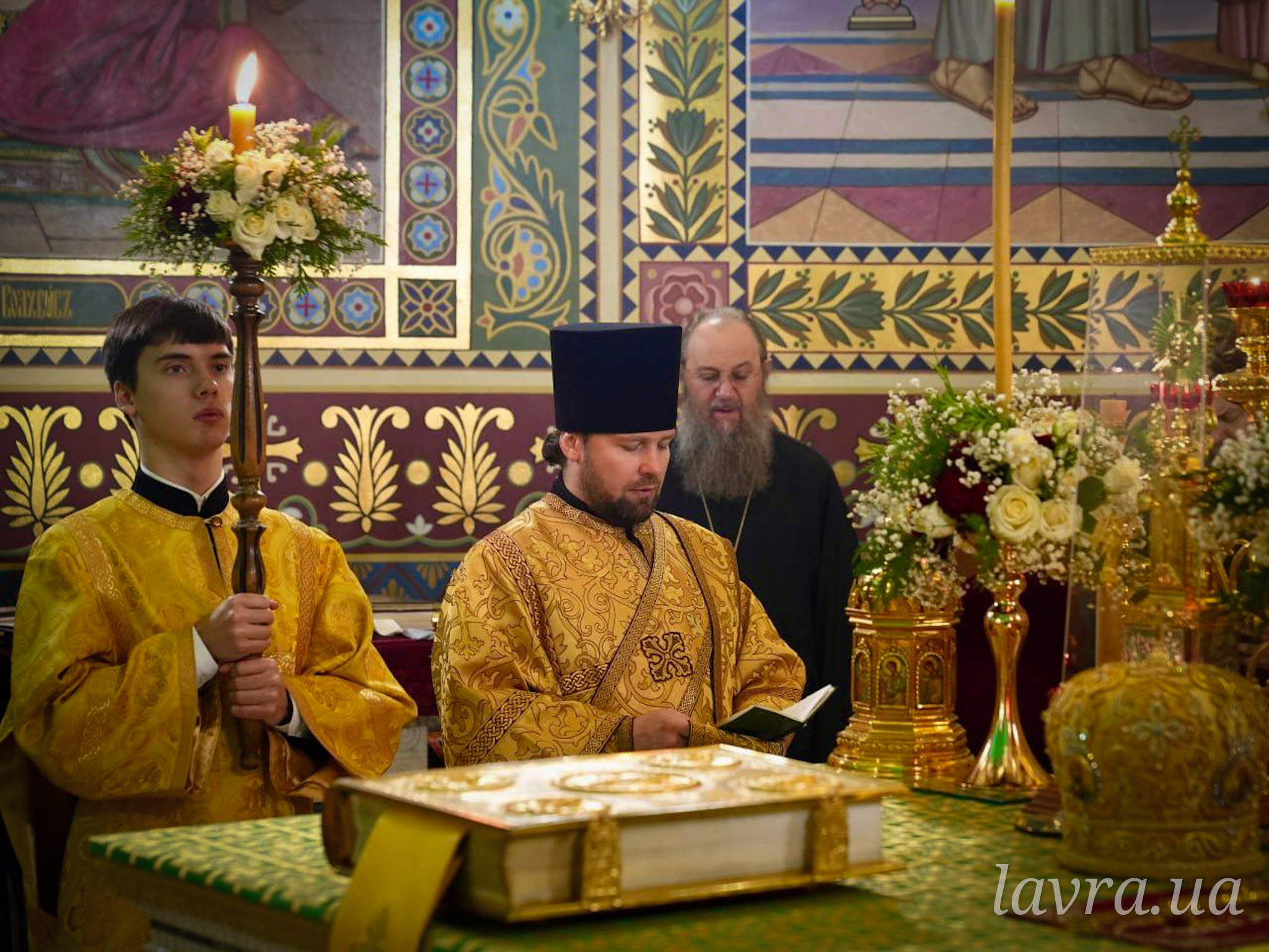 Во время богослужения Предстоятелю Украинской Православной Церкви сослужили управляющий делами УПЦ митрополит Бориспольский и Броварской Антоний, архиепископ Ирпенский Лавр, архиепископ Бородянский Марк, архиепископ Бышевский Кирилл, а также братия и гости обители в священном сане во главе с духовником Лавры архимандритом Антонием.