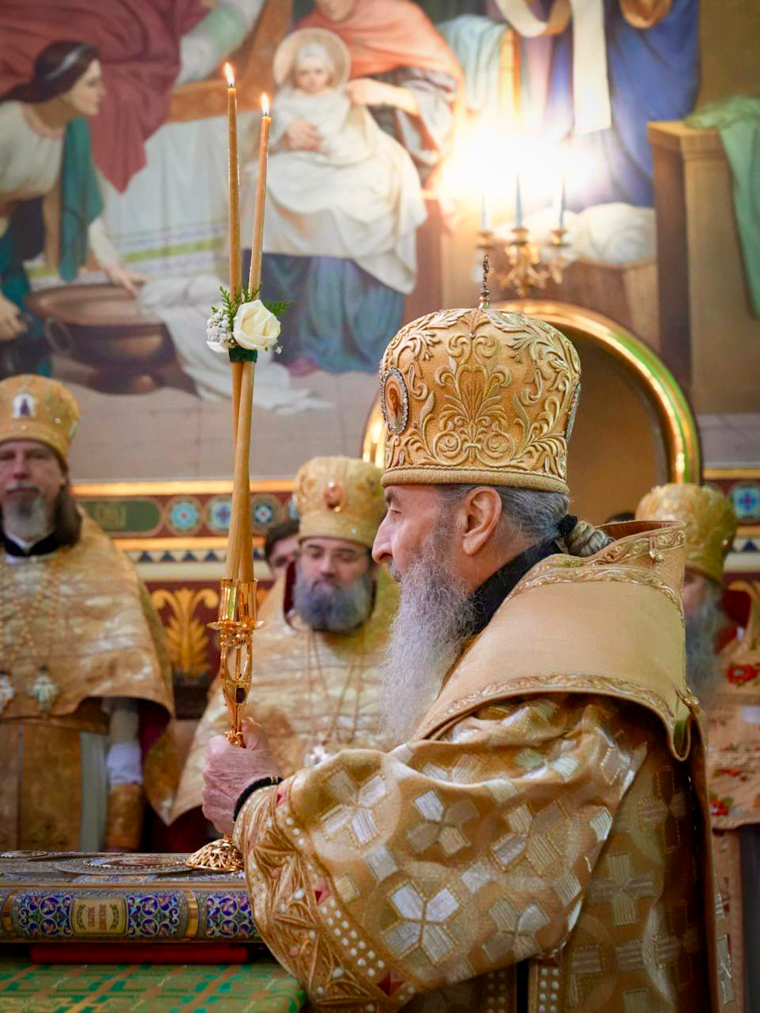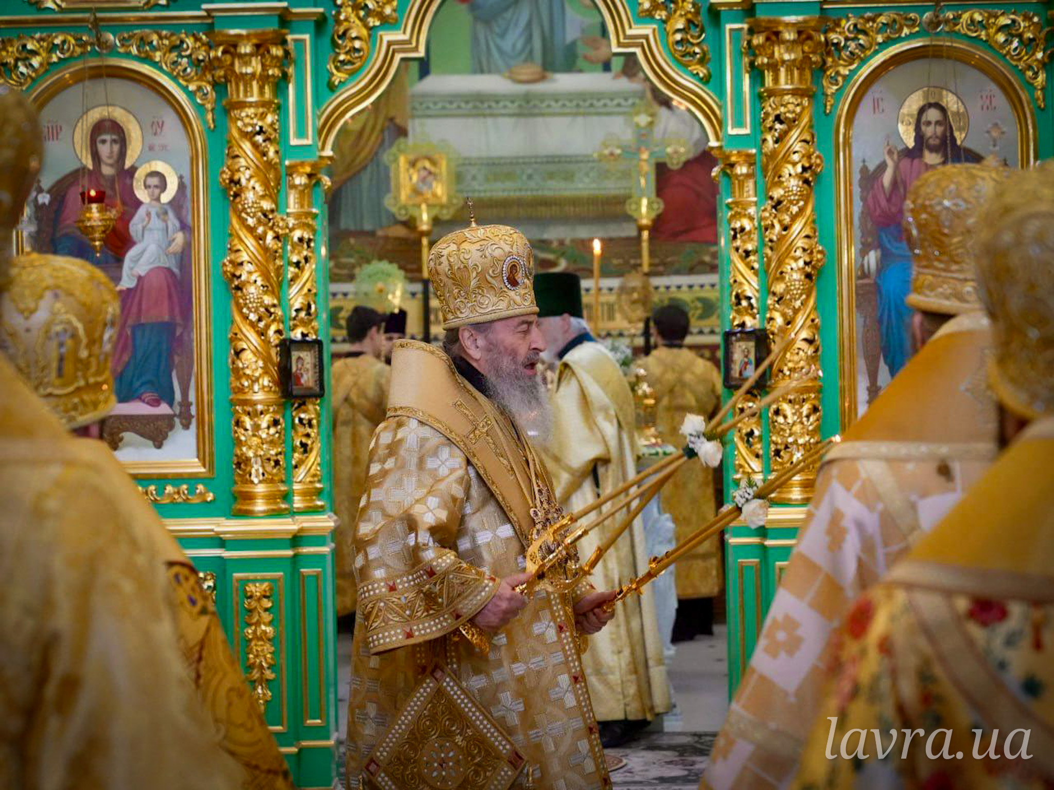 Накануне вечером было совершено всенощное бдение с праздничной литией. Соборное богослужение возглавил управляющий делами УПЦ митрополит Антоний.