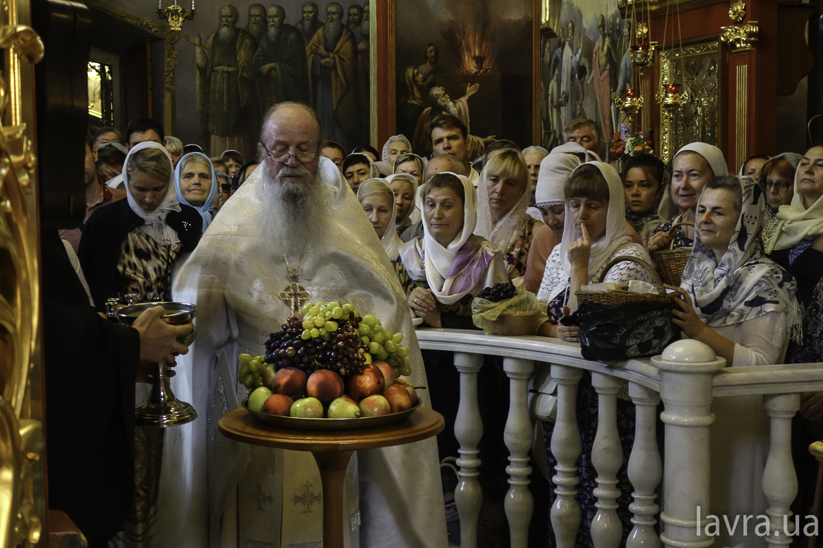 According to the ancient tradition fresh fruits were consecrated at the end of the services including the brethren Divine Liturgy at the Church of the Exaltation of the Holy Cross in the Lavra.