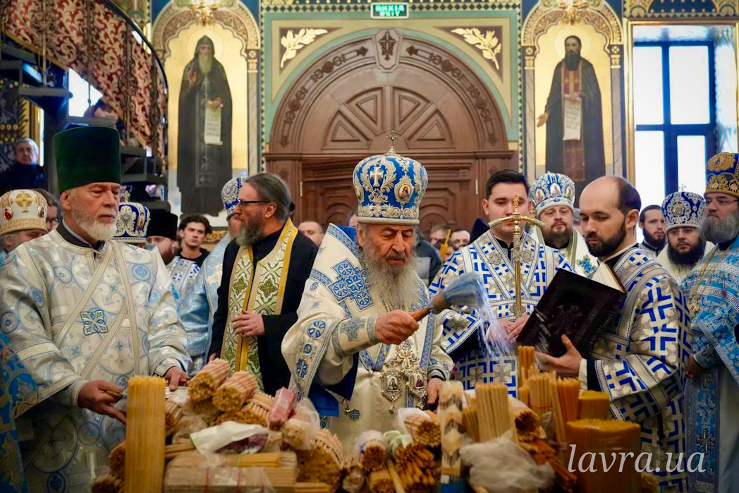 Before the beginning of the Liturgy, the Sacred Archimandrite of the Kyiv-Pechersk Lavra presided over the rite of the blessing of candles.