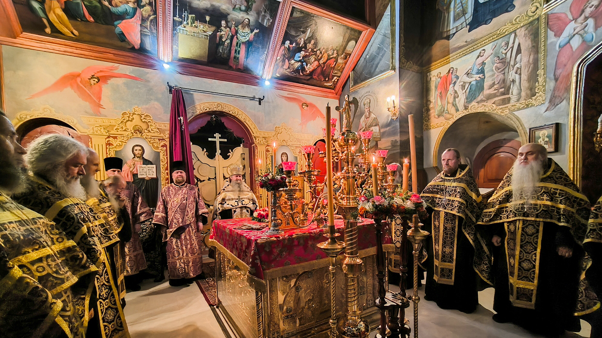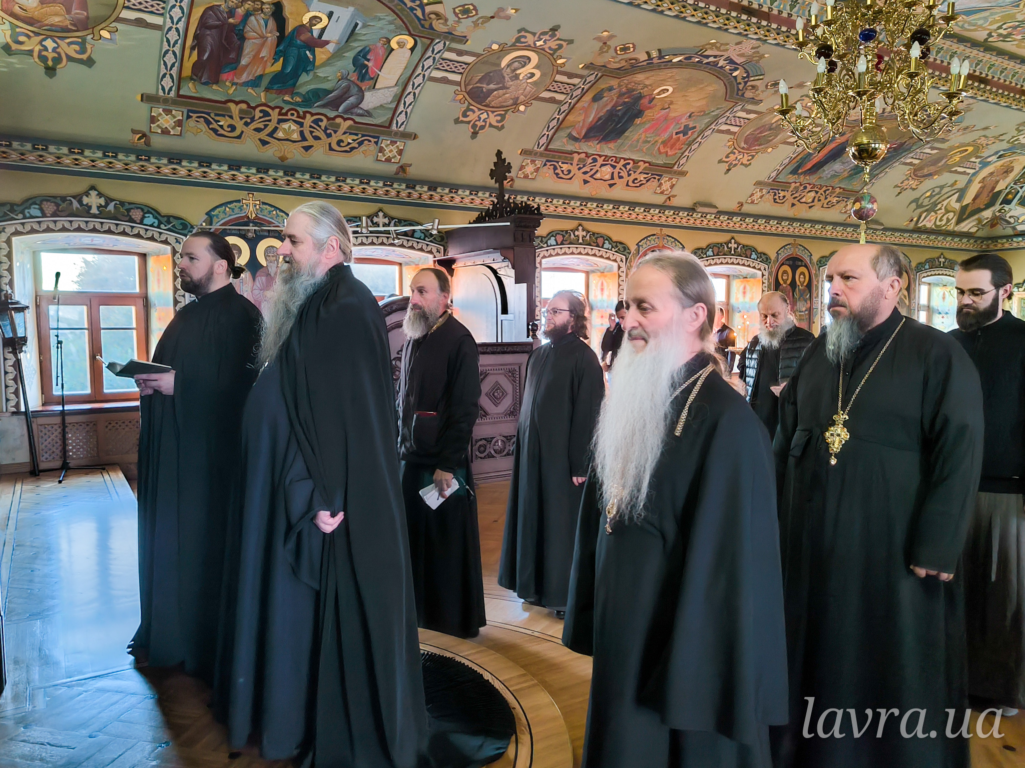 Накануне вечером братское всенощное бдение в Крестовоздвиженском храме возглавил духовник Киево-Печерской Лавры архимандрит Антоний в сослужении священнослужителей обители.