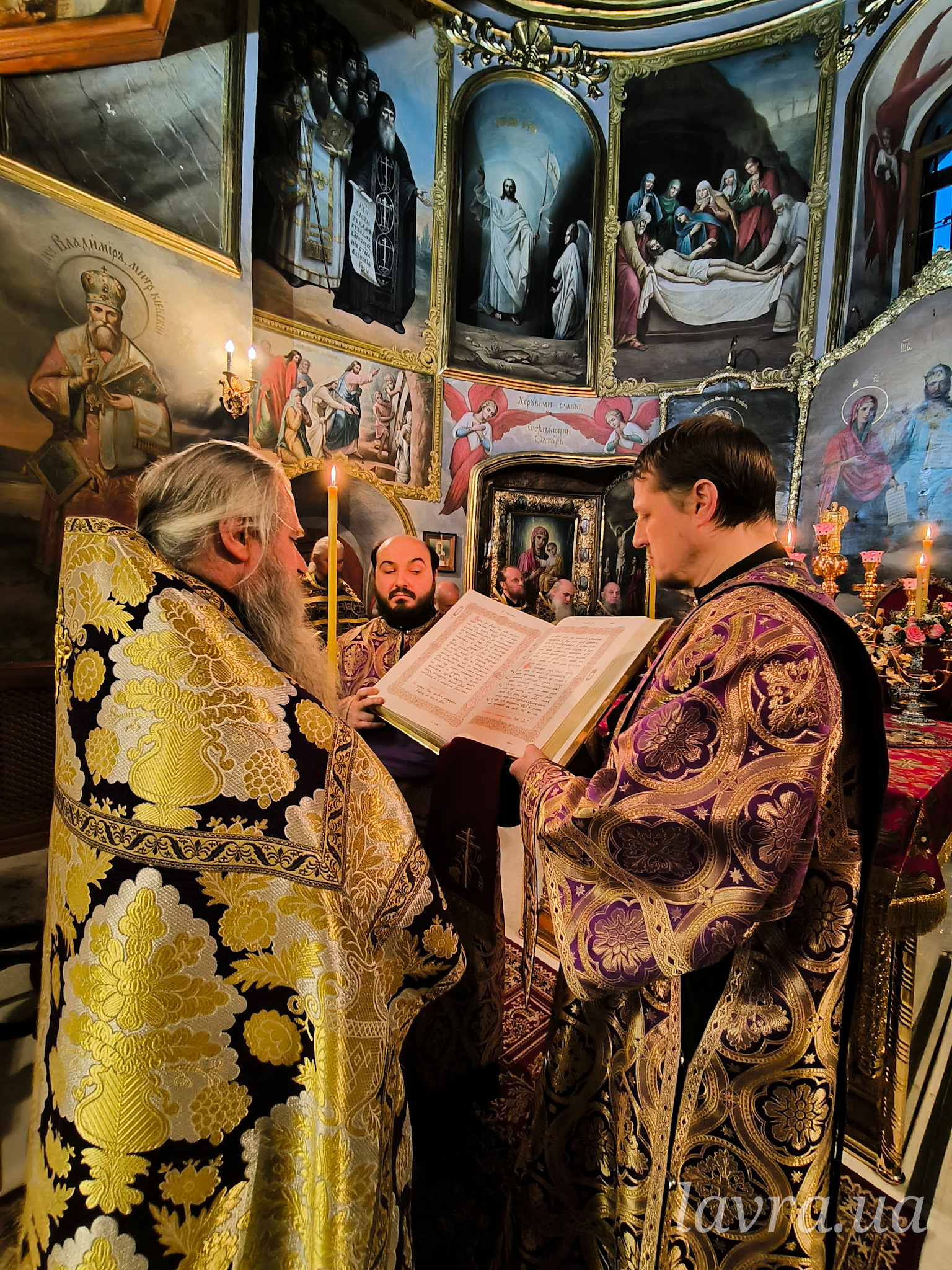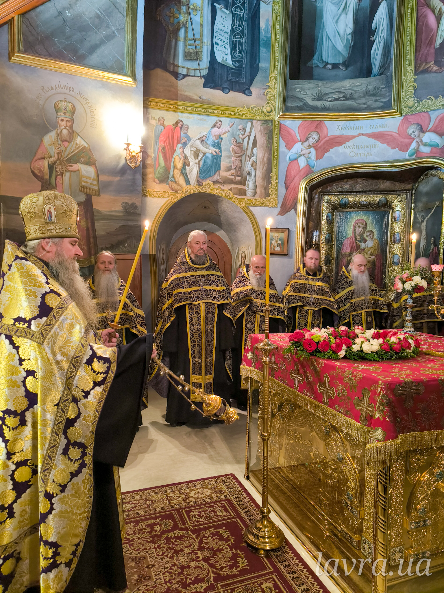 В храме во имя прп. Агапита Печерского всенощную с праздничной литией совершил Священноархимандрит Киево-Печерской обители Блаженнейший Митрополит Киевский и всея Украины Онуфрий. Во время богослужения Предстоятелю Украинской Православной Церкви сослужили управляющий делами УПЦ митрополит Бориспольский и Броварской Антоний, председатель Информационно-просветительского отдела УПЦ митрополит Нежинский и Прилукский Климент, архиепископ Ирпенский Лавр, архиепископ Бородянский Марк, а также братия и гости обители в священном сане во главе с благочинным архимандритом Иларионом.