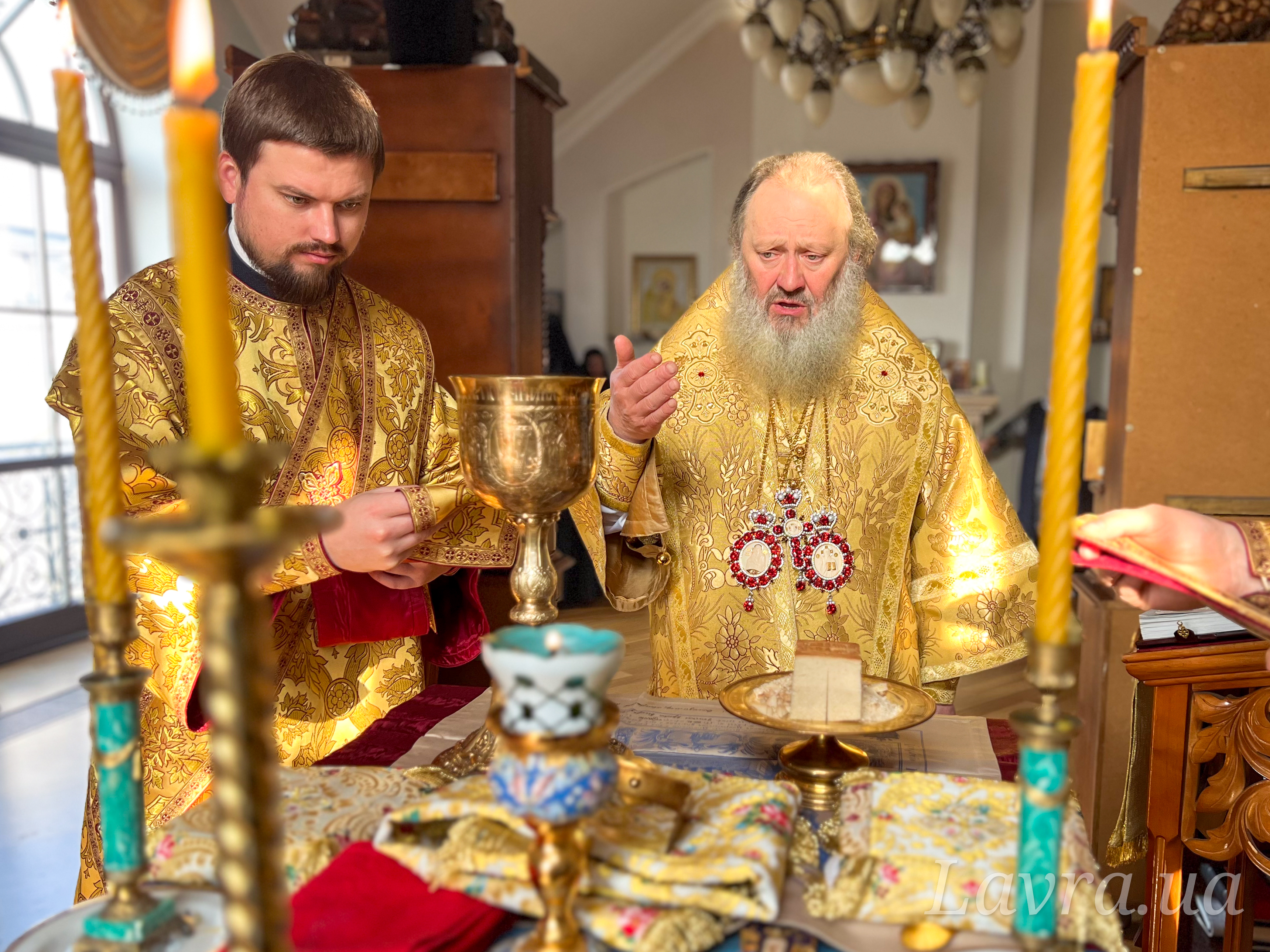В день памяти вселенских учителей и святителей Василия Великого, Григория Богослова и Иоанна Златоустого Наместник Киево-Печерской Лавры митрополит Вышгородский и Чернобыльский Павел совершил Божественную Литургию (а накануне вечером – всенощную) в домовом храме.