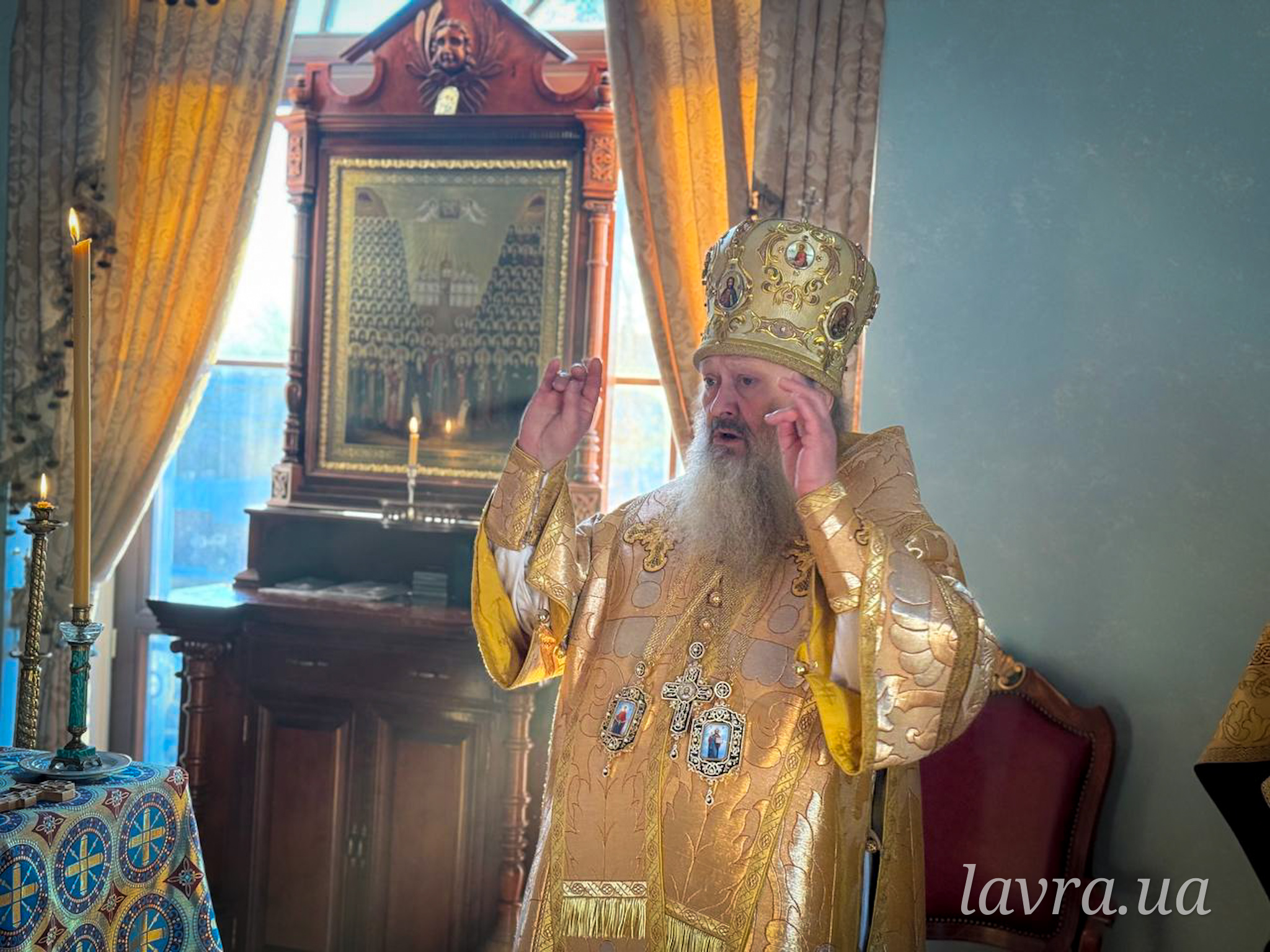 Воскресное богослужение в домовом храме возглавил Наместник Киево-Печерской обители митрополит Вышгородский и Чернобыльский Павел в сослужении священнослужителей Лавры.