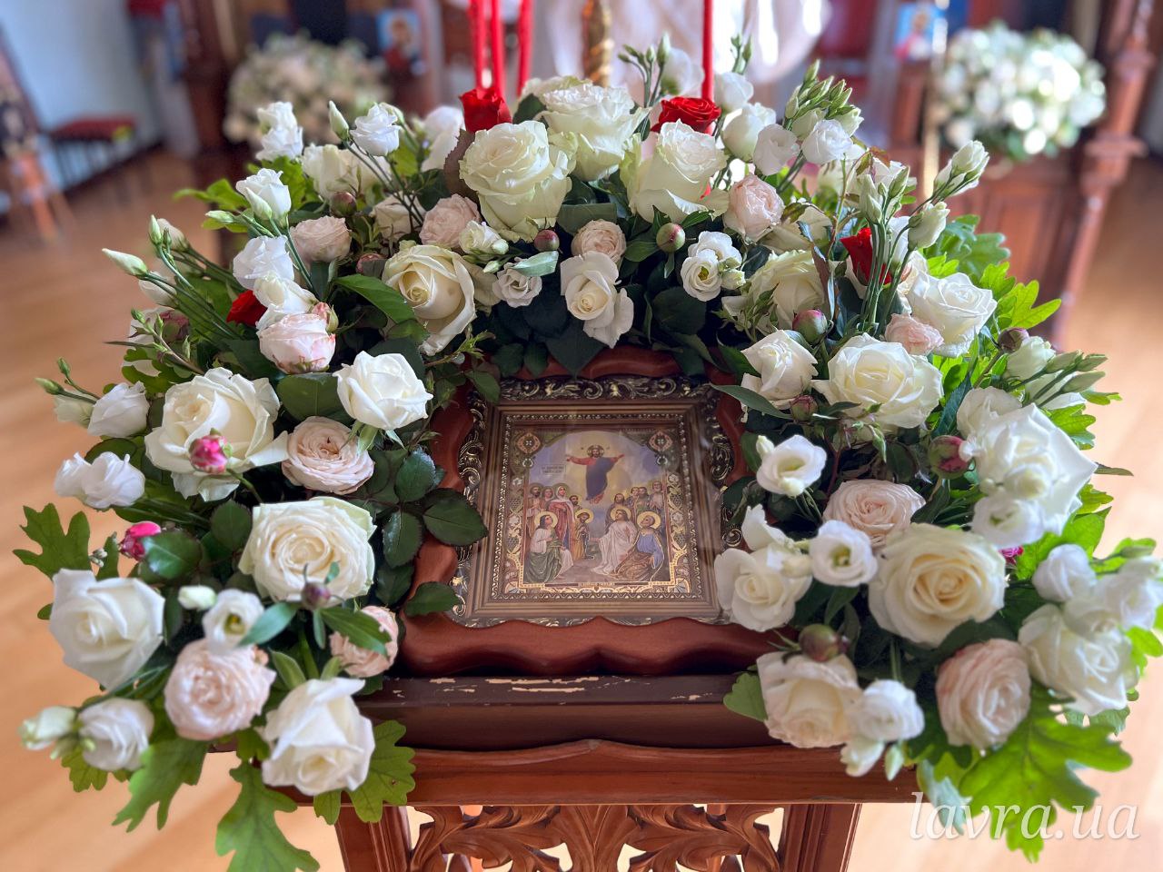 По окончании Литургии были пропеты тропарь, кондак и величание праздника Вознесения Господня.