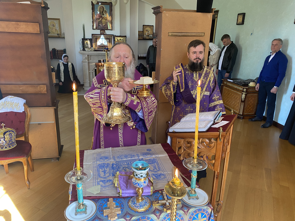 За Литургией возносились особые прошения о даровании мира и тишины в земле нашей украинской и избавлении от всякого врага и супостата, а также о благословении Божием для принимающих у себя тех, кто был вынужден оставить свои родные дома.