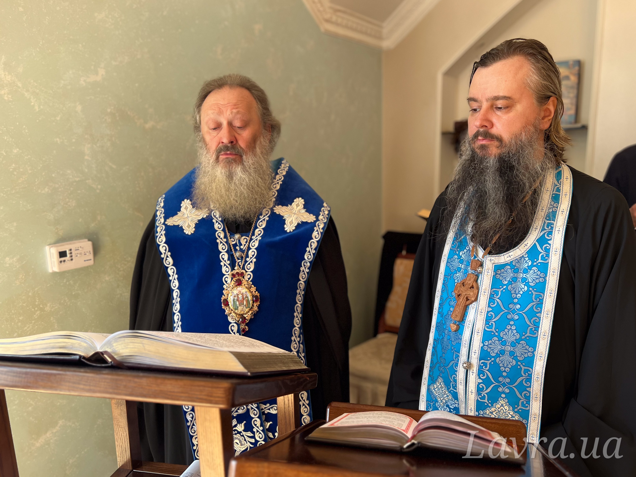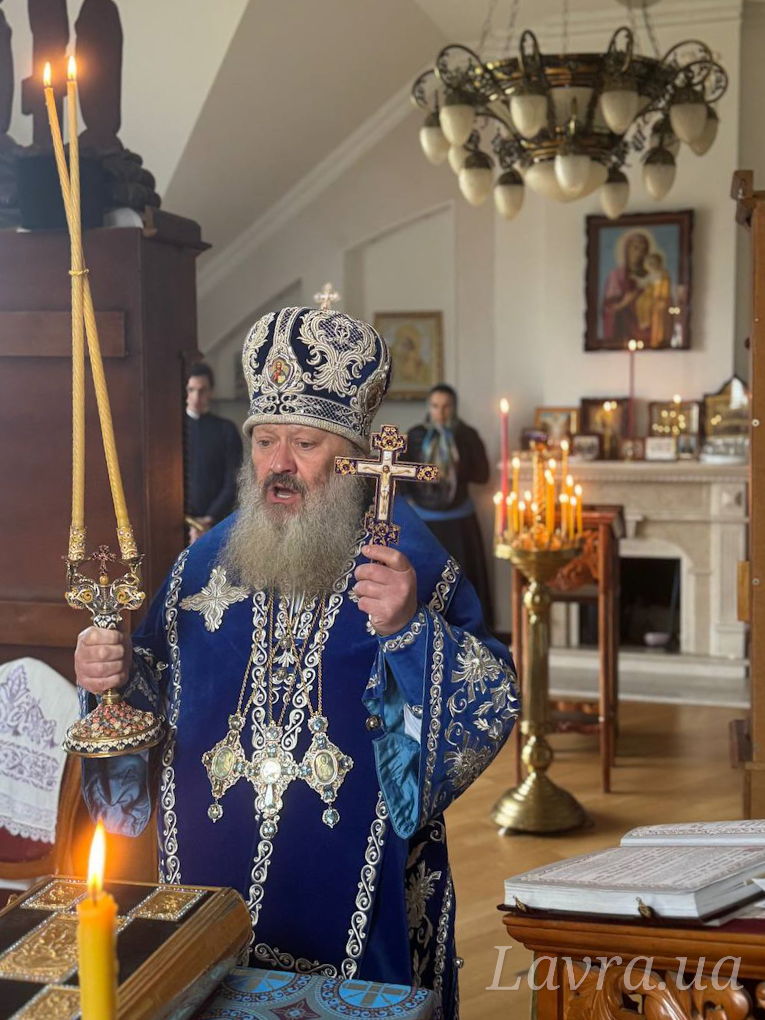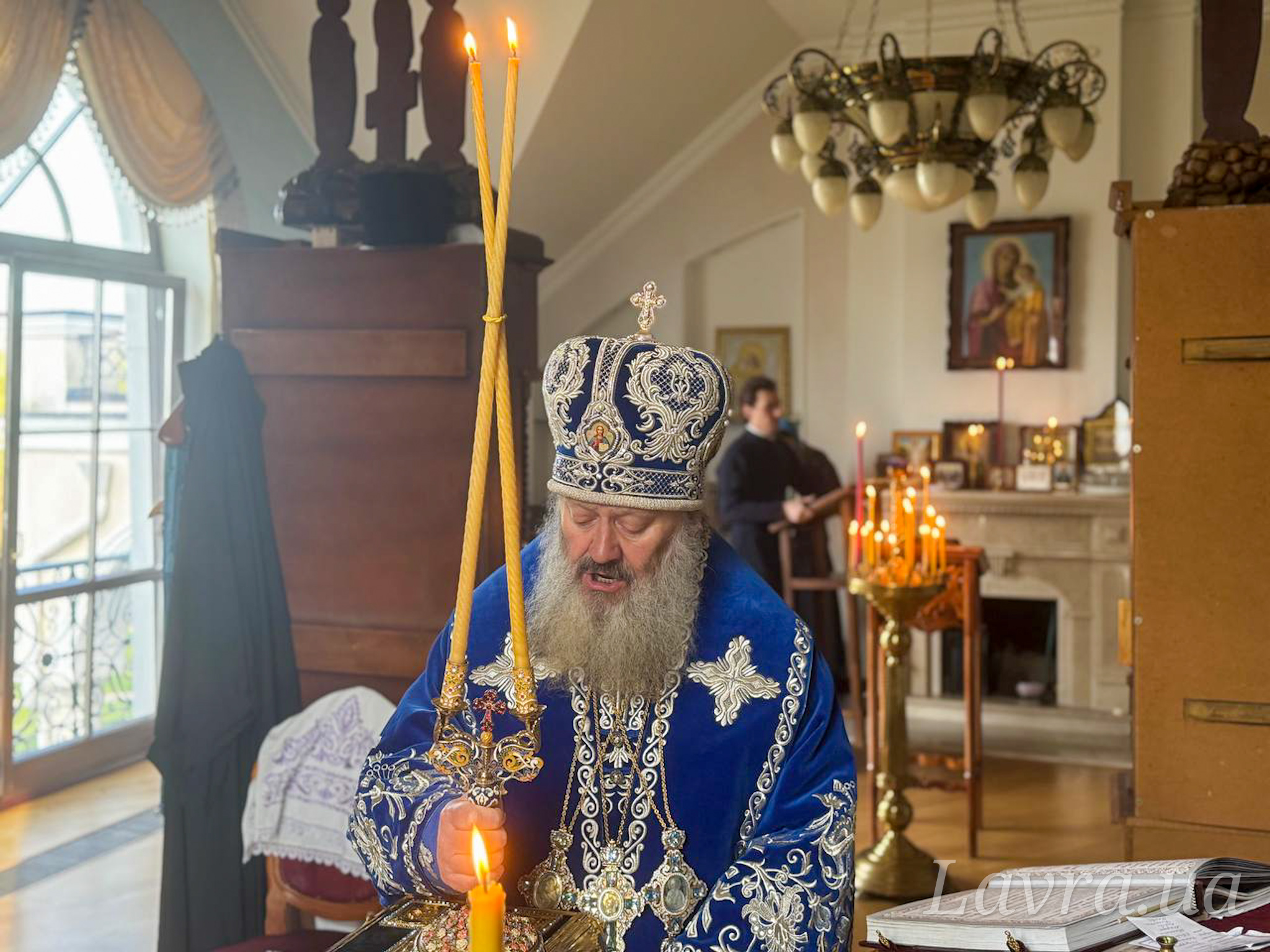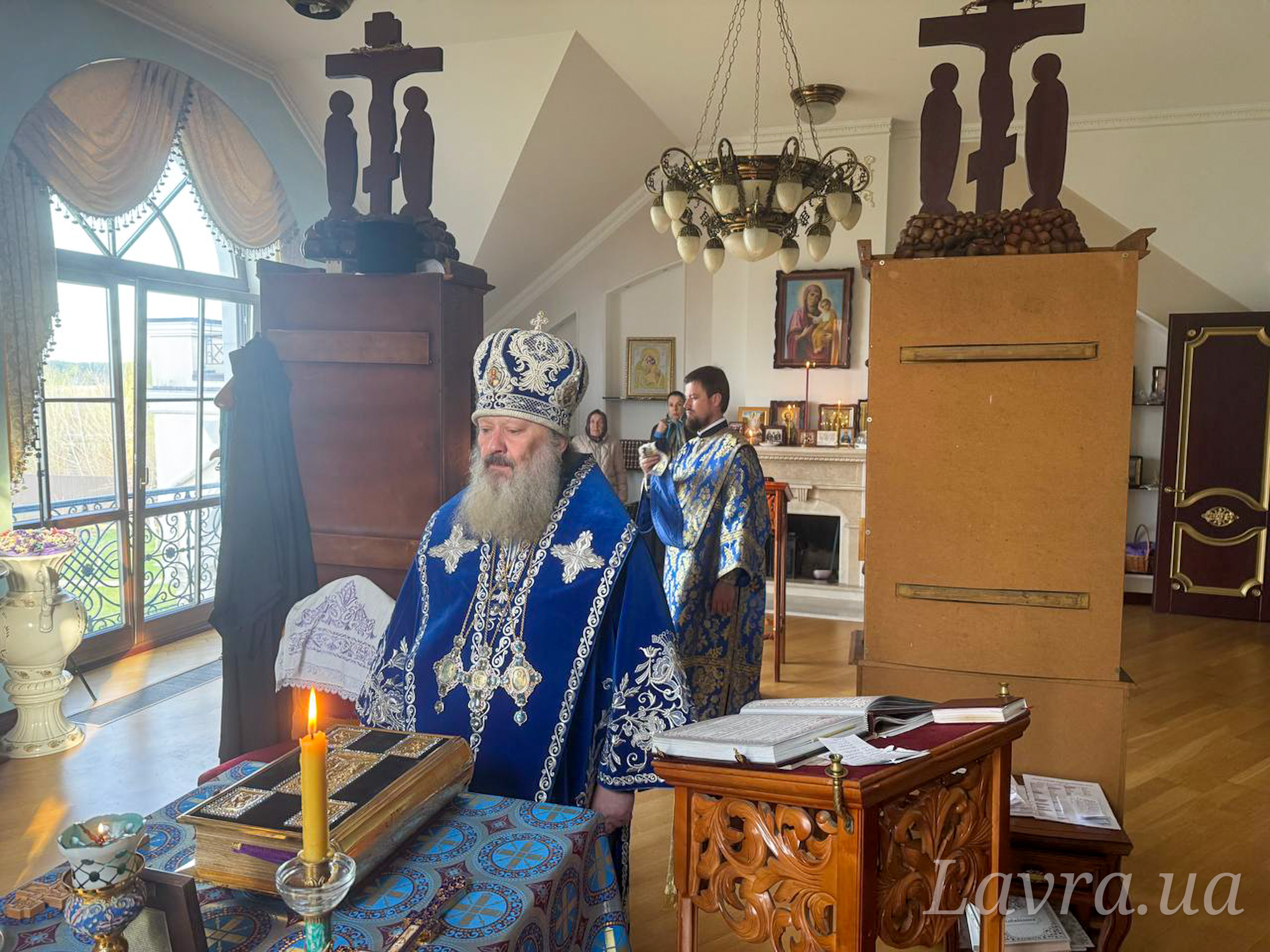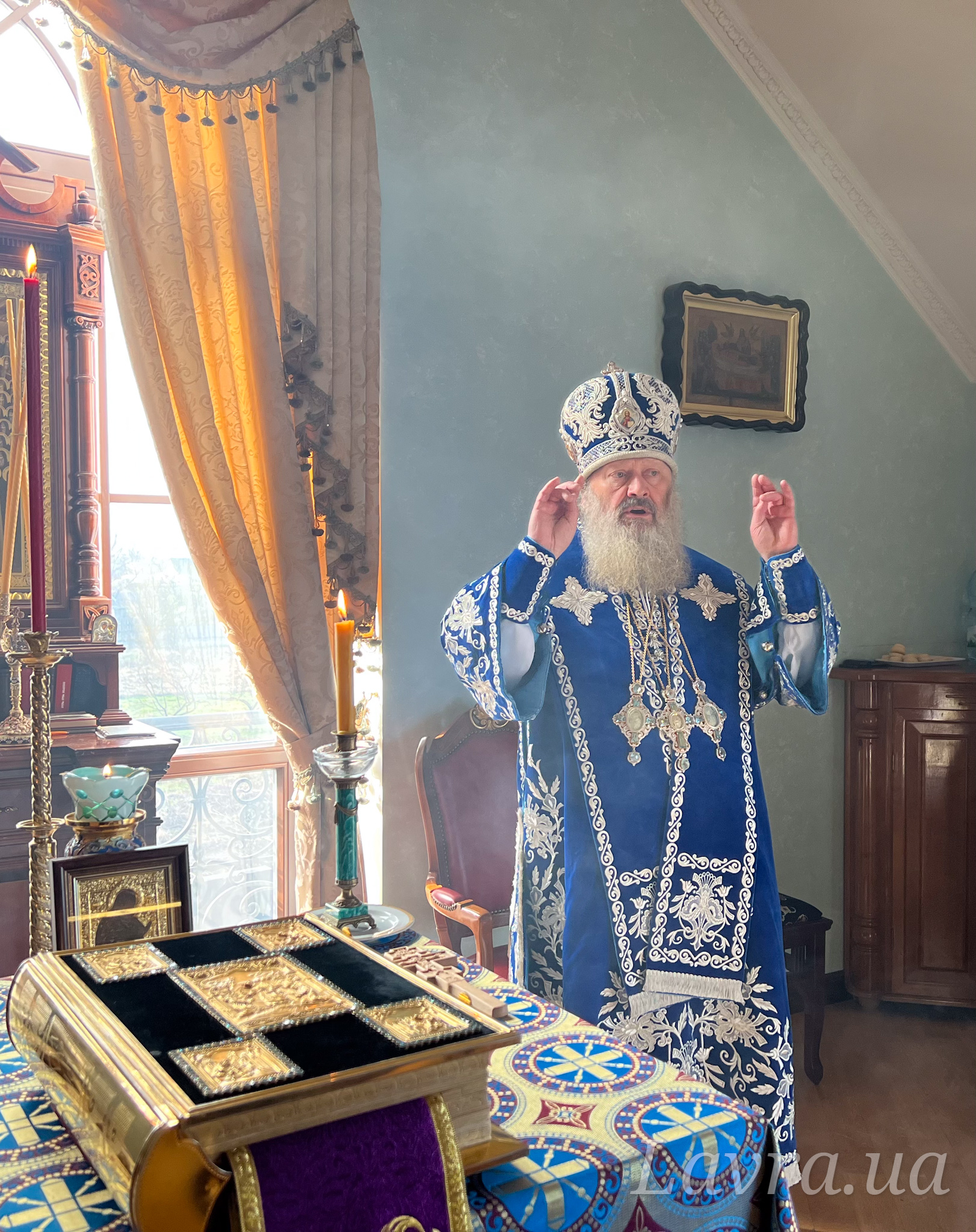 Наместник Лавры митрополит Вышгородский и Чернобыльский Павел в сослужении братии обители возглавил утреню с чтением акафиста в домовом храме.