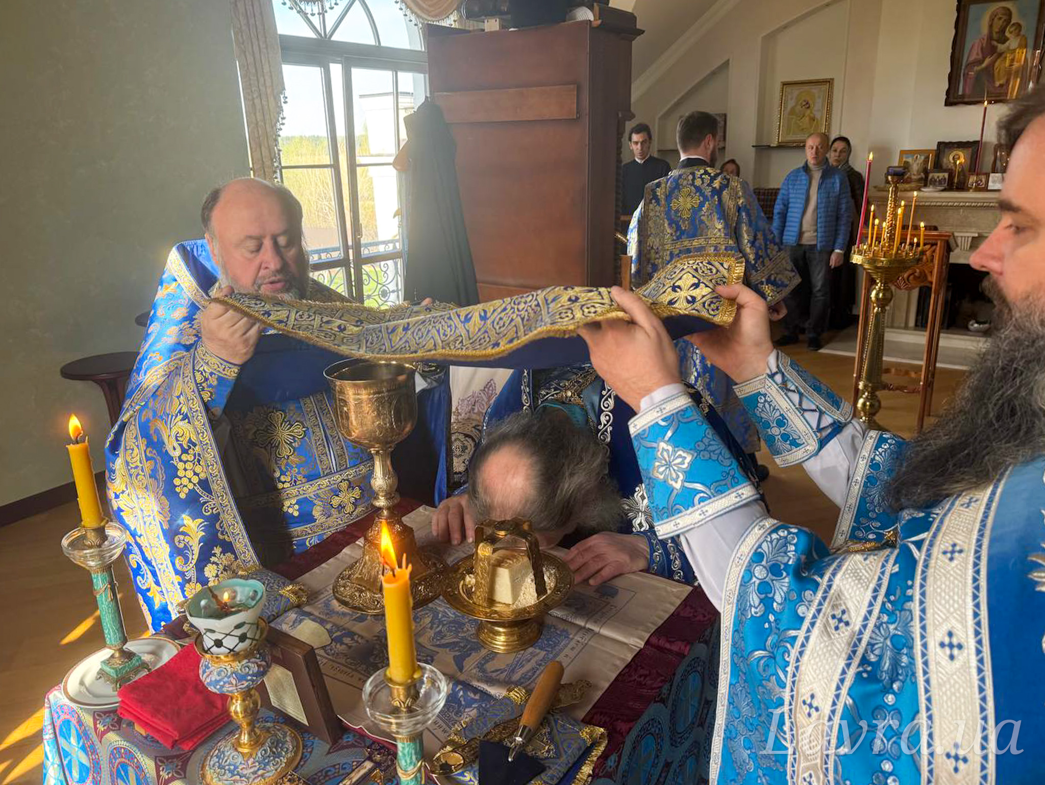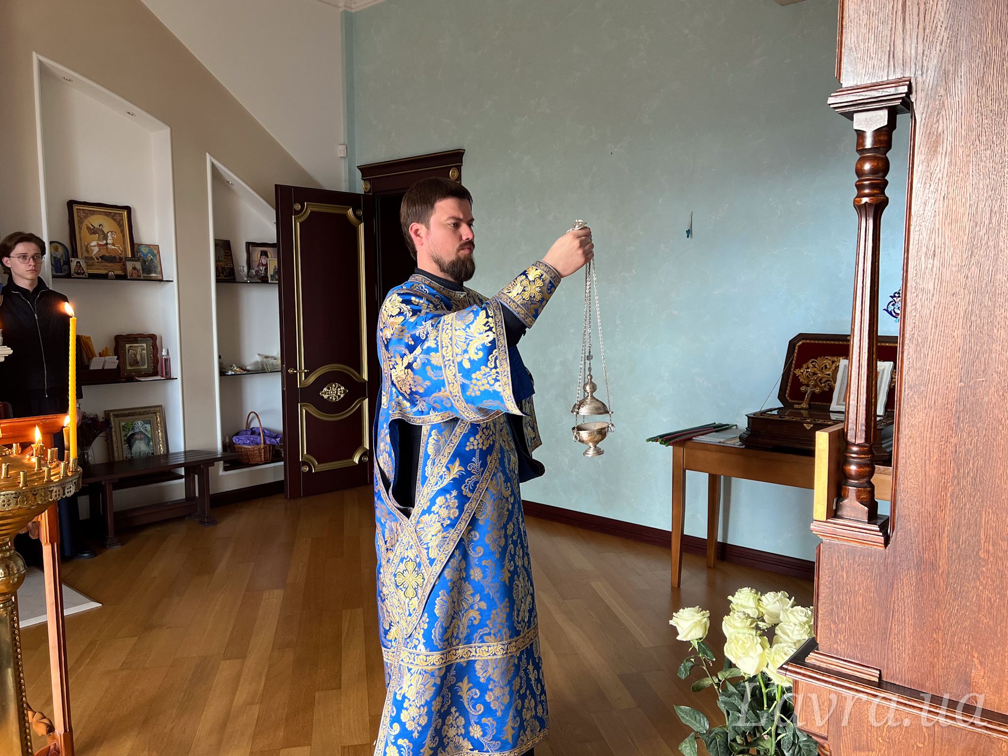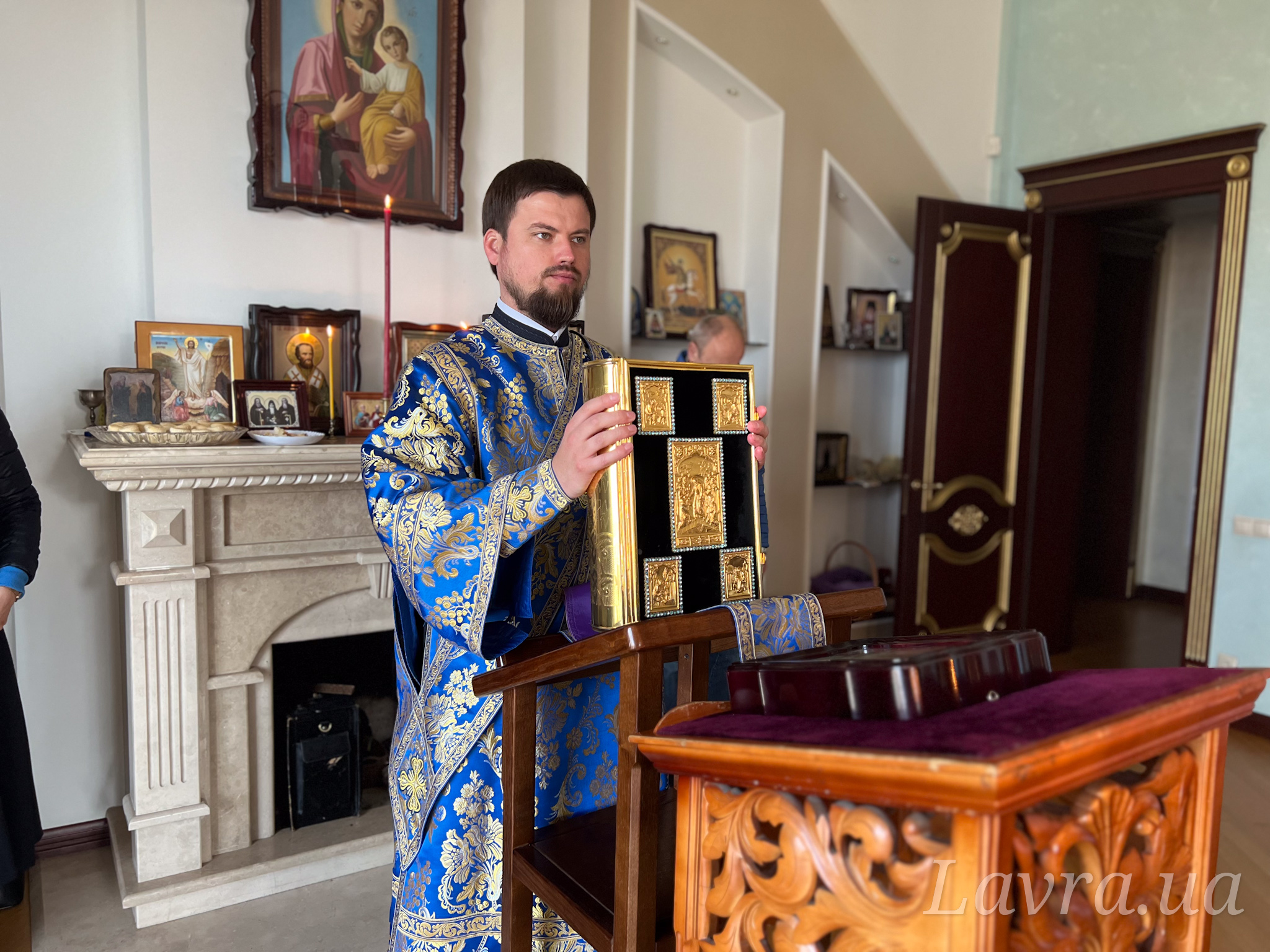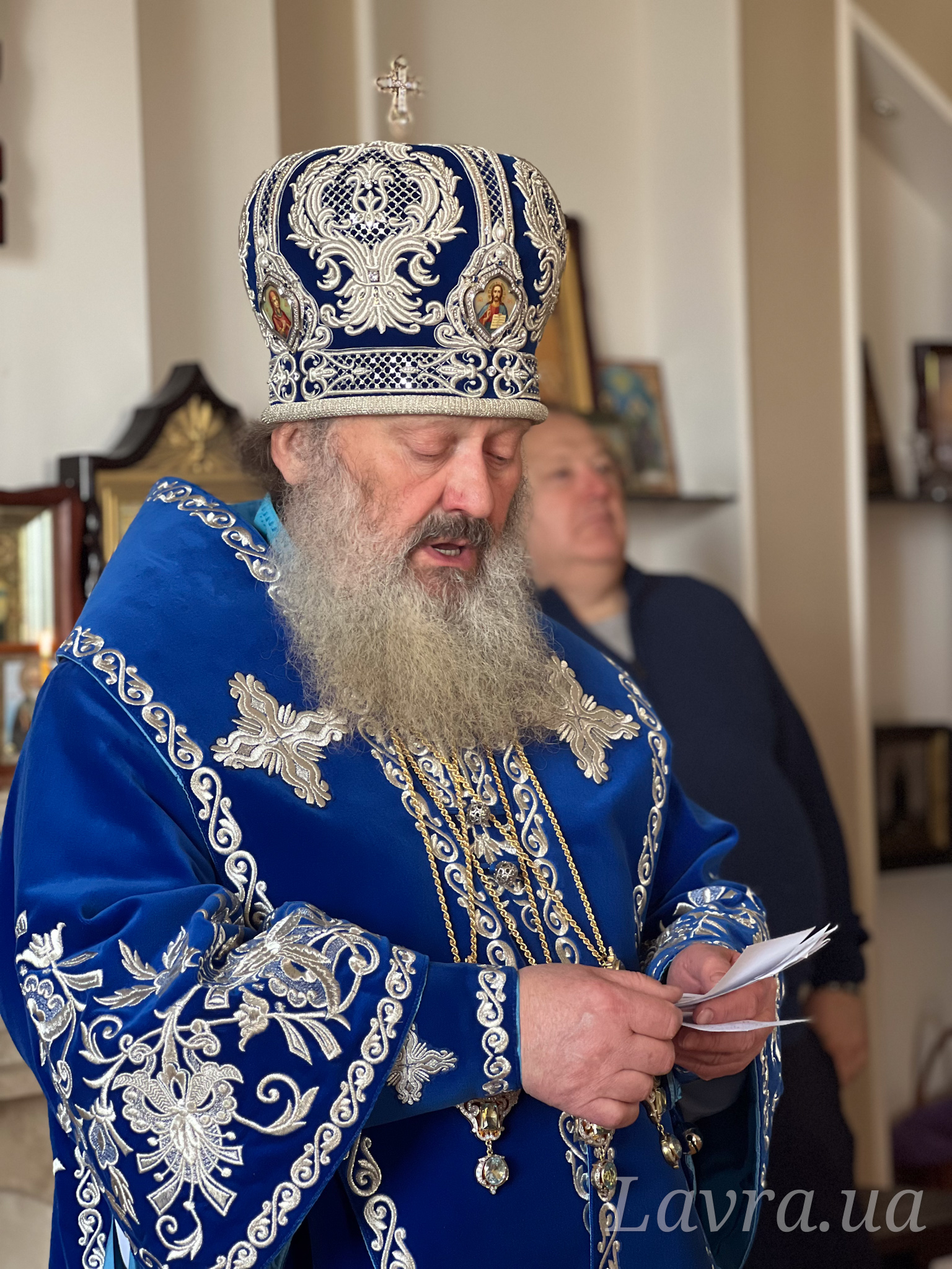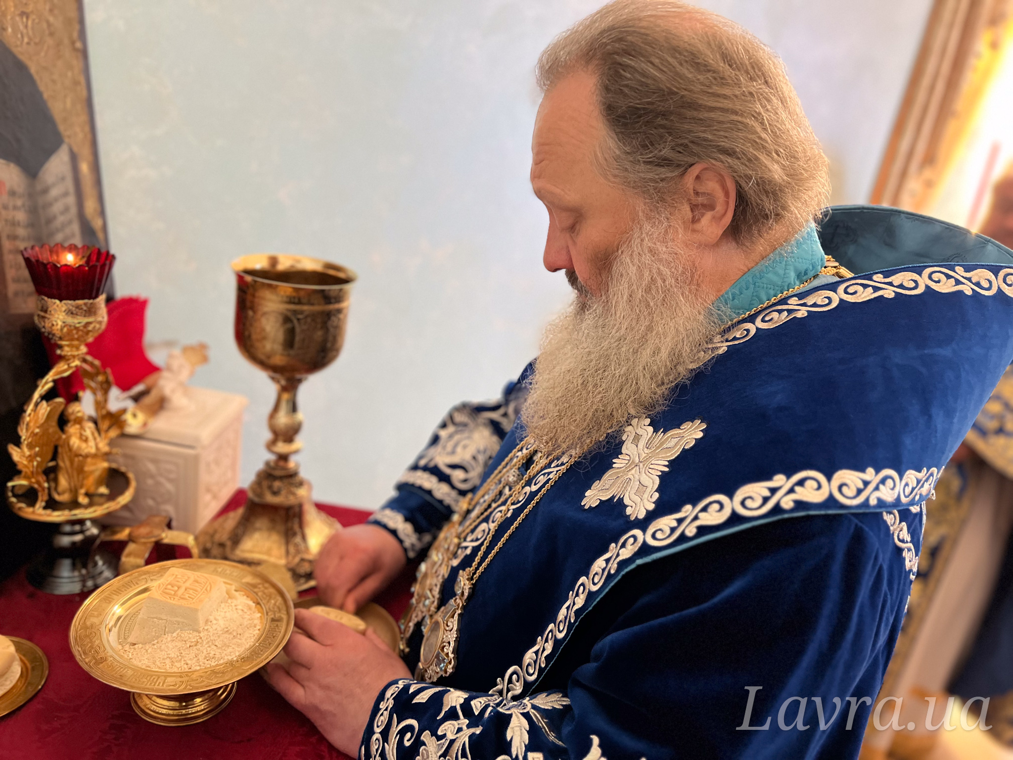 Наместник Лавры митрополит Вышгородский и Чернобыльский Павел в сослужении братии обители возглавил утреню с чтением акафиста в домовом храме.