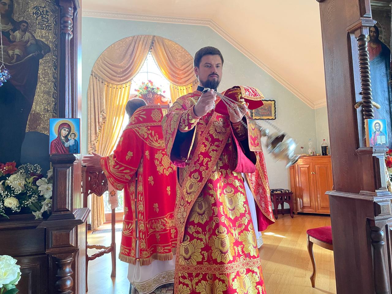 За Литургией возносились особые прошения о даровании мира и тишины в земле нашей украинской и избавлении от всякого врага и супостата, а также о благословении Божием для принимающих у себя тех, кто был вынужден оставить свои родные дома.