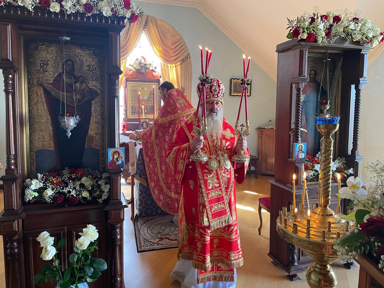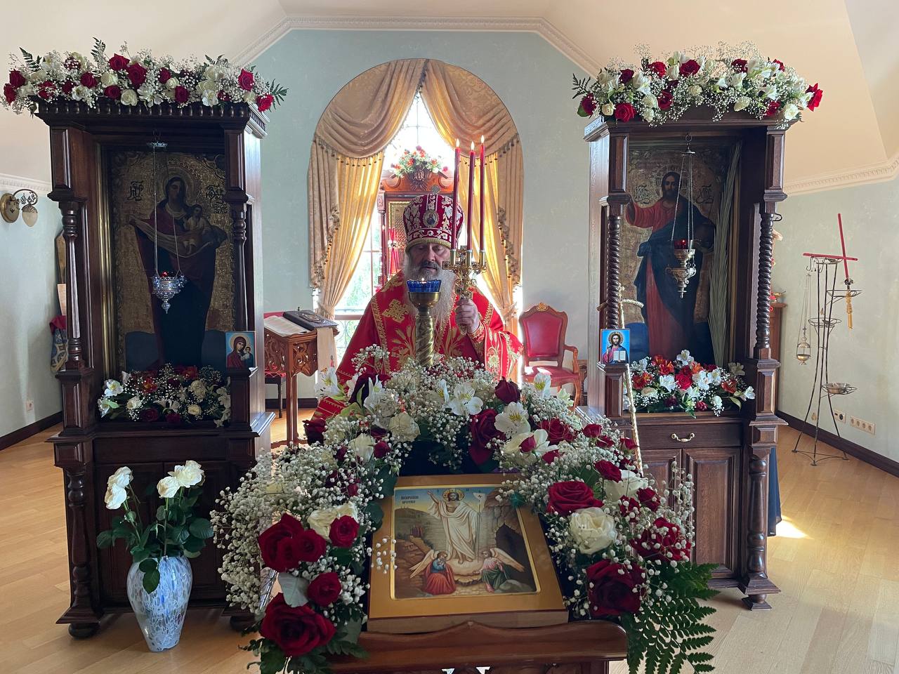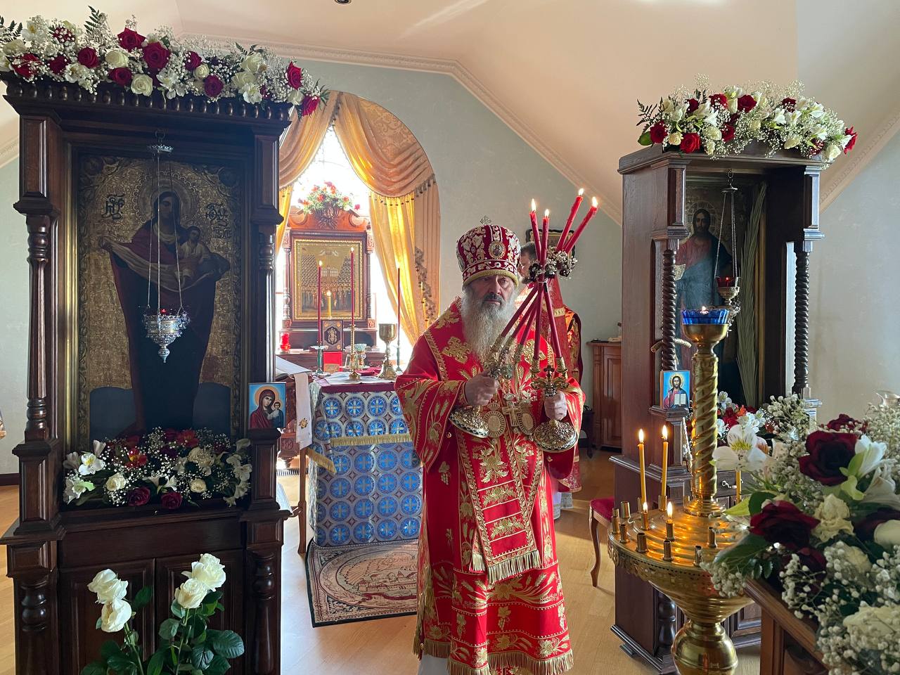 В пятый день Светлой Пасхи Наместник Киево-Печерской Лавры митрополит Вышгородский и Чернобыльский Павел совершил Божественную Литургию в домовом храме.