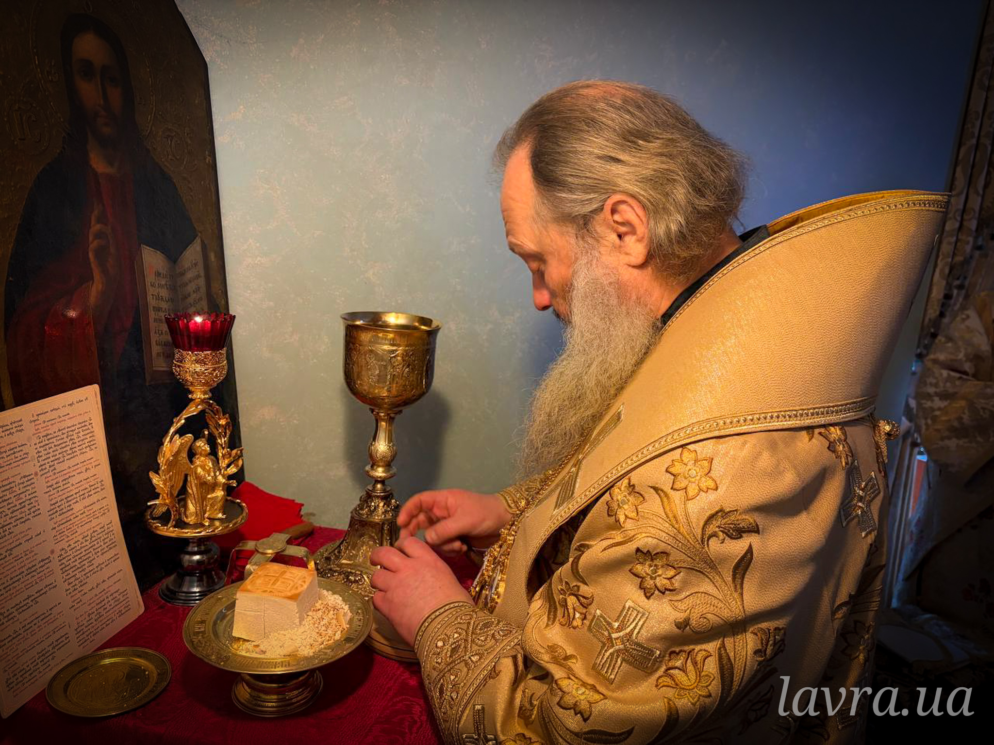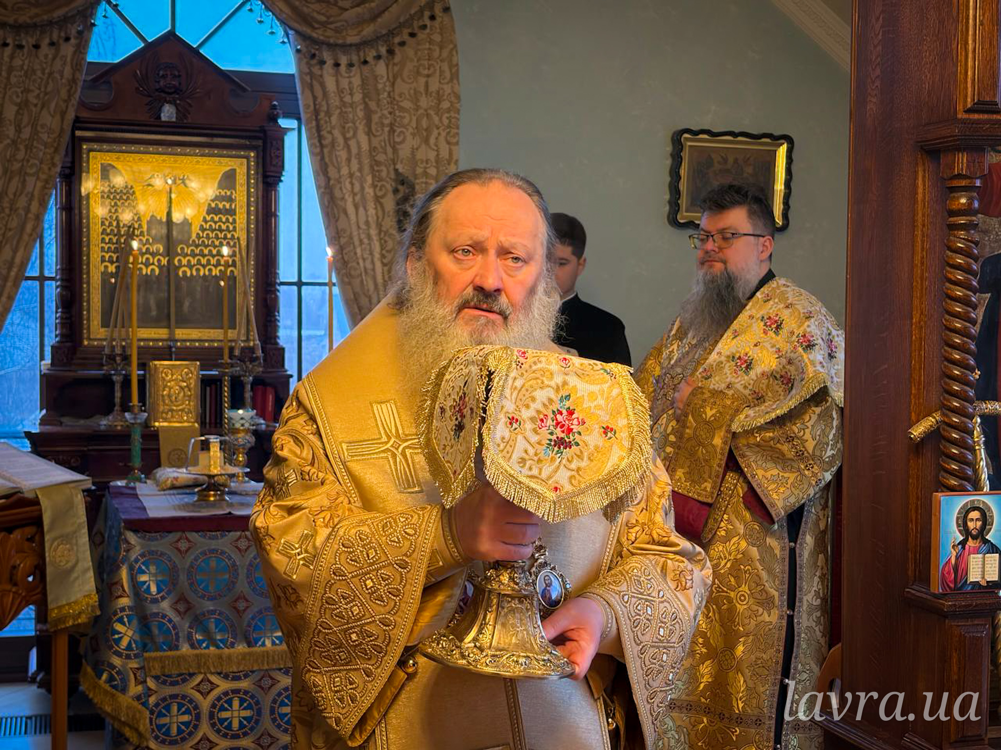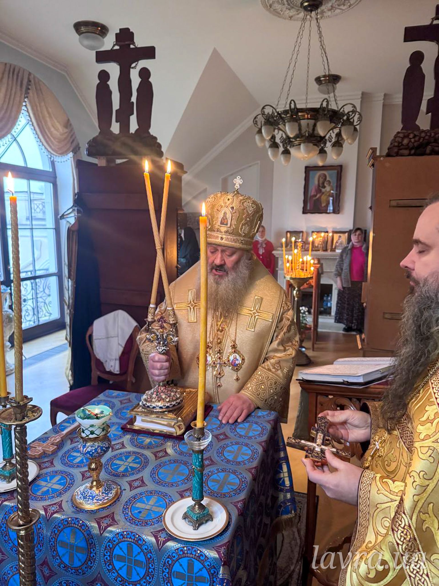 В Неделю 28-ю по Пятидесятнице и день памяти прп. Патапия (VII) Наместник Киево-Печерской Лавры митрополит Вышгородский и Чернобыльский Павел совершил Божественную Литургию в домовом храме.