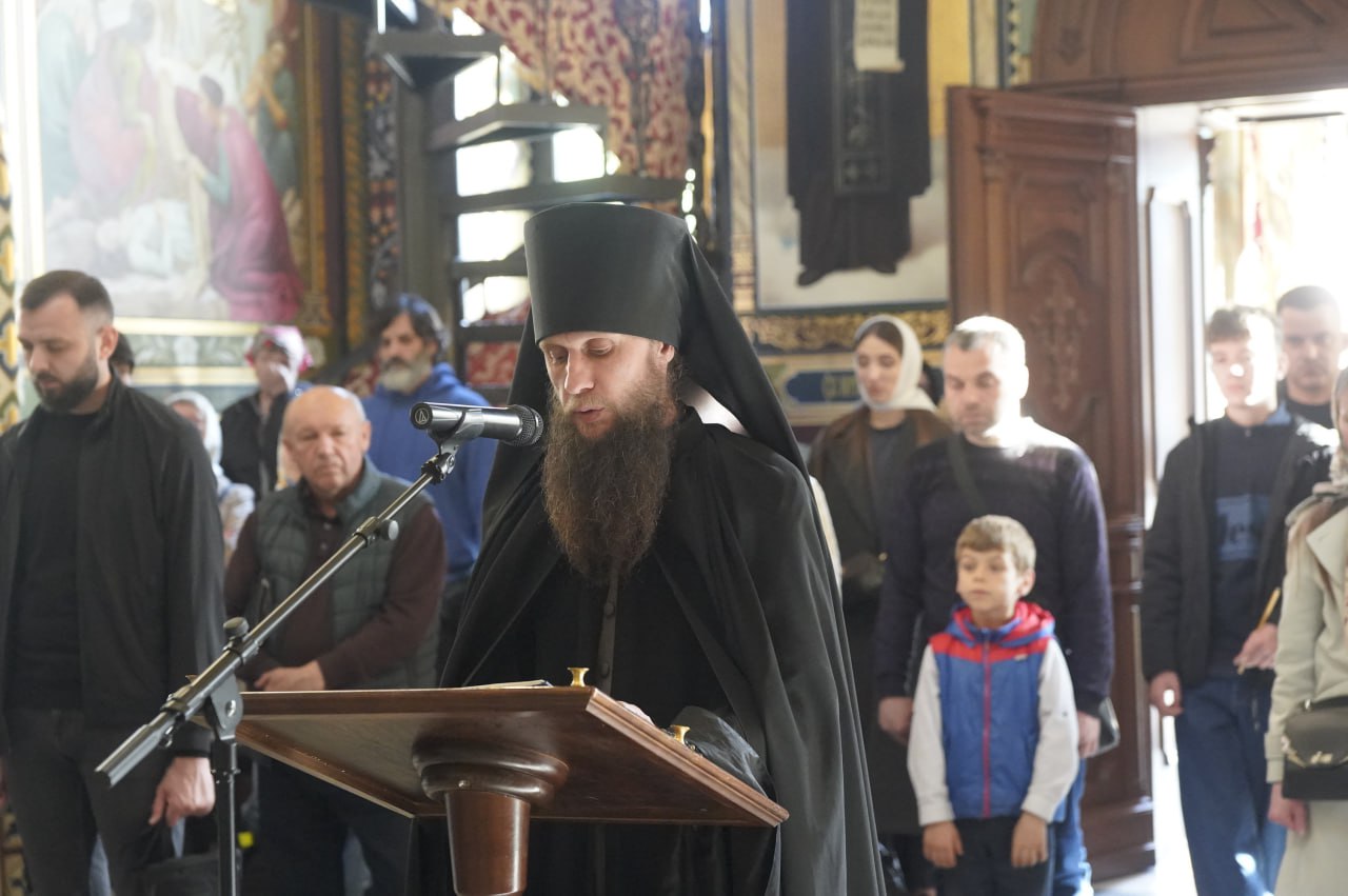 После запричастного стиха на Литургии ко всем молящимся обратился с проповедью архимандрит Никон, рассказав о святом апостоле Фоме, который не был среди учеников Христовых, когда Господь первый раз явился им, и не поверил в Воскресение Христово до тех пор, пока не увидел Его Воскресшим.