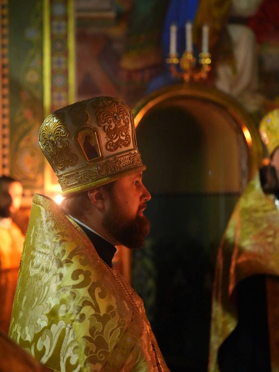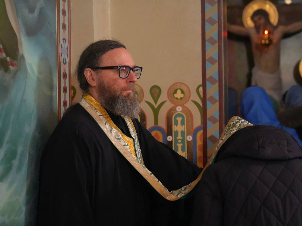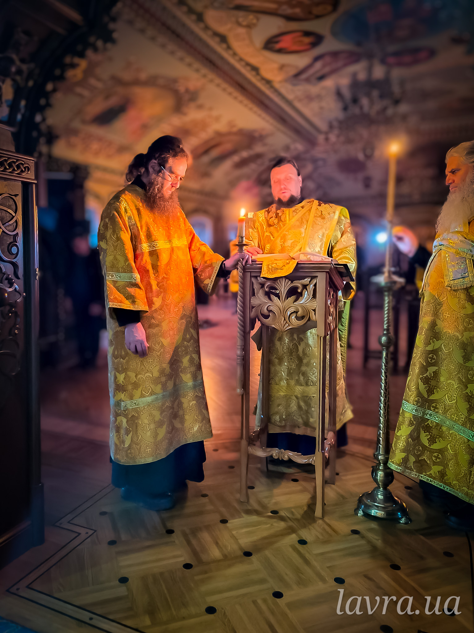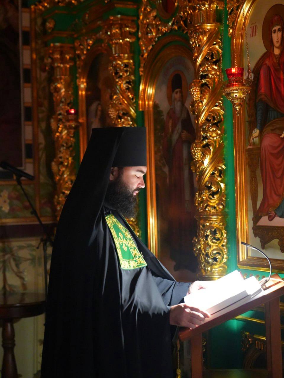 Накануне воскресного дня всенощное бдение в церкви во имя прп. Агапита Печерского возглавил благочинный монастыря.