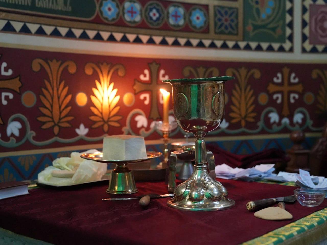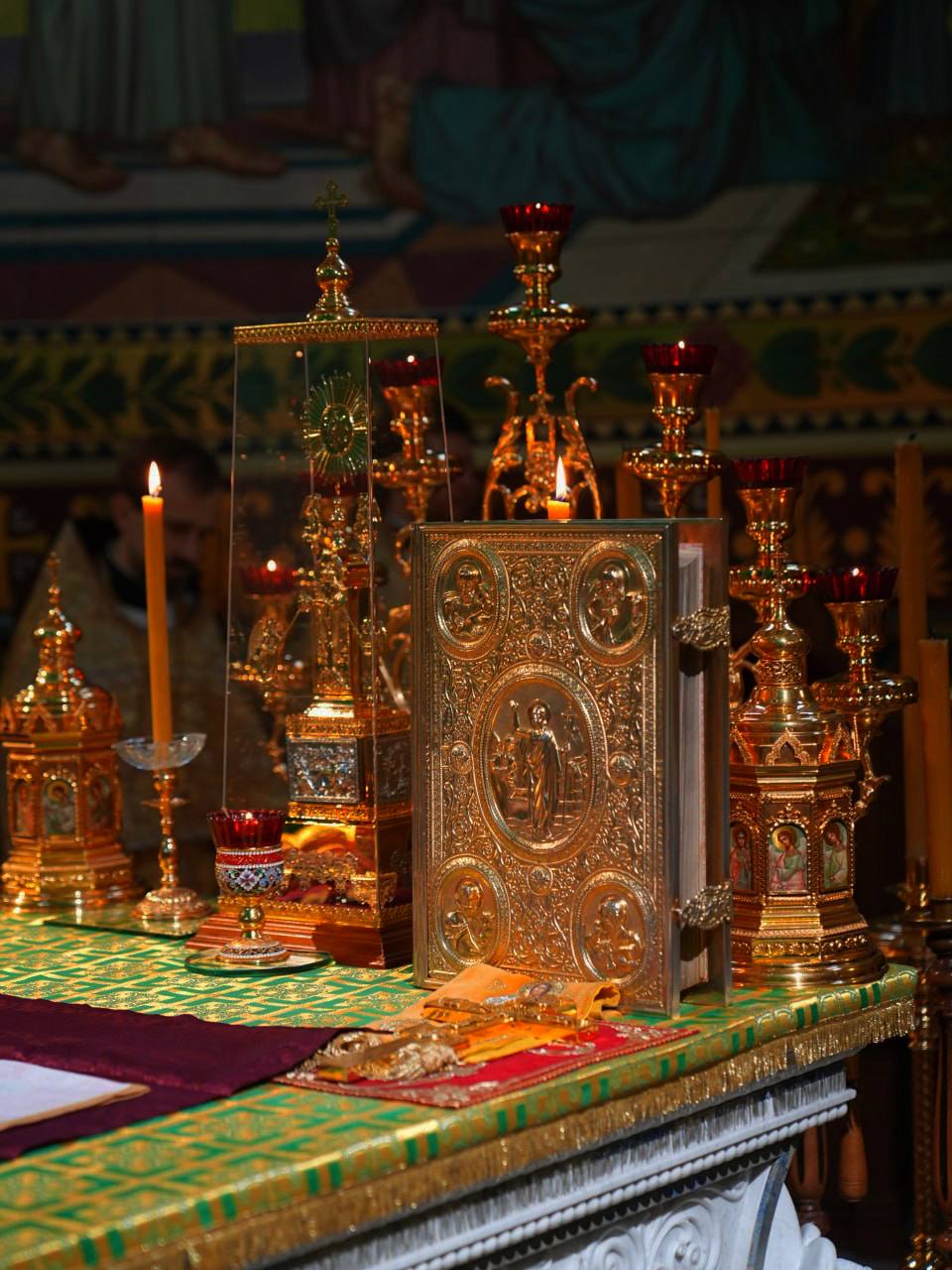 Во время Литургии были вознесены сугубые молитвы о мире в Украине.