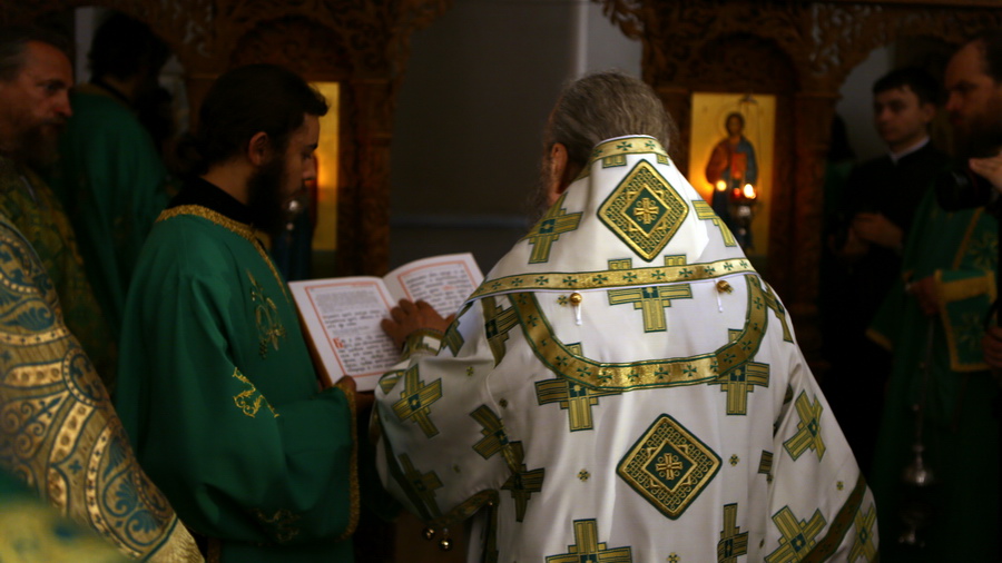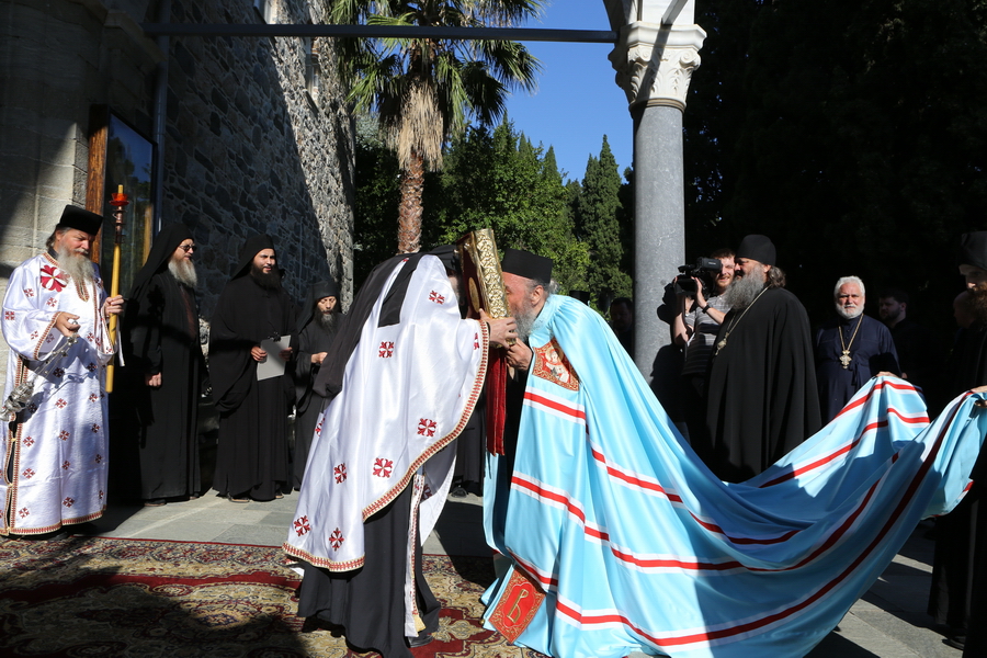 После официальной встречи в Киноте делегация УПЦ последовала в главный святогорский храм Протата, где все поклонились находящейся здесь чудотворной иконе Божией Матери «Достойно есть».
