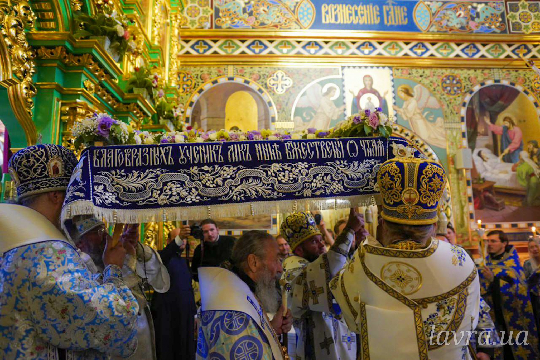 Традиционно в Киево-Печерской Лавре вечером в день праздника Успения Пресвятой Богородицы совершается утреня с Чином погребения Плащаницы Божией Матери.