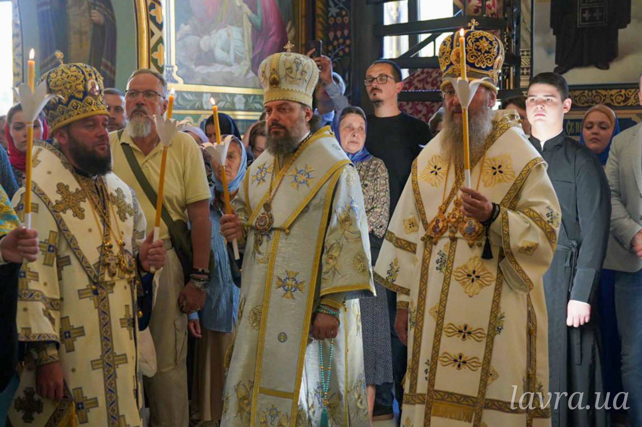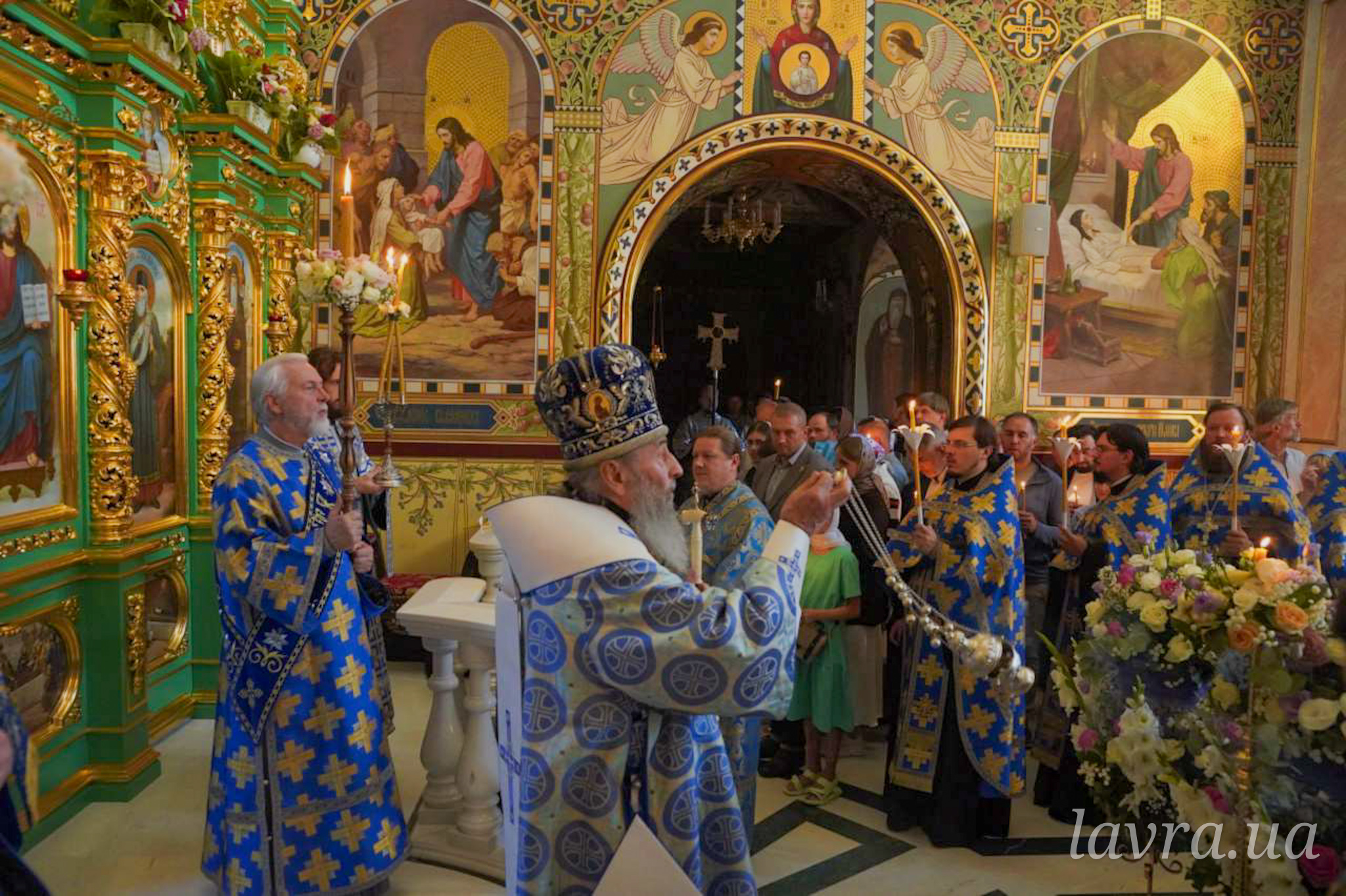 Блаженнейшему владыке сослужили управляющий делами УПЦ митрополит Бориспольский и Броварской Антоний, председатель Информационно-просветительского отдела УПЦ митрополит Нежинский и Прилуцкий Климент, митрополит Львовский и Галицкий Филарет, архиепископ Вишневский Спиридон, архиепископ Ирпенский Лавр, архиепископ Бородянский Марк и духовенство обители.