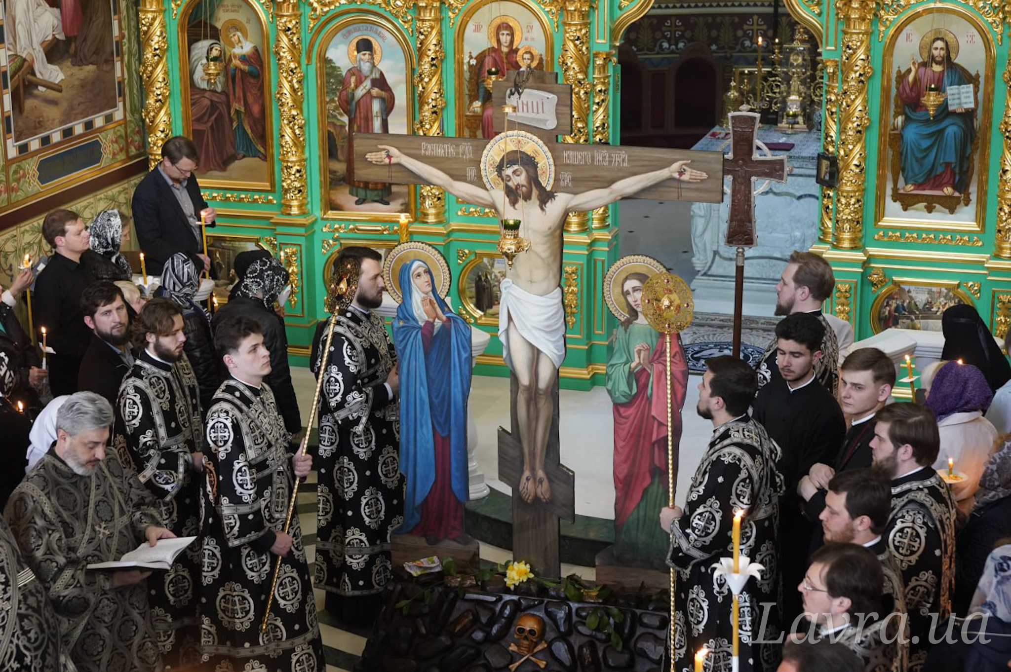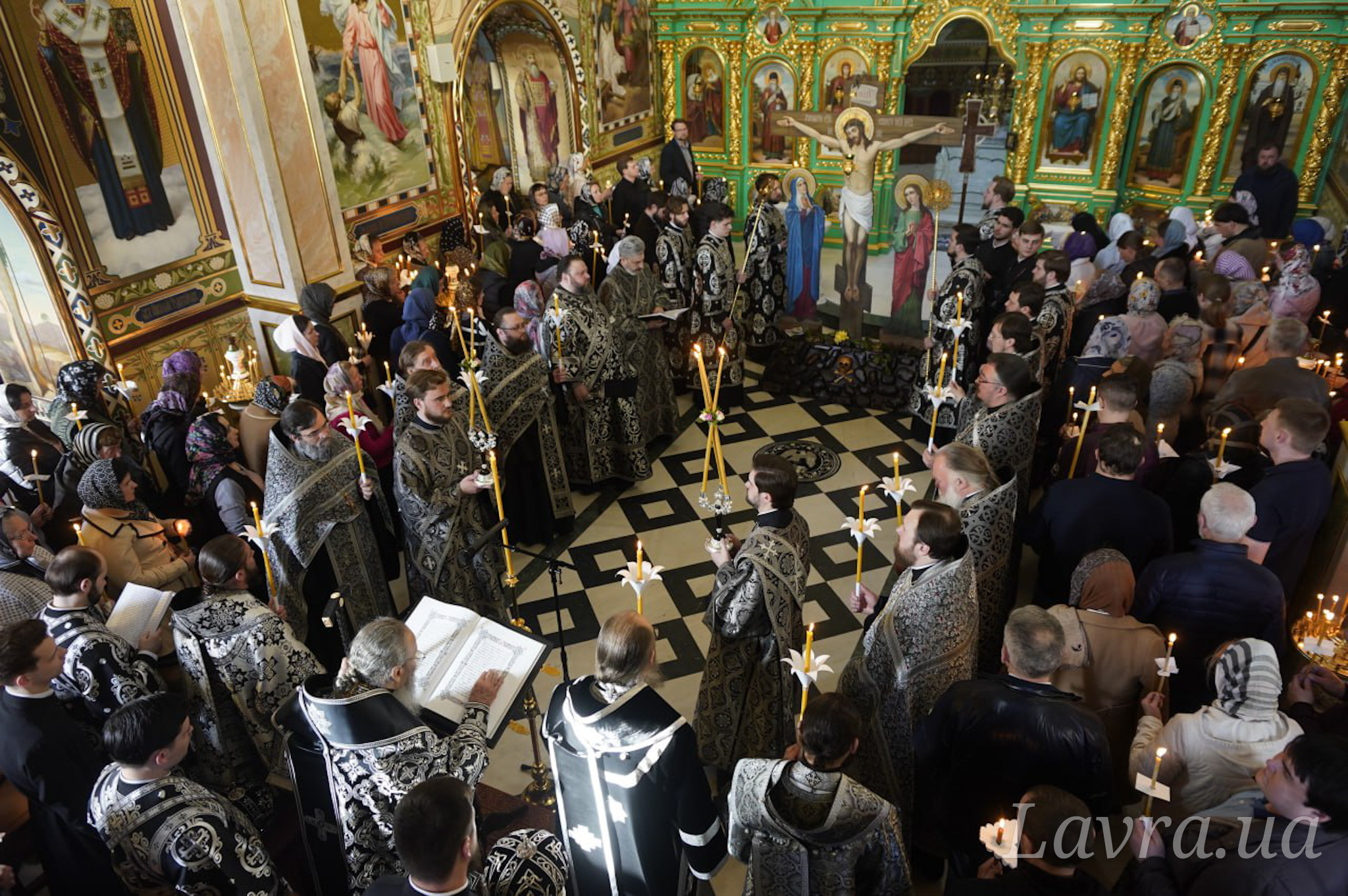 Накануне вечером в храме утреню Великого Пятка c чтением Двенадцати Страстных Евангелий возглавил Священноархимандрит Киево-Печерской Лавры Блаженнейший Митрополит Киевский и всея Украины Онуфрий. В храме во имя прп. Агапита Печерского Предстоятелю Украинской Православной Церкви сослужили управляющий делами УПЦ митрополит Бориспольский и Броварской Антоний, епископ Ирпенский Лавр, епископ Бородянский Марк, а также братия и гости обители в священном сане.