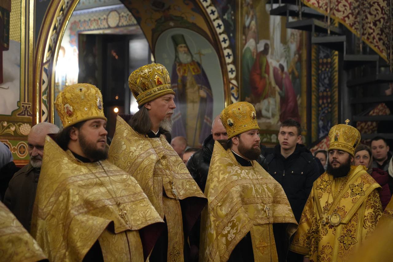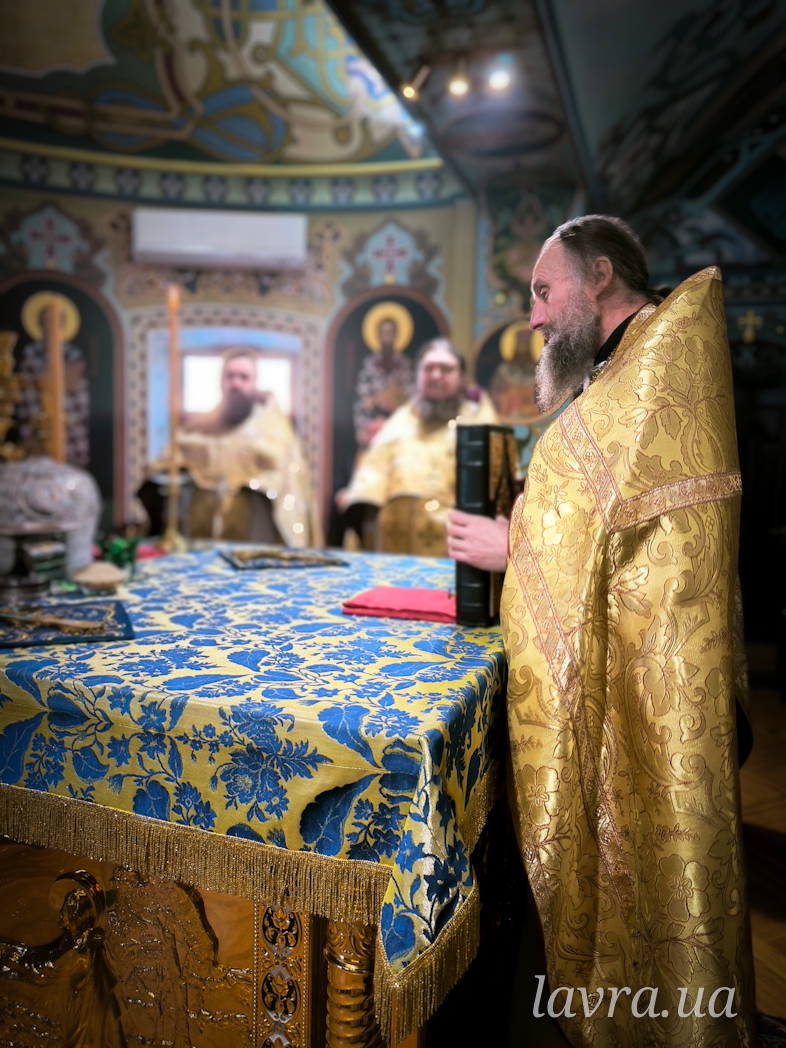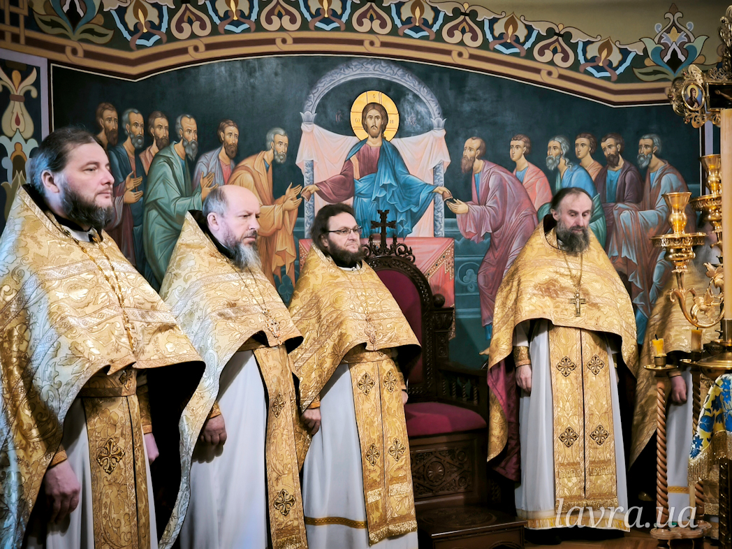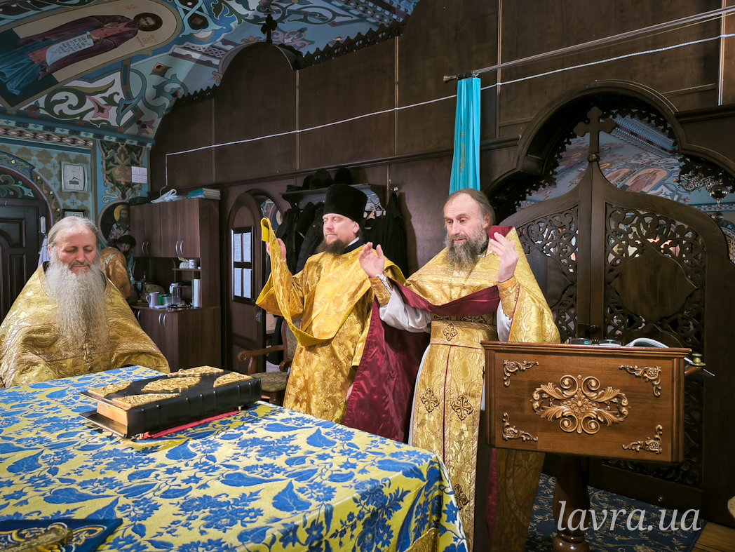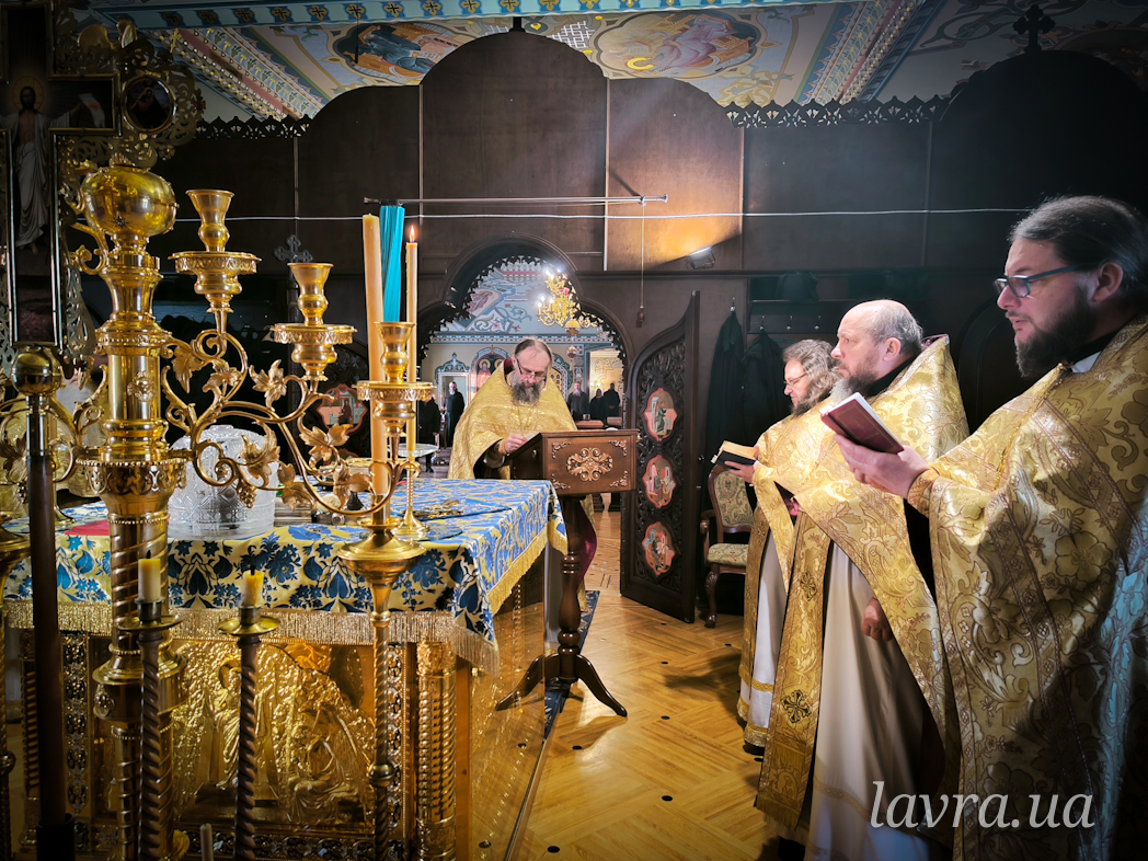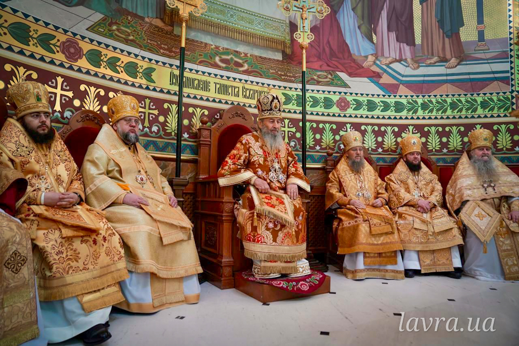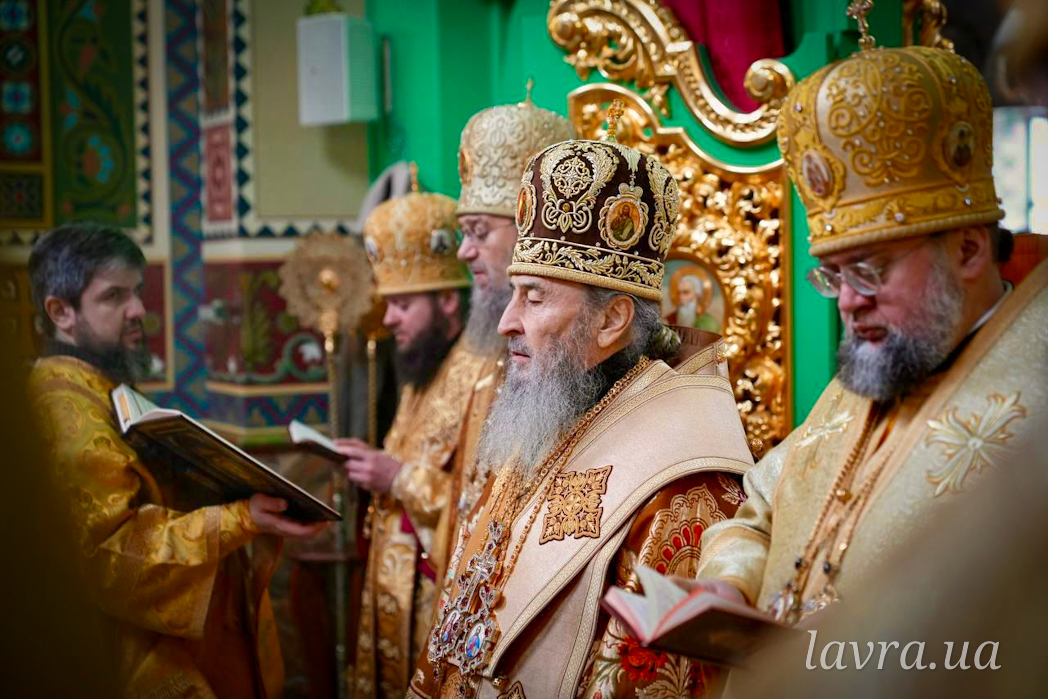 За Божественной Литургией Предстоятелю Украинской Православной Церкви сослужили управляющий делами УПЦ митрополит Бориспольский и Броварской Антоний, архиепископ Белогородский Сильвестр, архиепископ Ирпенский Лавр, архиепископ Бородянский Марк, а также братия и гости обители в священном сане во главе с духовником архимандритом Антонием.