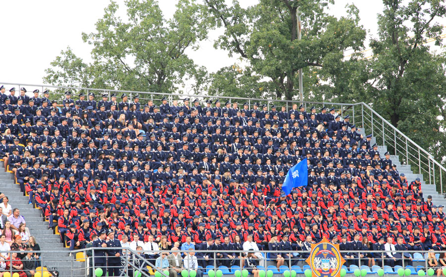 Особо торжественным был парад факультетов и лучших студентов, шествовавших колоннами. Мастерство рукопашного боя, а также других видов единоборств показали курсанты факультета налоговой милиции.