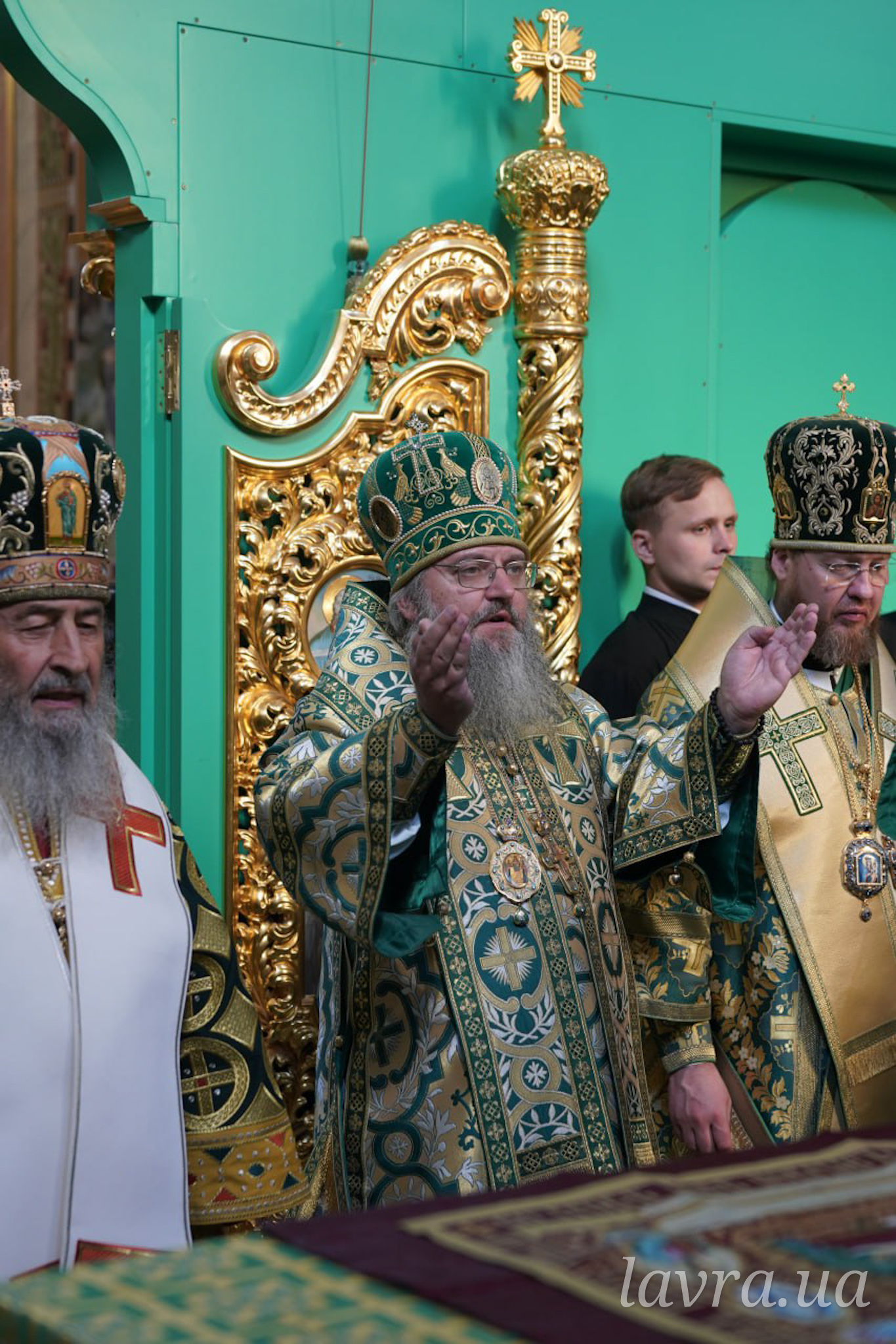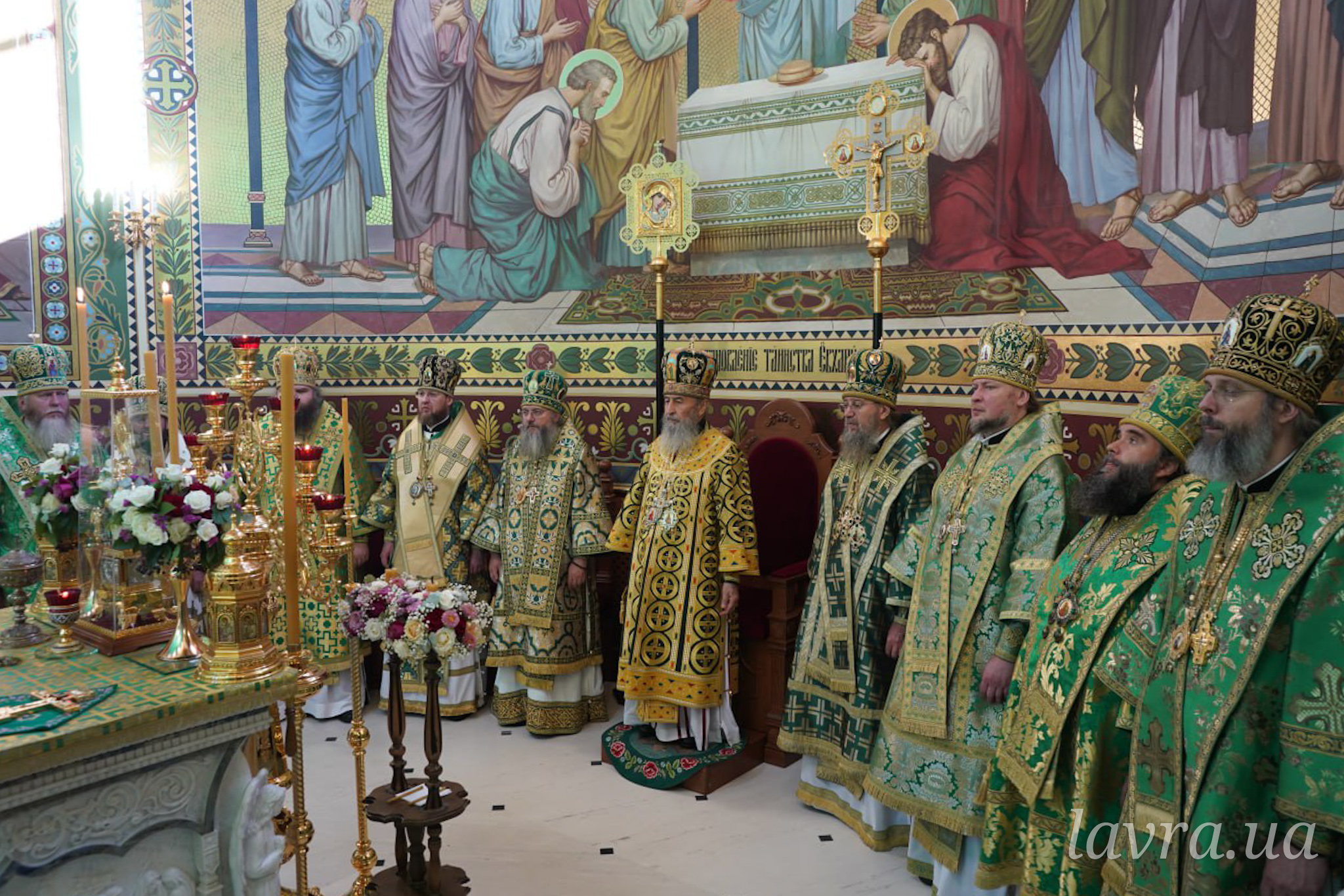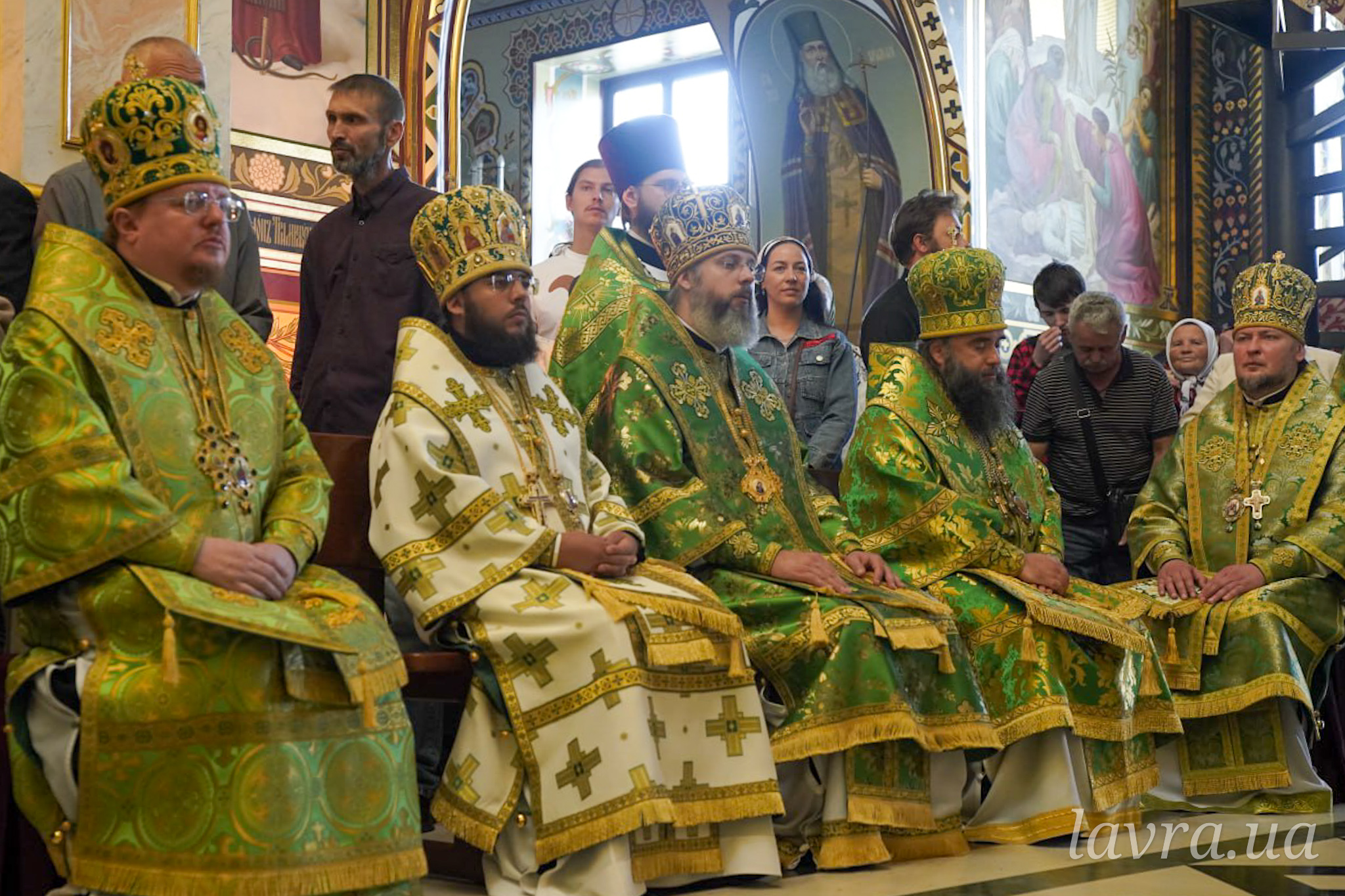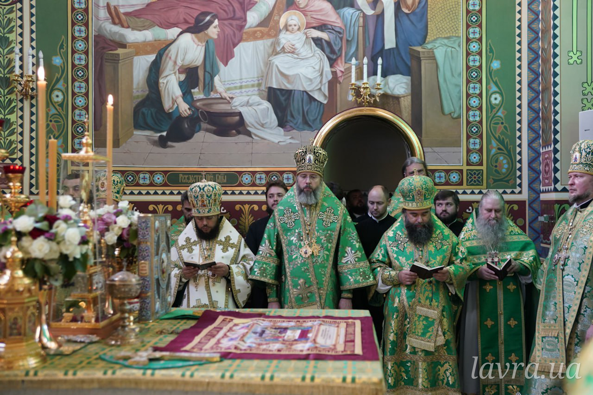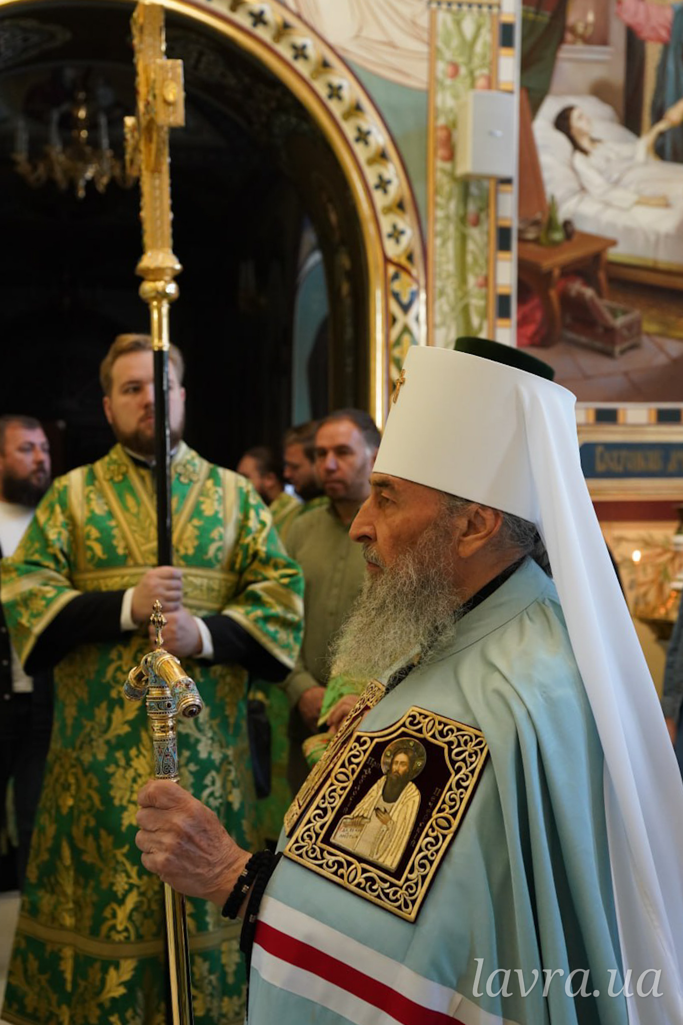 В сам день праздника в этом же храме во время Божественной Литургии Предстоятелю Украинской Православной Церкви сослужили: управляющий делами УПЦ митрополит Бориспольский и Броварской Антоний, председатель Информационно-просветительского отдела УПЦ митрополит Нежинский и Прилукский Климент, митрополит Тульчинский и Брацлавский Сергий, архиепископ Переяслав-Хмельницкий Дионисий, архиепископ Петропавловский Андрей, архиепископ Згуровский Амвросий, архиепископ Вишневский Спиридон, архиепископ Ирпенский Лавр, архиепископ Бородянский Марк, архиепископ Бышевский Кирилл, епископ Гостомельский Аркадий, а также братия и гости монастыря в священном сане во главе с духовником монастыря архимандритом Антонием.