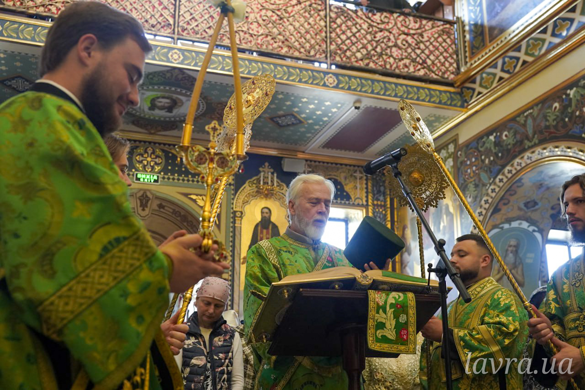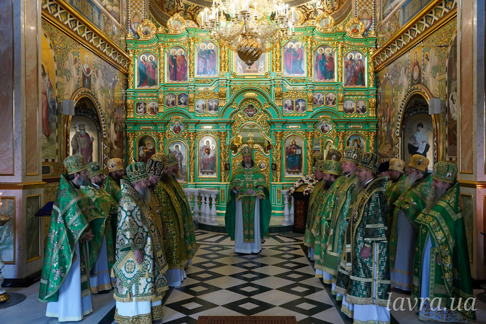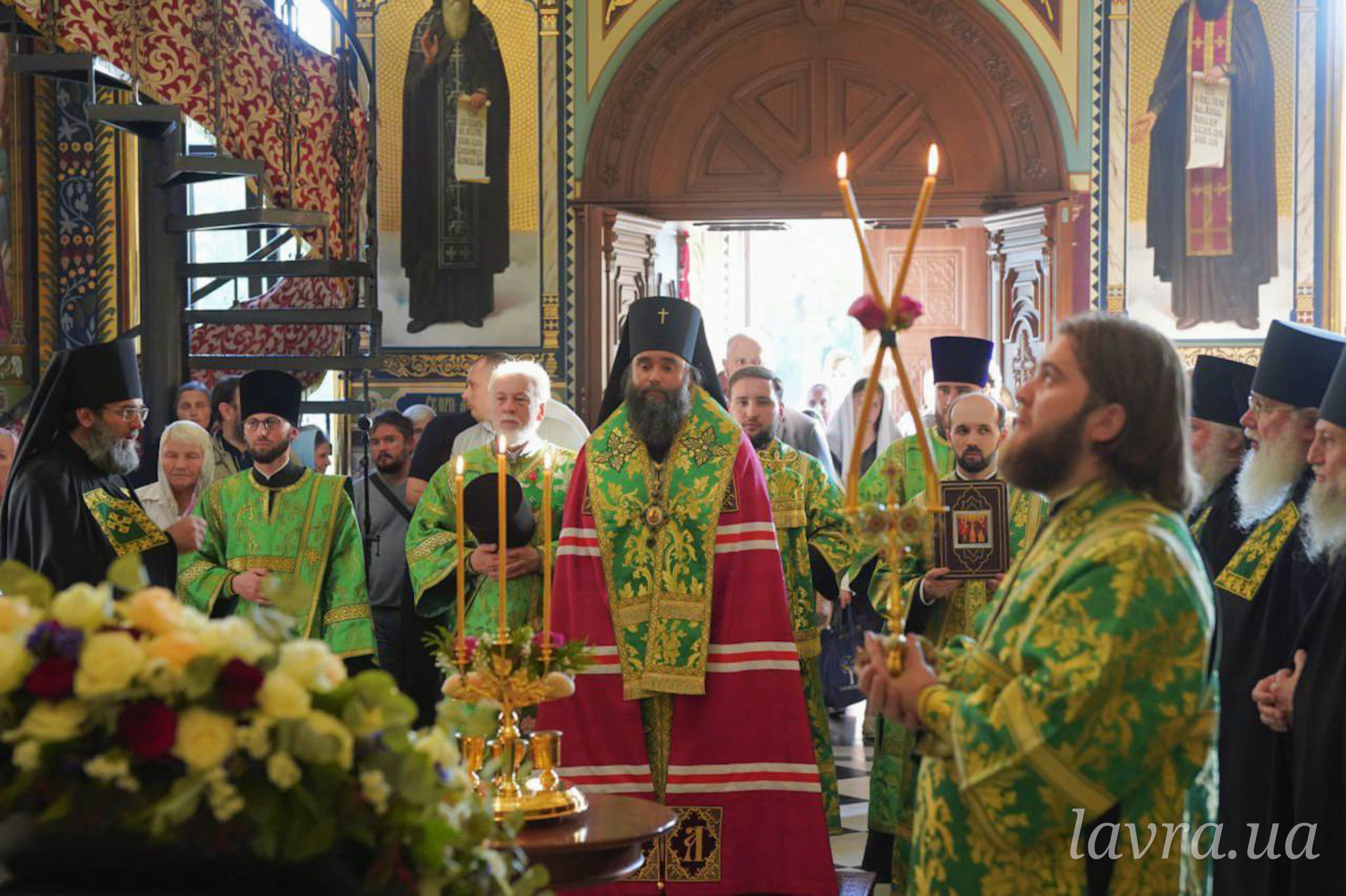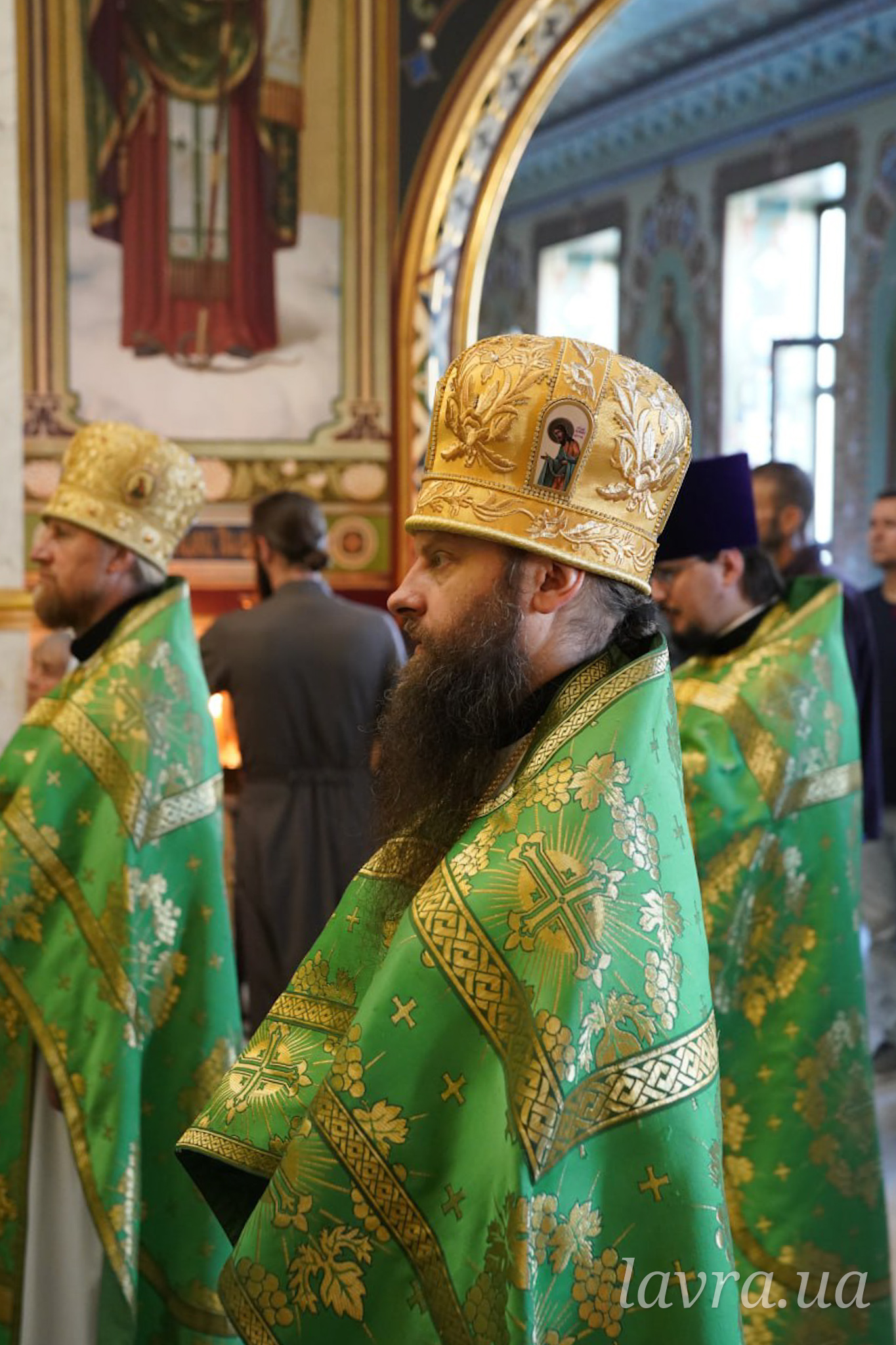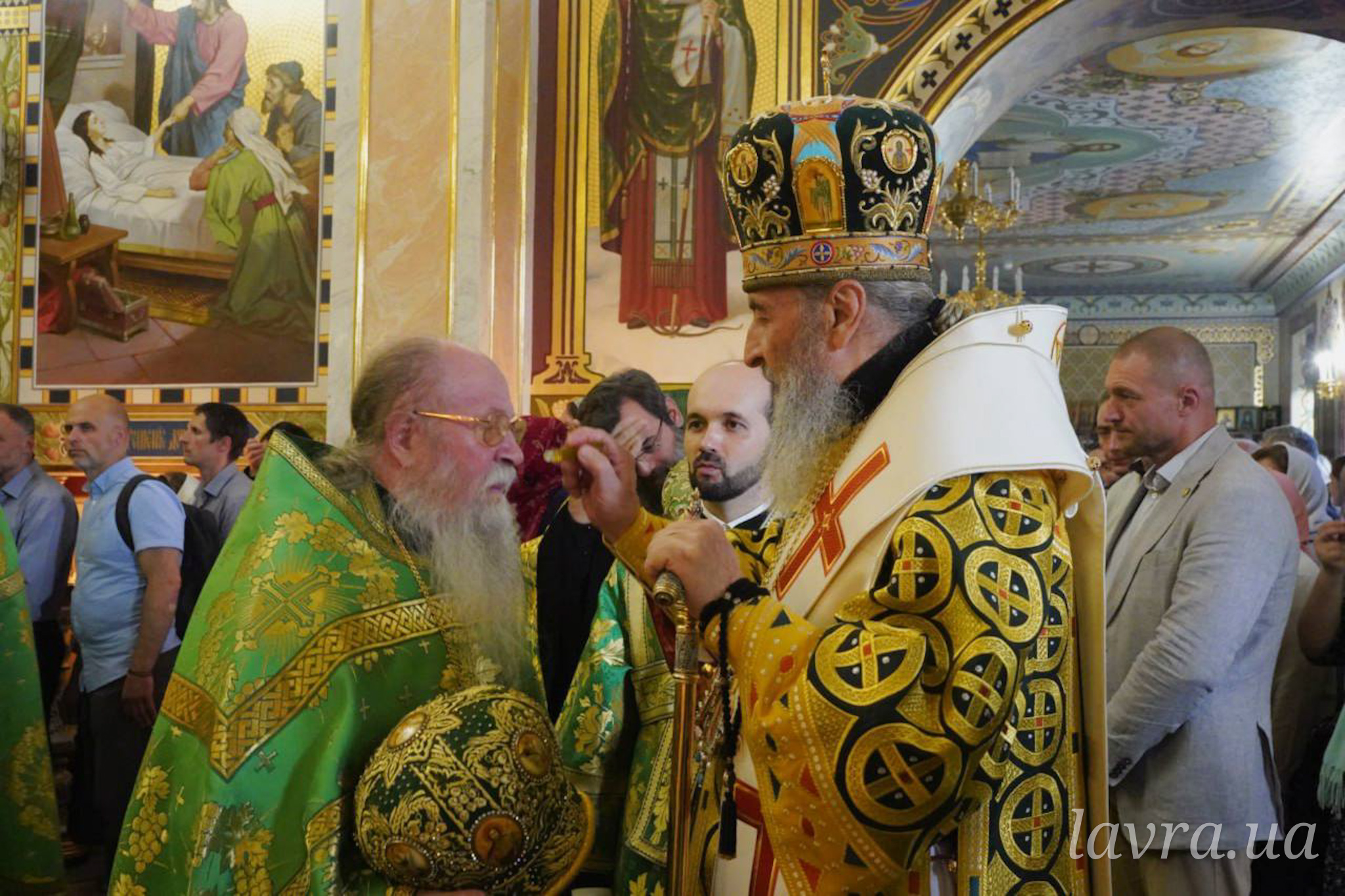 В сам день праздника в этом же храме во время Божественной Литургии Предстоятелю Украинской Православной Церкви сослужили: управляющий делами УПЦ митрополит Бориспольский и Броварской Антоний, председатель Информационно-просветительского отдела УПЦ митрополит Нежинский и Прилукский Климент, митрополит Тульчинский и Брацлавский Сергий, архиепископ Переяслав-Хмельницкий Дионисий, архиепископ Петропавловский Андрей, архиепископ Згуровский Амвросий, архиепископ Вишневский Спиридон, архиепископ Ирпенский Лавр, архиепископ Бородянский Марк, архиепископ Бышевский Кирилл, епископ Гостомельский Аркадий, а также братия и гости монастыря в священном сане во главе с духовником монастыря архимандритом Антонием.