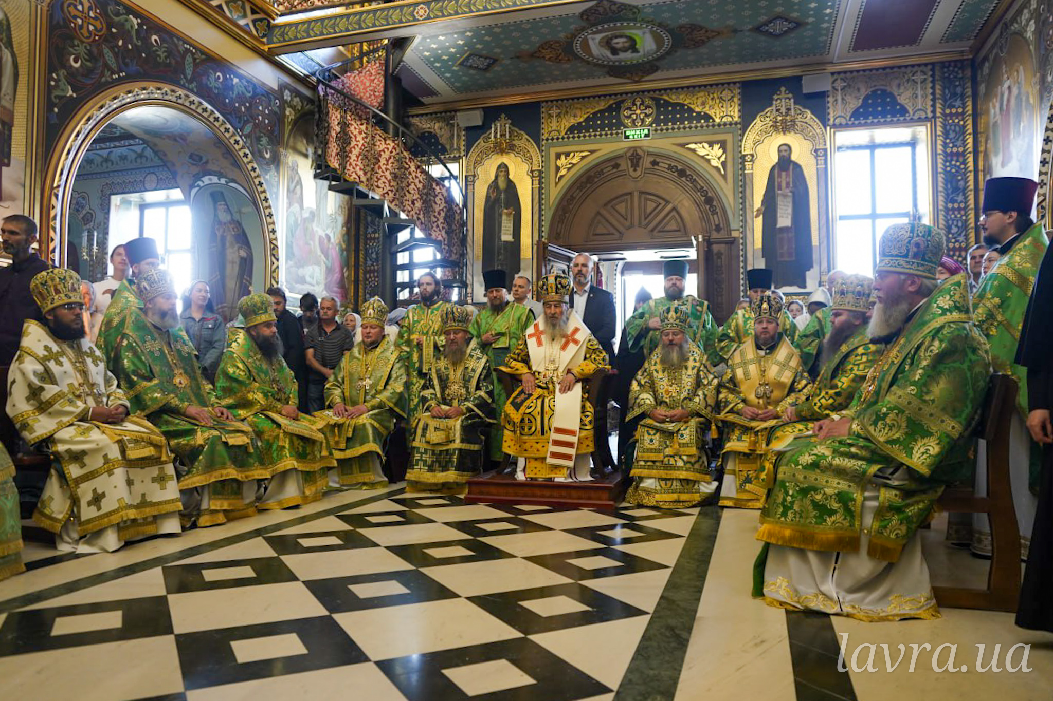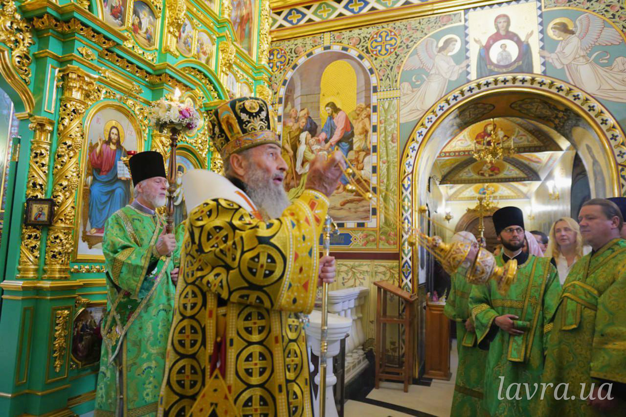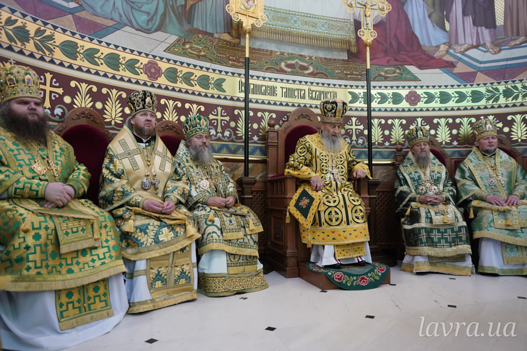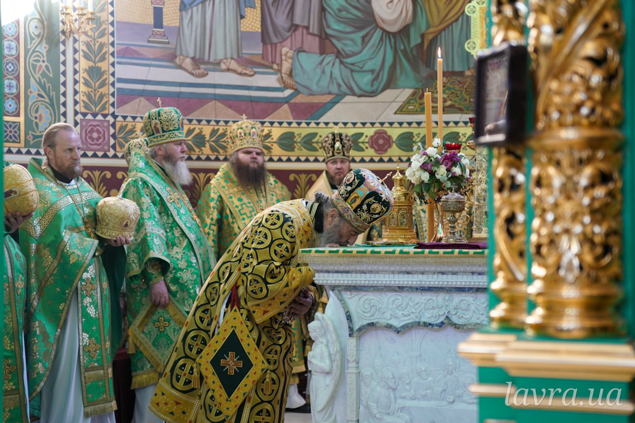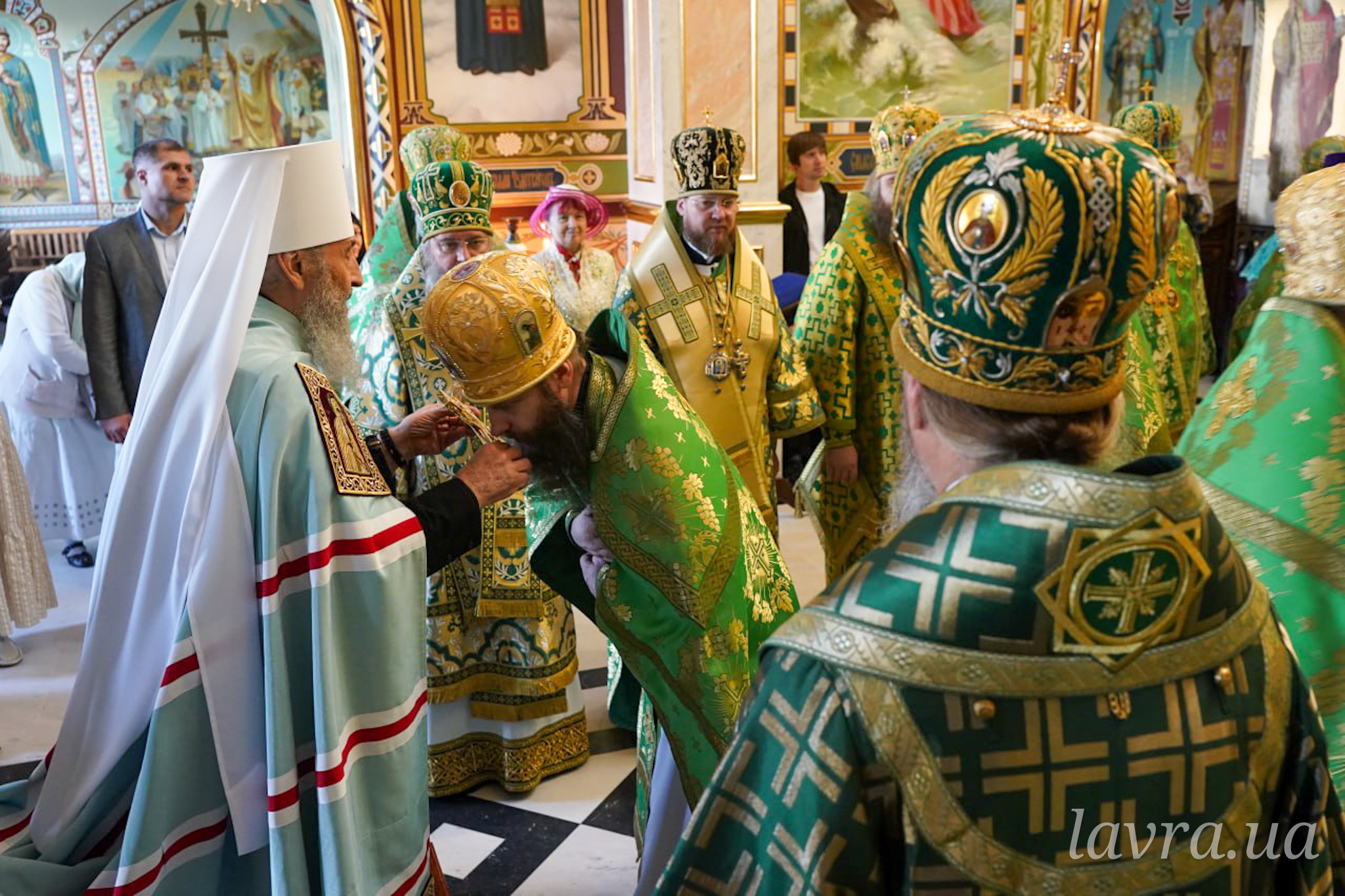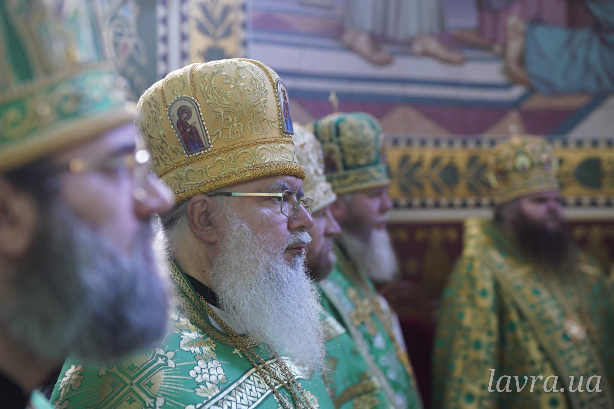 В сам день праздника в этом же храме во время Божественной Литургии Предстоятелю Украинской Православной Церкви сослужили: управляющий делами УПЦ митрополит Бориспольский и Броварской Антоний, председатель Информационно-просветительского отдела УПЦ митрополит Нежинский и Прилукский Климент, митрополит Тульчинский и Брацлавский Сергий, архиепископ Переяслав-Хмельницкий Дионисий, архиепископ Петропавловский Андрей, архиепископ Згуровский Амвросий, архиепископ Вишневский Спиридон, архиепископ Ирпенский Лавр, архиепископ Бородянский Марк, архиепископ Бышевский Кирилл, епископ Гостомельский Аркадий, а также братия и гости монастыря в священном сане во главе с духовником монастыря архимандритом Антонием.