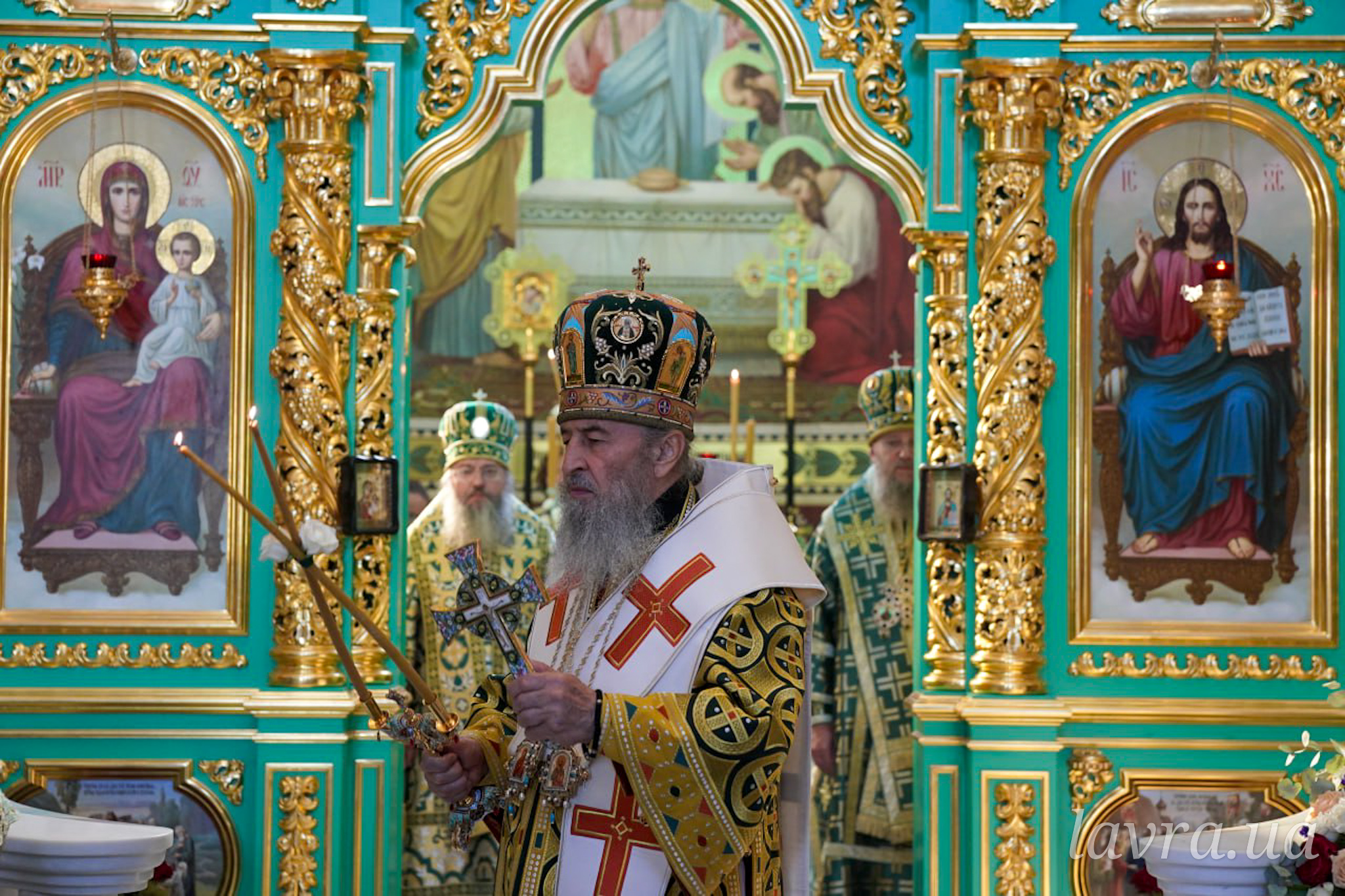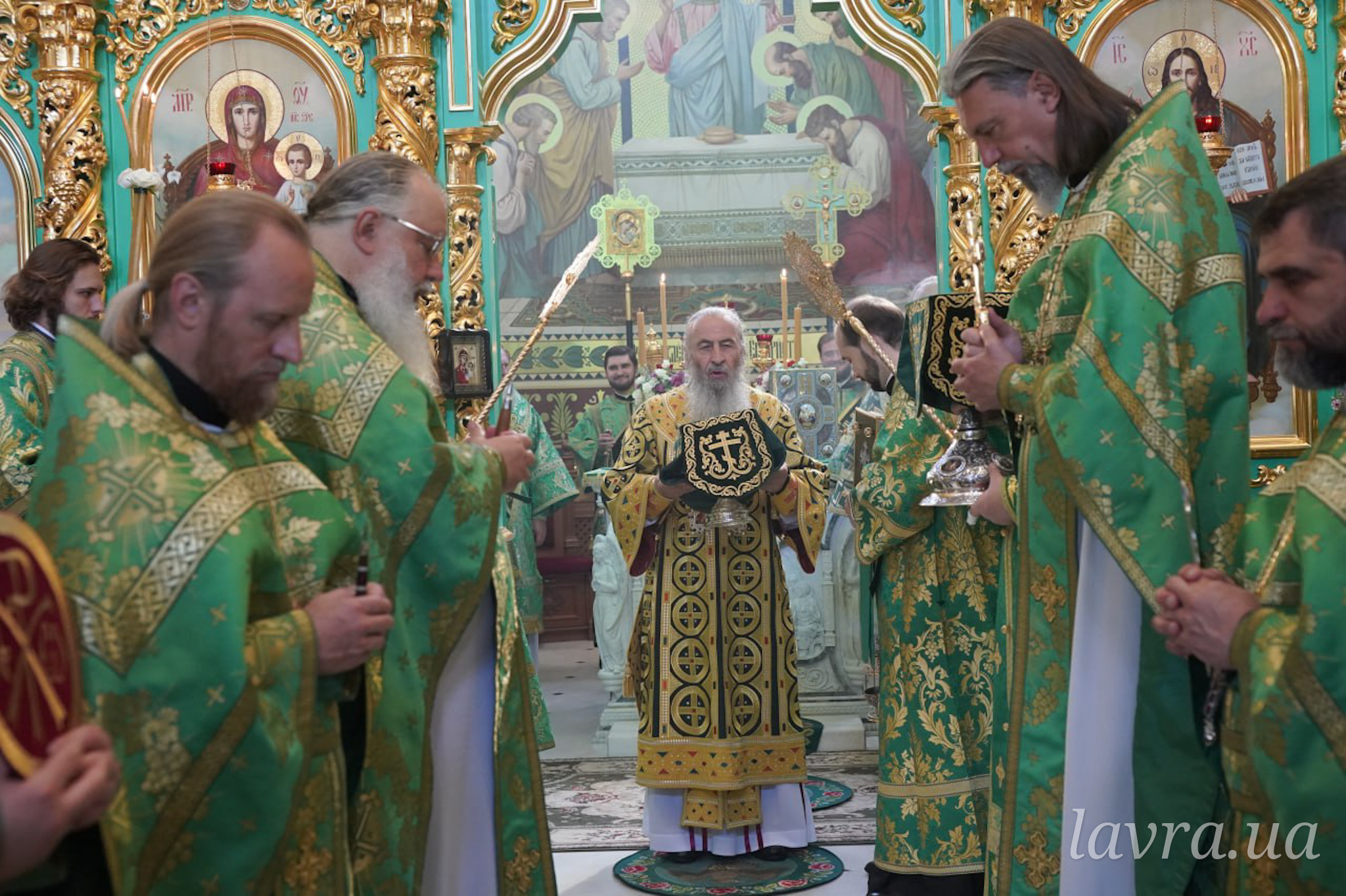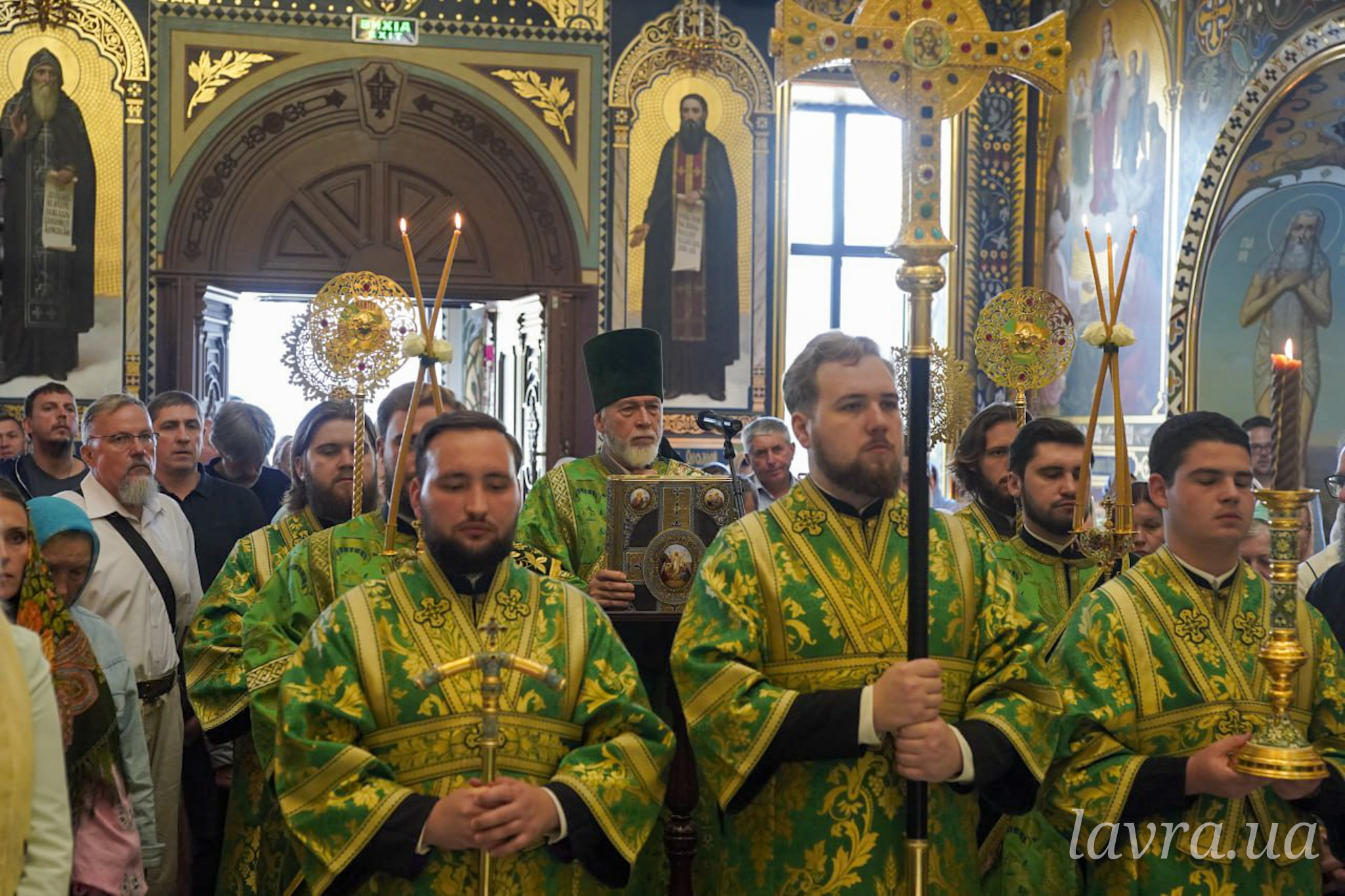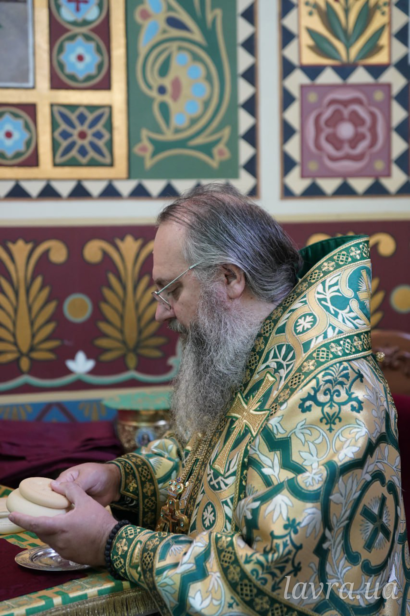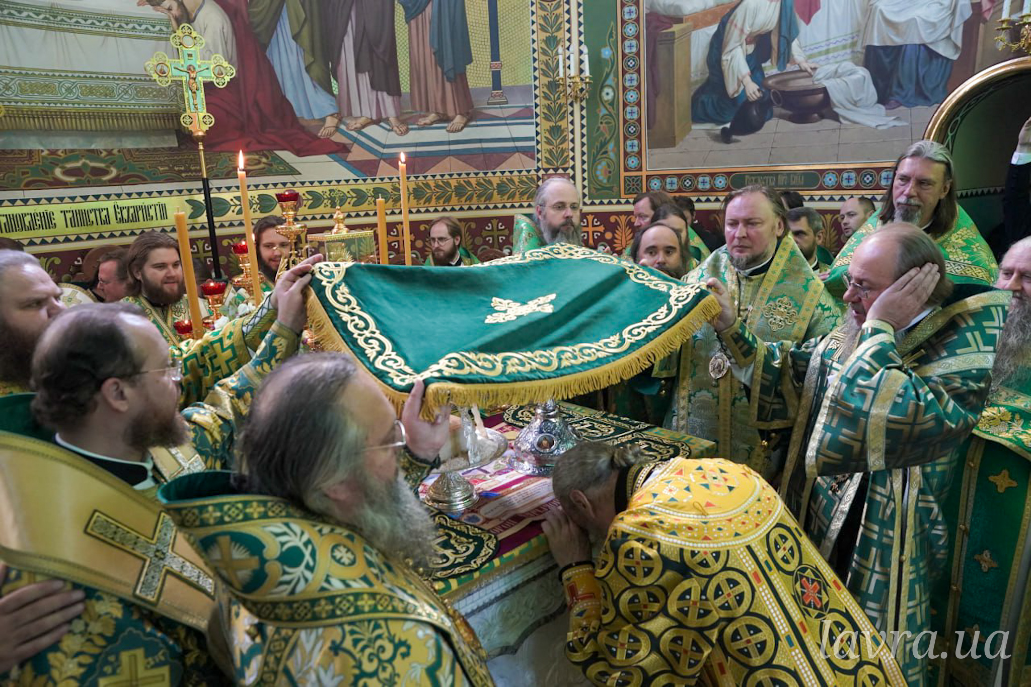 В сам день праздника в этом же храме во время Божественной Литургии Предстоятелю Украинской Православной Церкви сослужили: управляющий делами УПЦ митрополит Бориспольский и Броварской Антоний, председатель Информационно-просветительского отдела УПЦ митрополит Нежинский и Прилукский Климент, митрополит Тульчинский и Брацлавский Сергий, архиепископ Переяслав-Хмельницкий Дионисий, архиепископ Петропавловский Андрей, архиепископ Згуровский Амвросий, архиепископ Вишневский Спиридон, архиепископ Ирпенский Лавр, архиепископ Бородянский Марк, архиепископ Бышевский Кирилл, епископ Гостомельский Аркадий, а также братия и гости монастыря в священном сане во главе с духовником монастыря архимандритом Антонием.