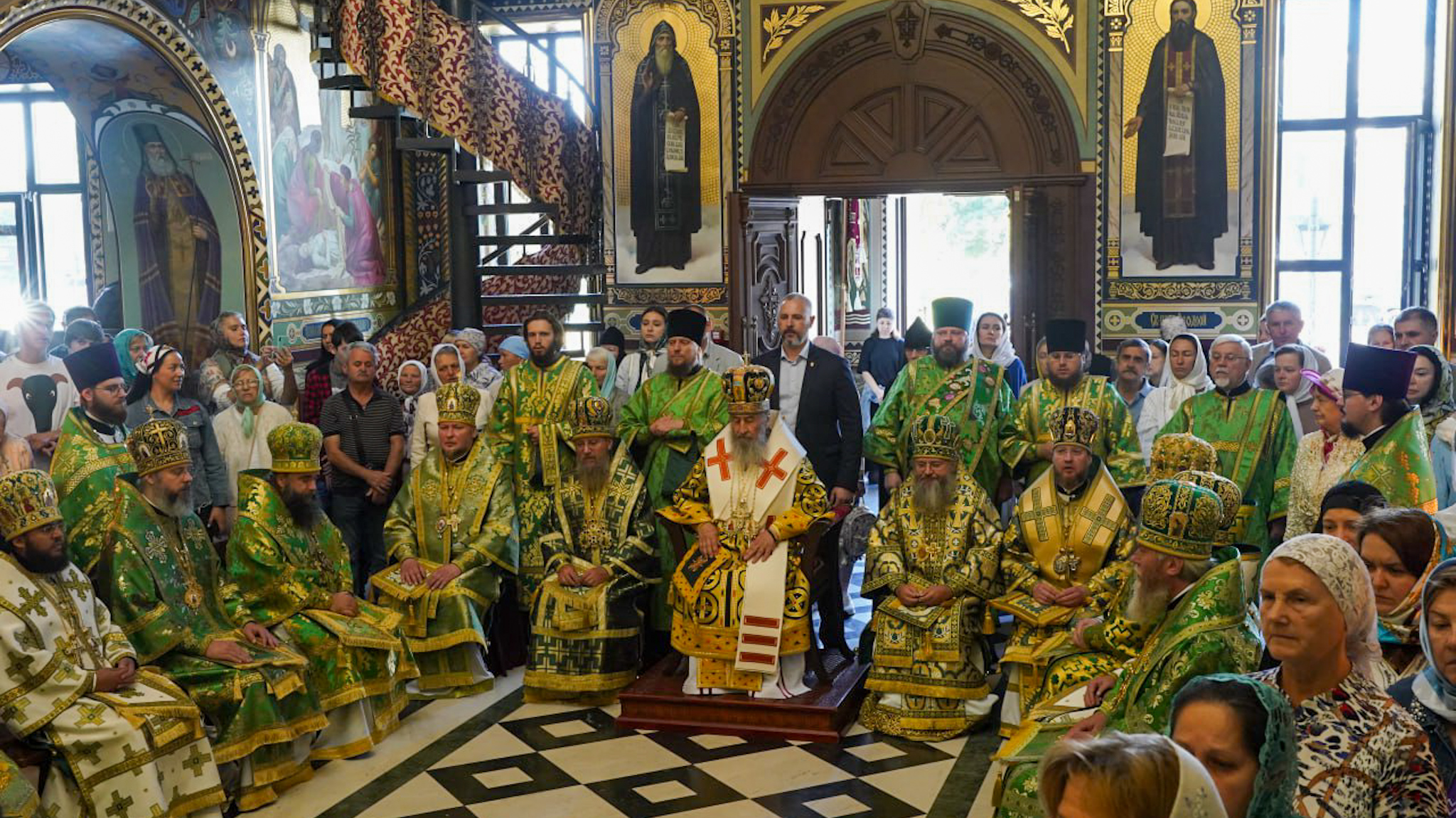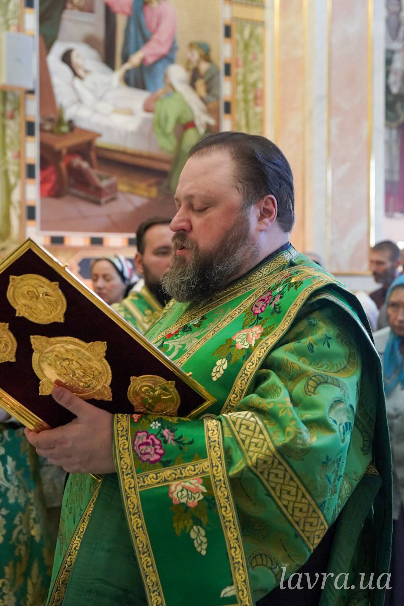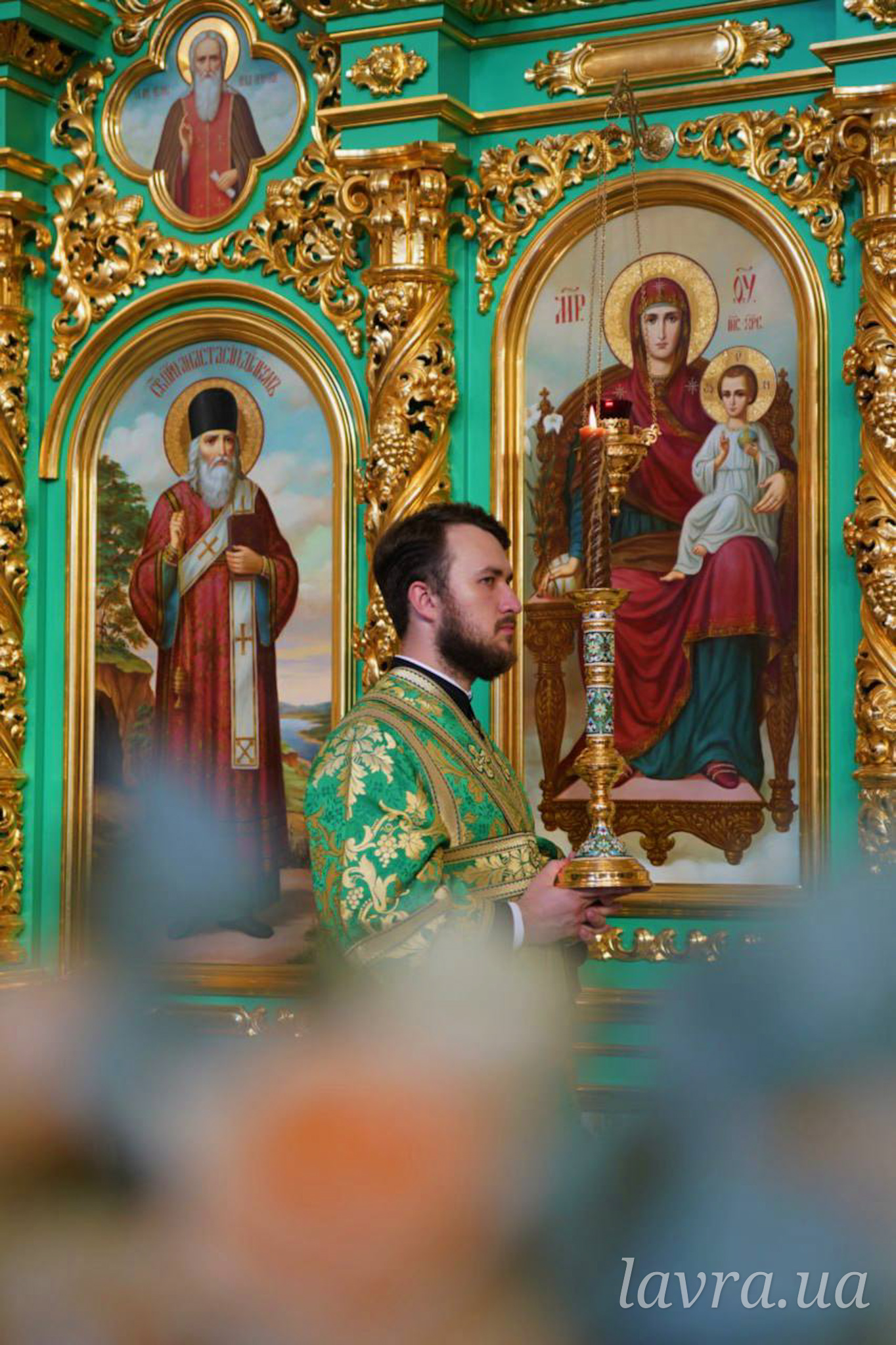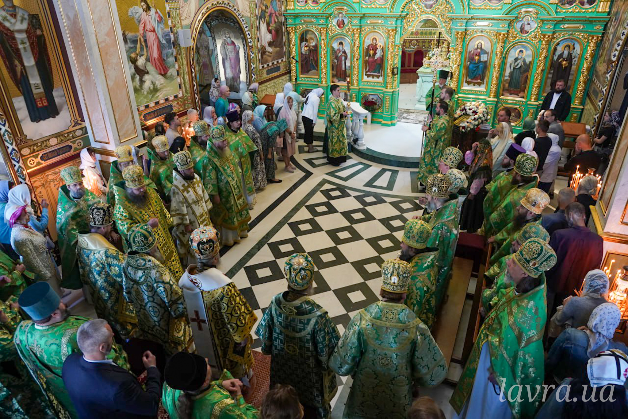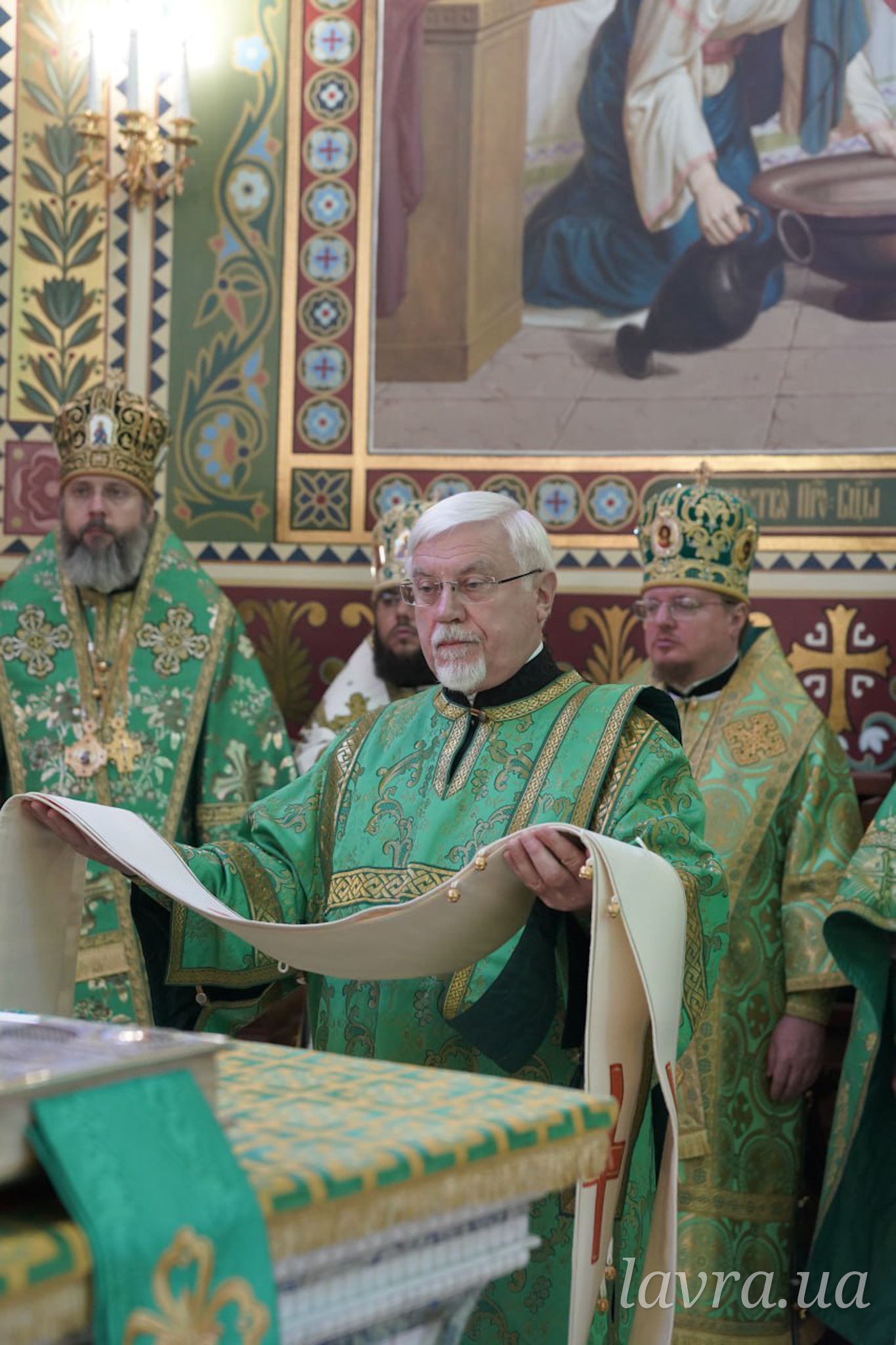В сам день праздника в этом же храме во время Божественной Литургии Предстоятелю Украинской Православной Церкви сослужили: управляющий делами УПЦ митрополит Бориспольский и Броварской Антоний, председатель Информационно-просветительского отдела УПЦ митрополит Нежинский и Прилукский Климент, митрополит Тульчинский и Брацлавский Сергий, архиепископ Переяслав-Хмельницкий Дионисий, архиепископ Петропавловский Андрей, архиепископ Згуровский Амвросий, архиепископ Вишневский Спиридон, архиепископ Ирпенский Лавр, архиепископ Бородянский Марк, архиепископ Бышевский Кирилл, епископ Гостомельский Аркадий, а также братия и гости монастыря в священном сане во главе с духовником монастыря архимандритом Антонием.