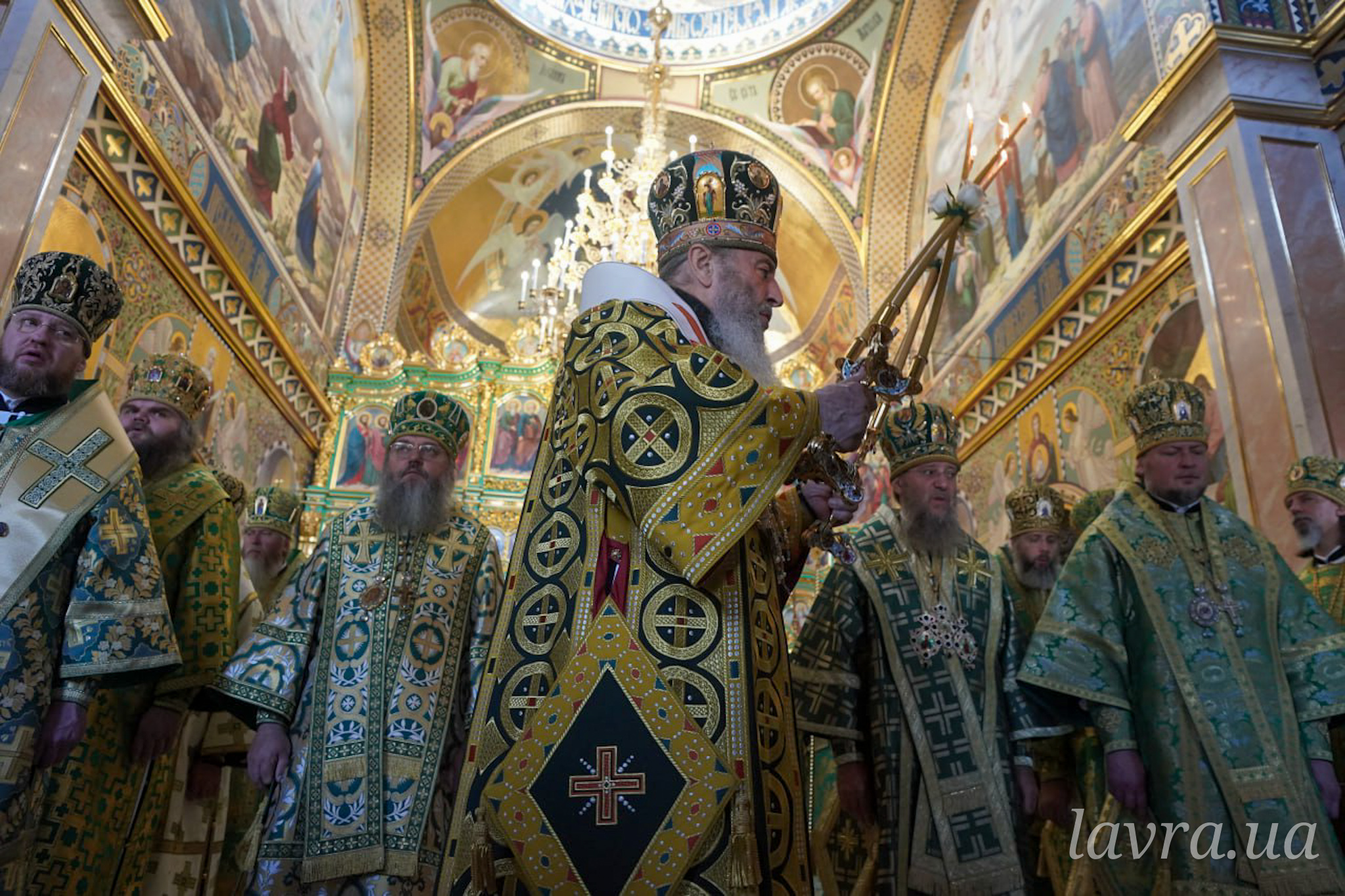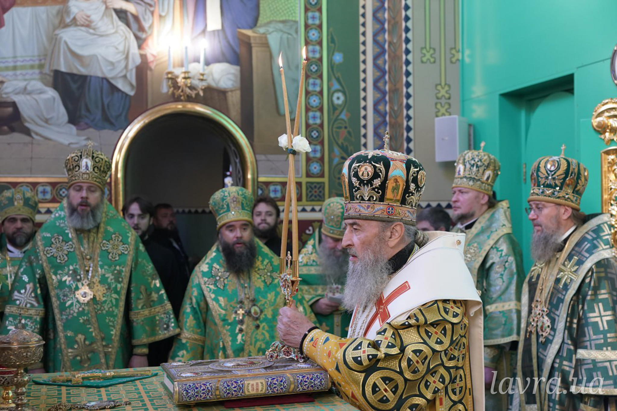 В завершение богослужения в центре храма было пропето славление празднику и была прочитана молитва преподобным отцам Печерским, после чего Блаженнейший Владыка Онуфрий поздравил сослужащих священнослужителей и всех верующих с праздником, причастников — с принятием Тела и Крови Христовых и призвал на паству архипастырское благословение.