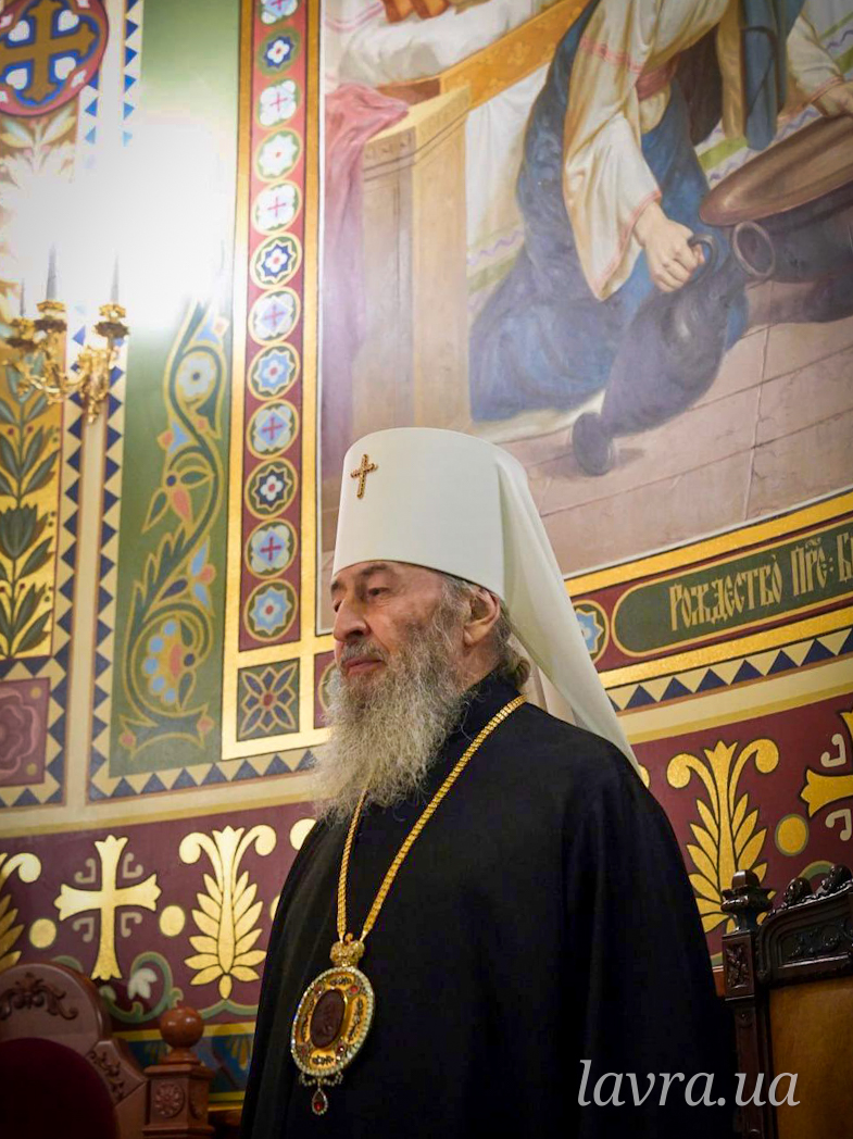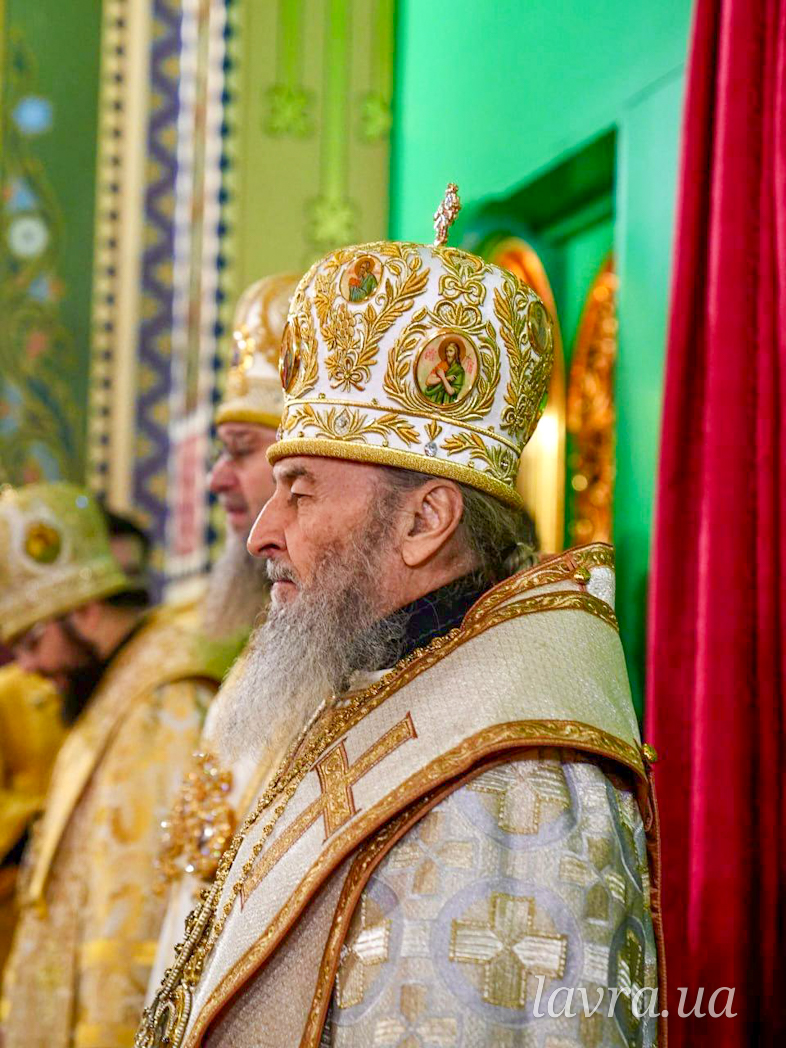 Во время Божественной Литургии Предстоятелю Украинской Православной Церкви сослужили управляющий делами УПЦ митрополит Бориспольский и Броварской Антоний, архиепископ Ирпенский Лавр, архиепископ Бородянский Марк, а также братия и гости обители в священном сане.