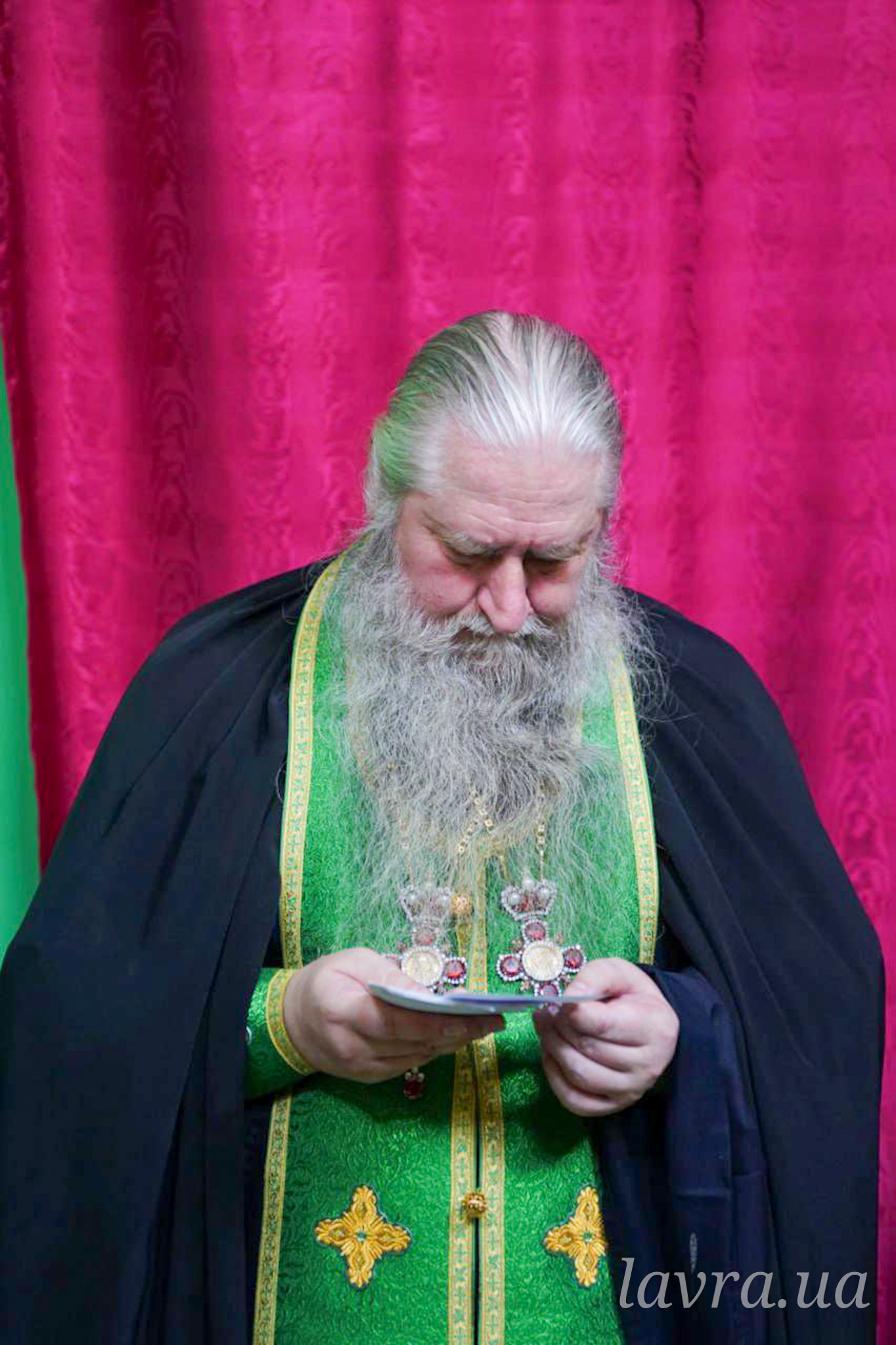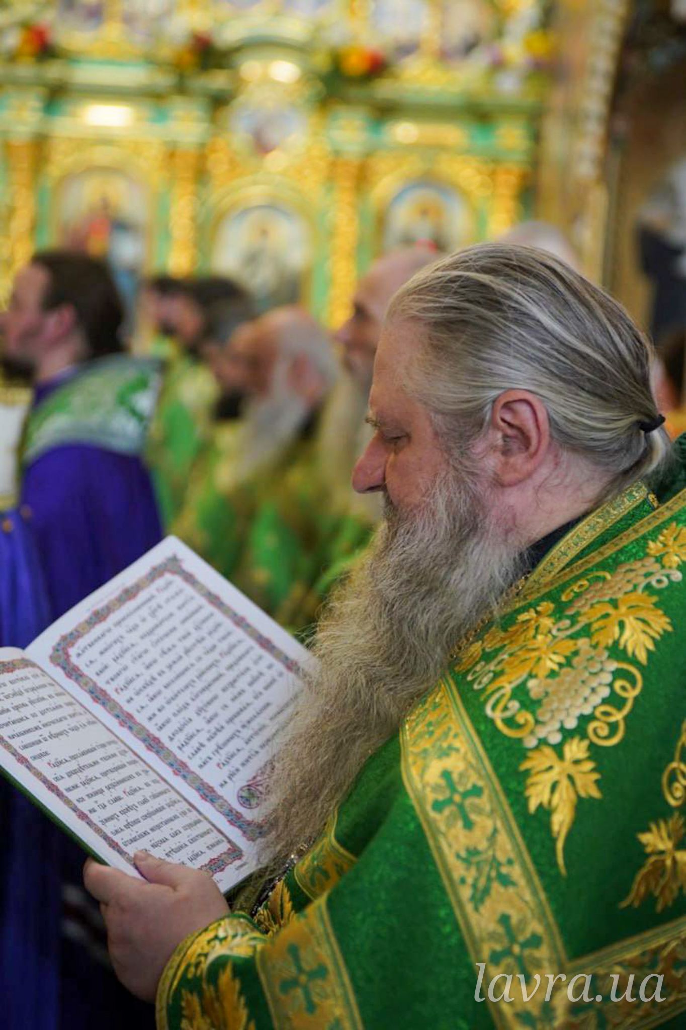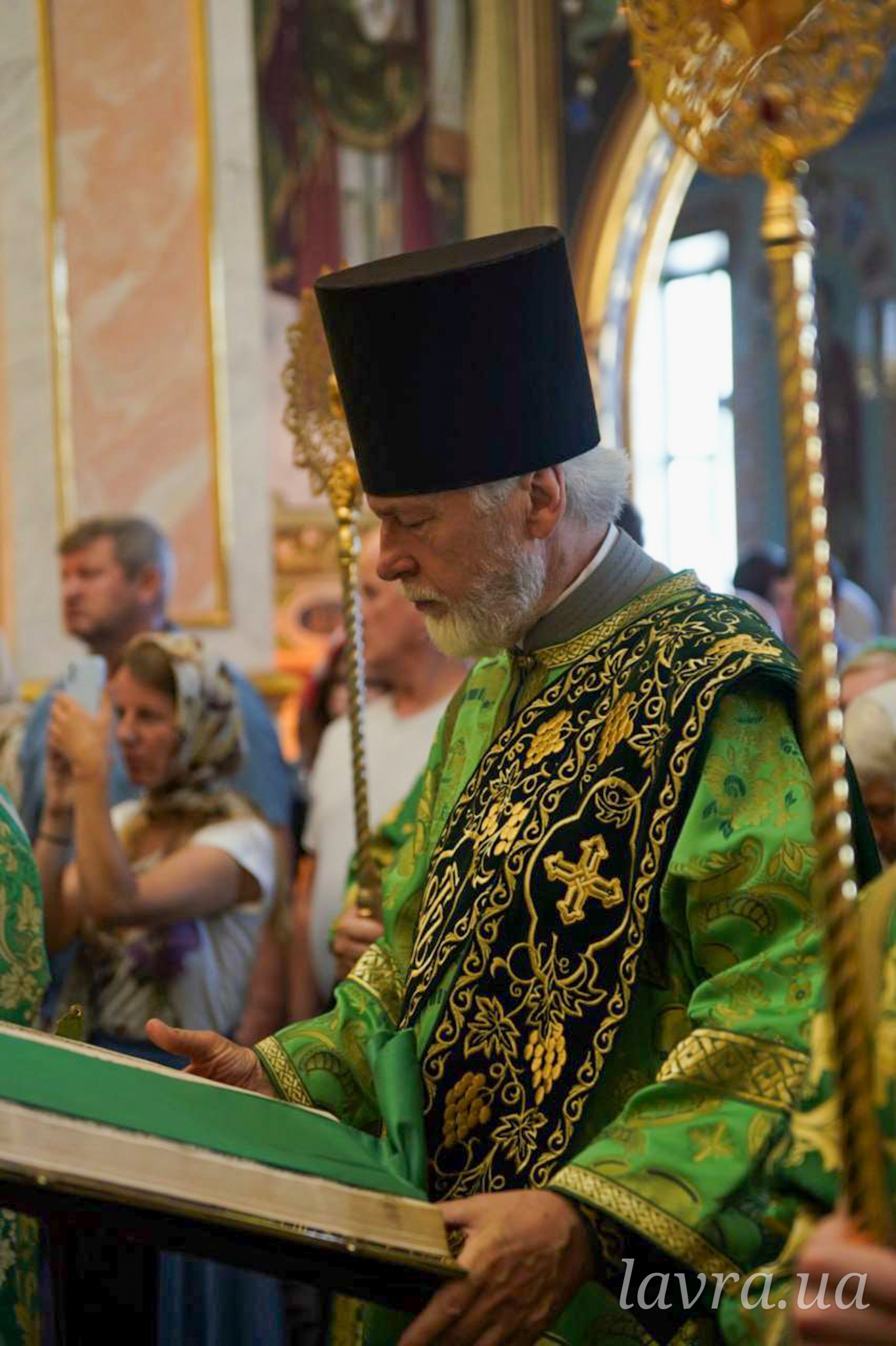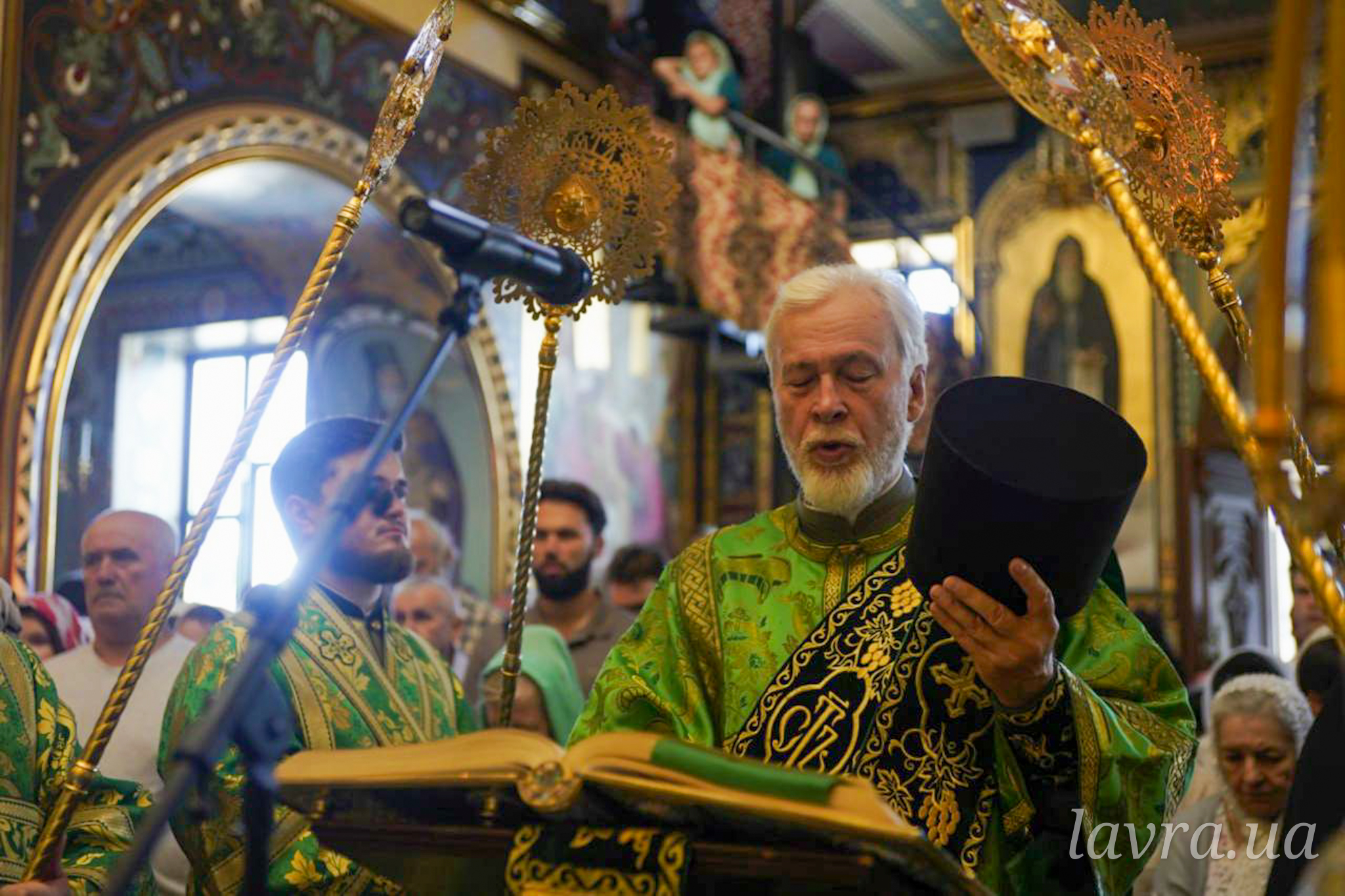 После чтения Евангелия Священноархимандрит Киево-Печерской Лавры напомнил о трудах и подвигах прп. Антония Печерского, когда святой получил благословение прибыть в Киев со Святой Горы Афон и основать в нашей земле обитель Пресвятой Богородицы.