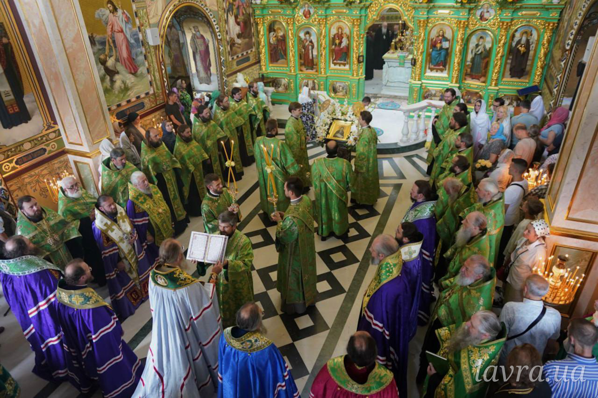 В сам праздничный день Первосвятитель возглавил соборную Божественную Литургию в том же храме. Предстоятелю Украинской Православной Церкви сослужили митрополиты: Тернопольский и Кременецкий Сергий, Каменец-Подольский и Городокский Феодор, Черновицкий и Буковинский Мелетий, Бориспольский и Броварской Антоний, Нежинский и Прилукский Климент, сонм архиереев, братия и многочисленные гости в священном сане.