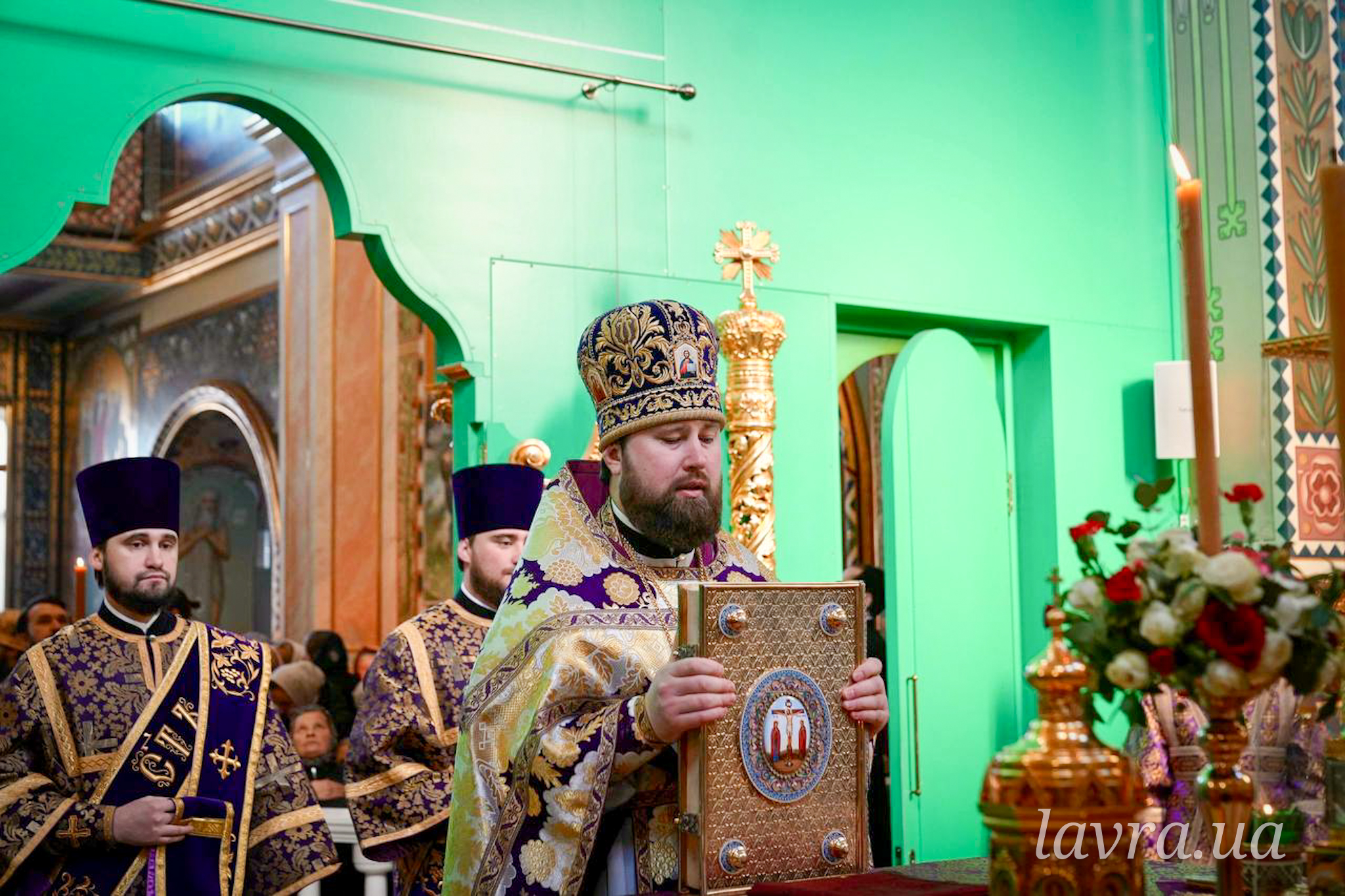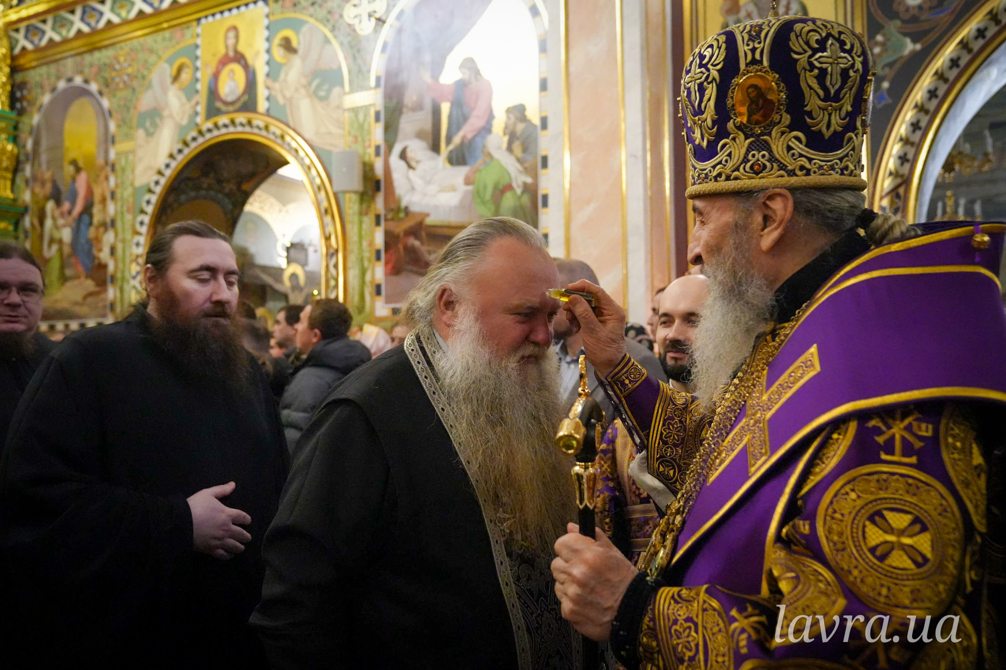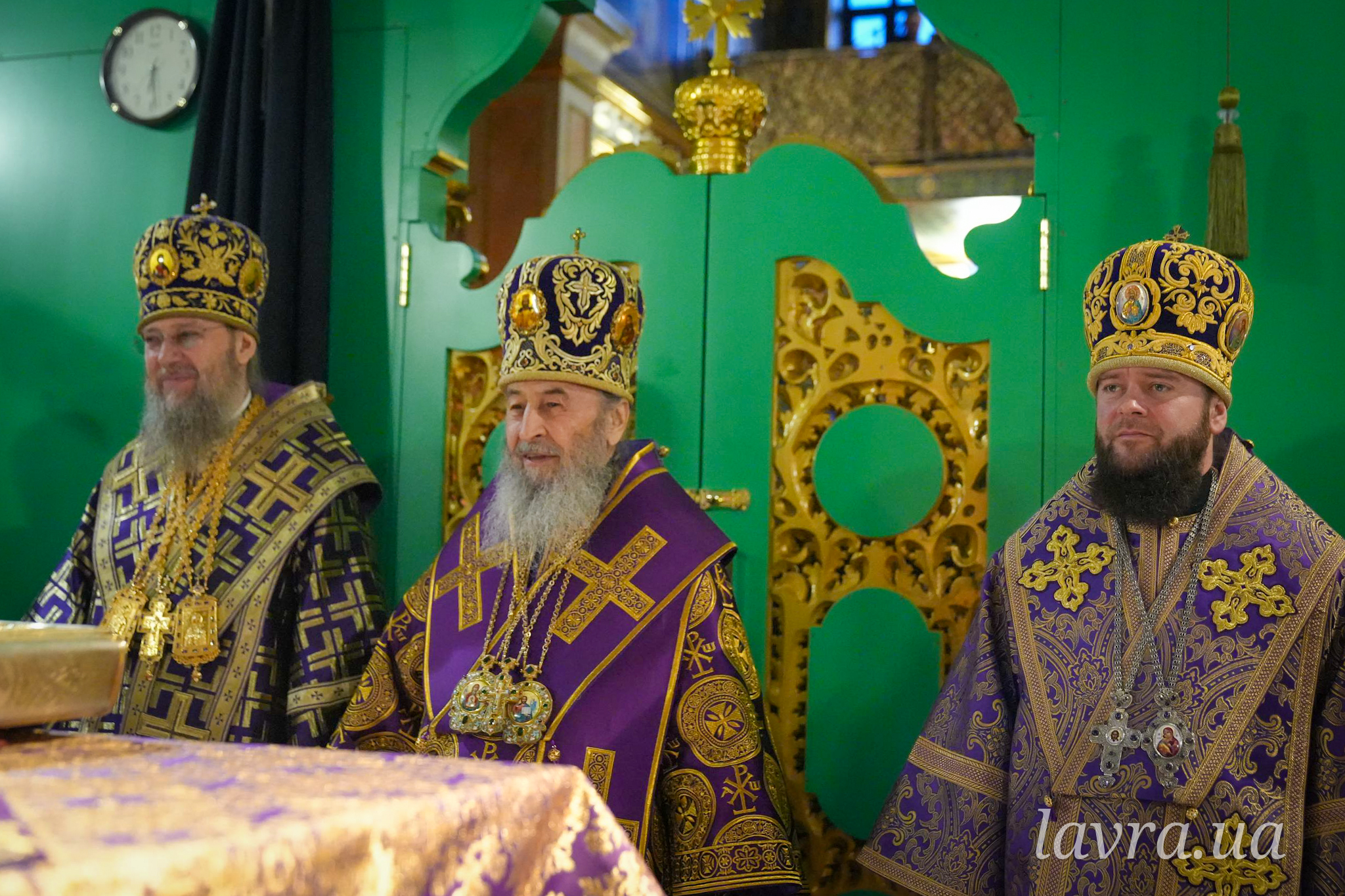 Во время Божественной Литургии Священноархимандриту Киево-Печерской обители сослужили управляющий делами УПЦ митрополит Бориспольский и Броварской Антоний, архиепископ Добропольский Спиридон, архиепископ Ирпенский Лавр, архиепископ Бородянский Марк, а также братия и гости обители в священном сане во главе с благочинным монастыря архимандритом Иларионом.