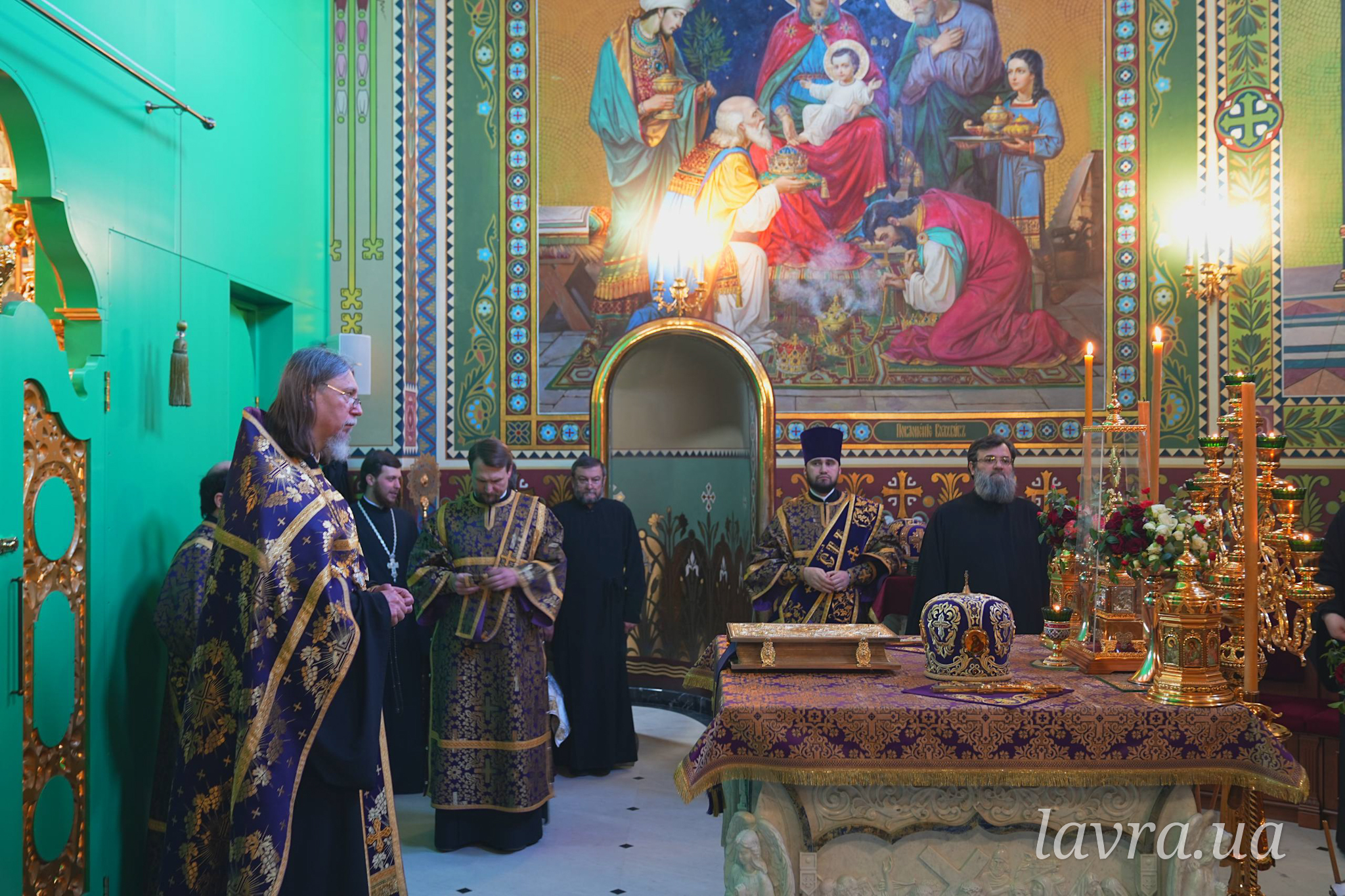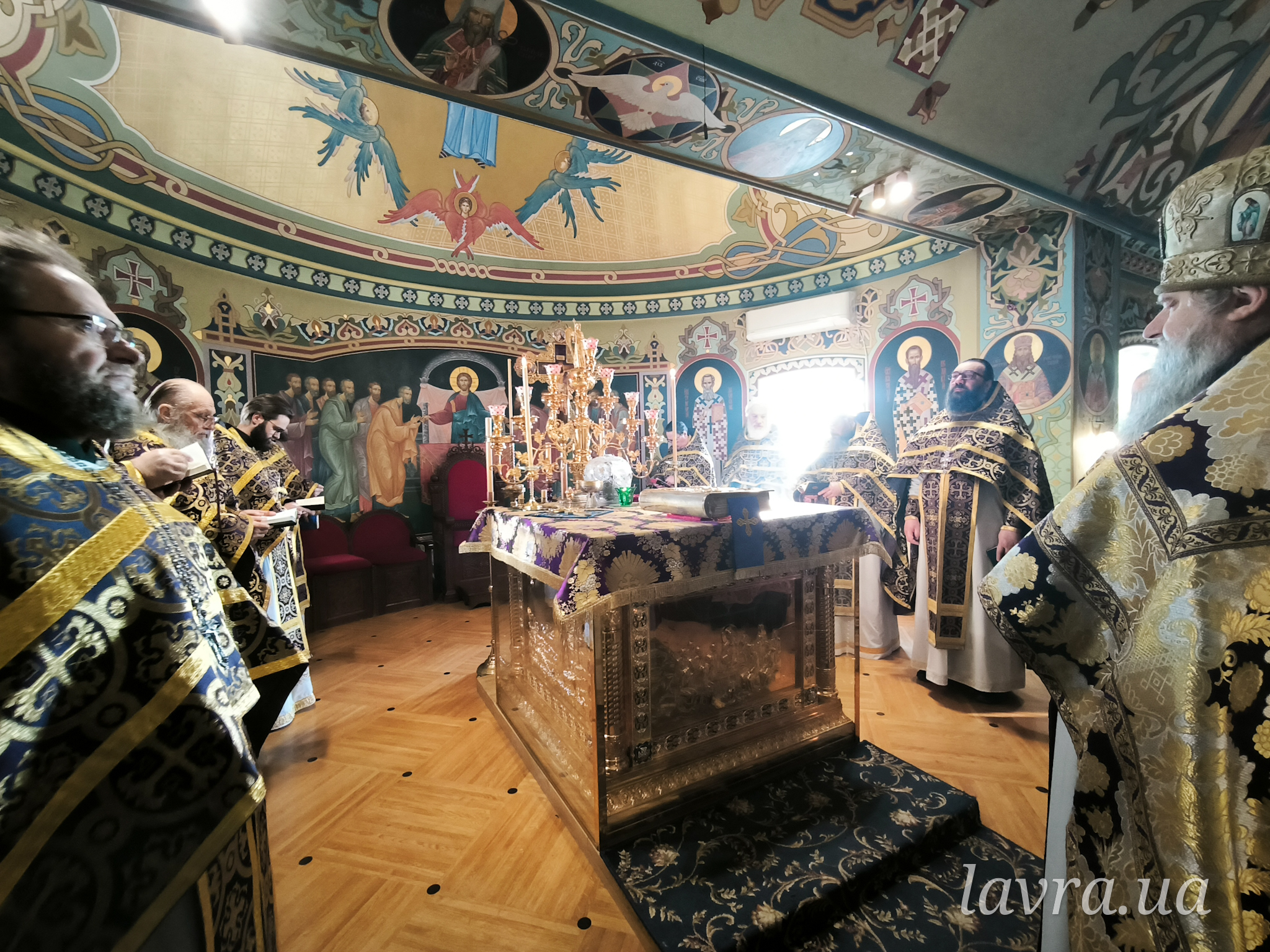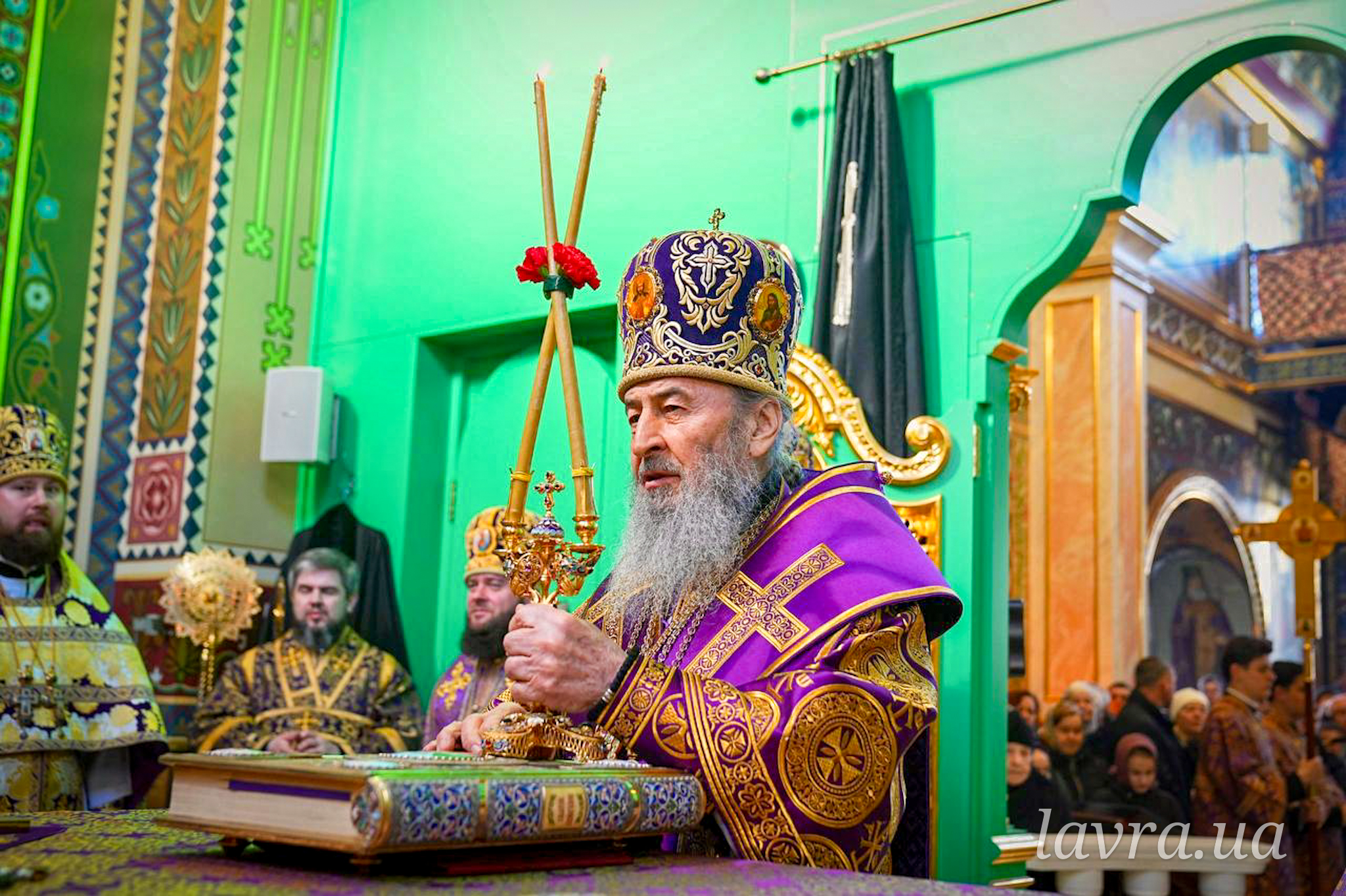 Во время Божественной Литургии Священноархимандриту Киево-Печерской обители сослужили управляющий делами УПЦ митрополит Бориспольский и Броварской Антоний, архиепископ Добропольский Спиридон, архиепископ Ирпенский Лавр, архиепископ Бородянский Марк, а также братия и гости обители в священном сане во главе с благочинным монастыря архимандритом Иларионом.