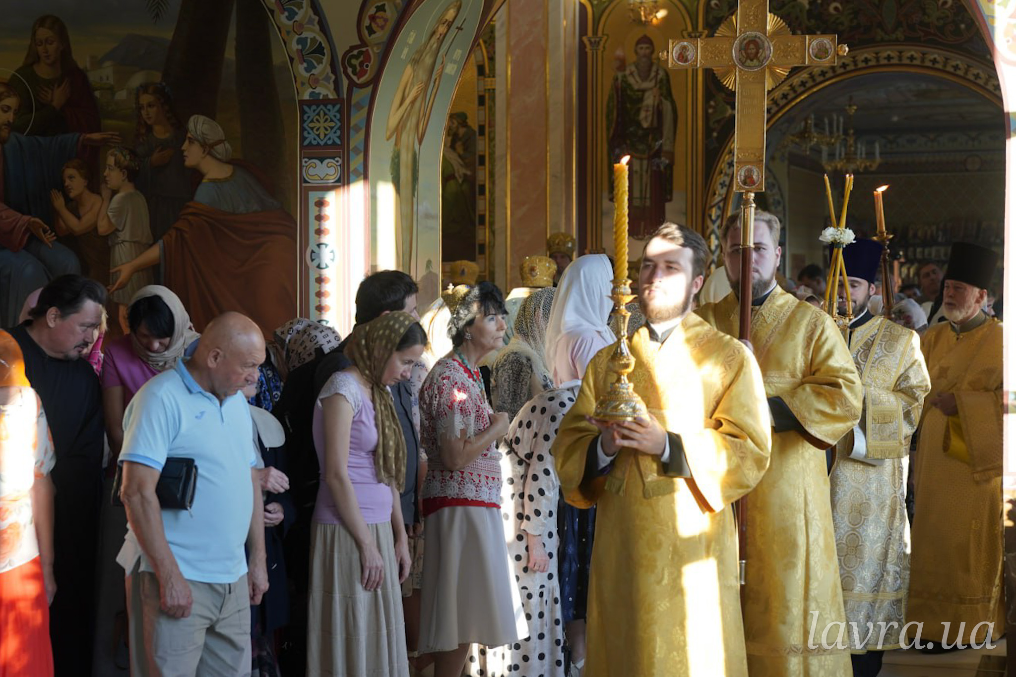 Во время Божественной Литургии Предстоятелю Украинской Православной Церкви сослужили управляющий делами УПЦ митрополит Бориспольский и Броварской Антоний, архиепископ Ирпенский Лавр, архиепископ Бородянский Марк, а также братия и гости обители в священном сане.