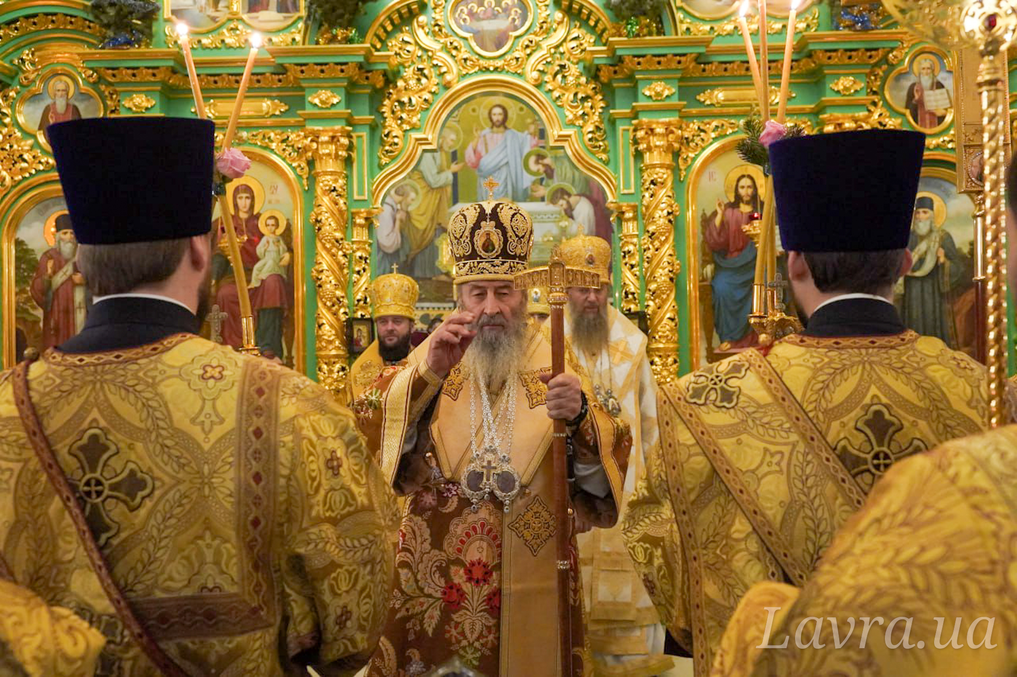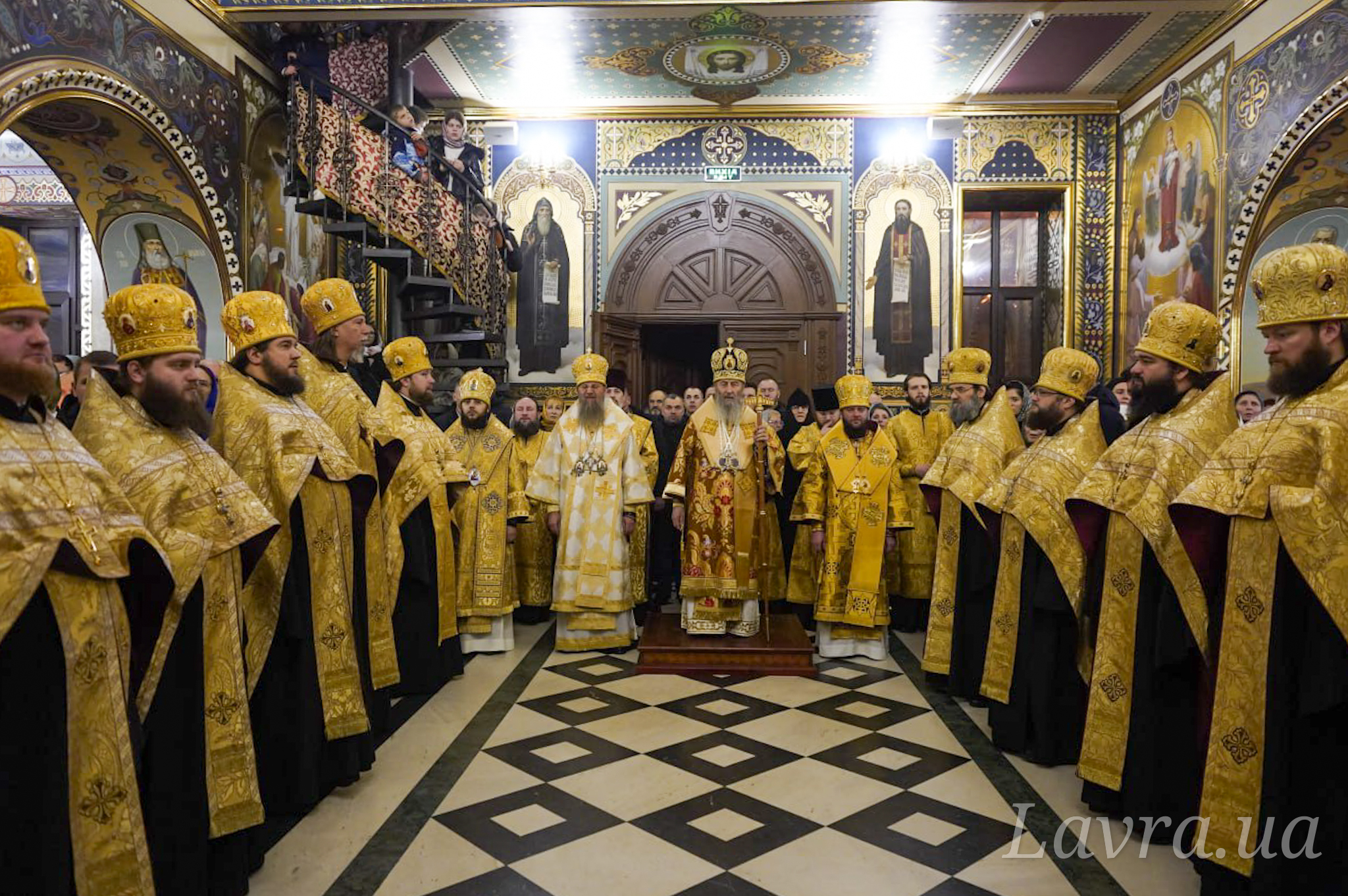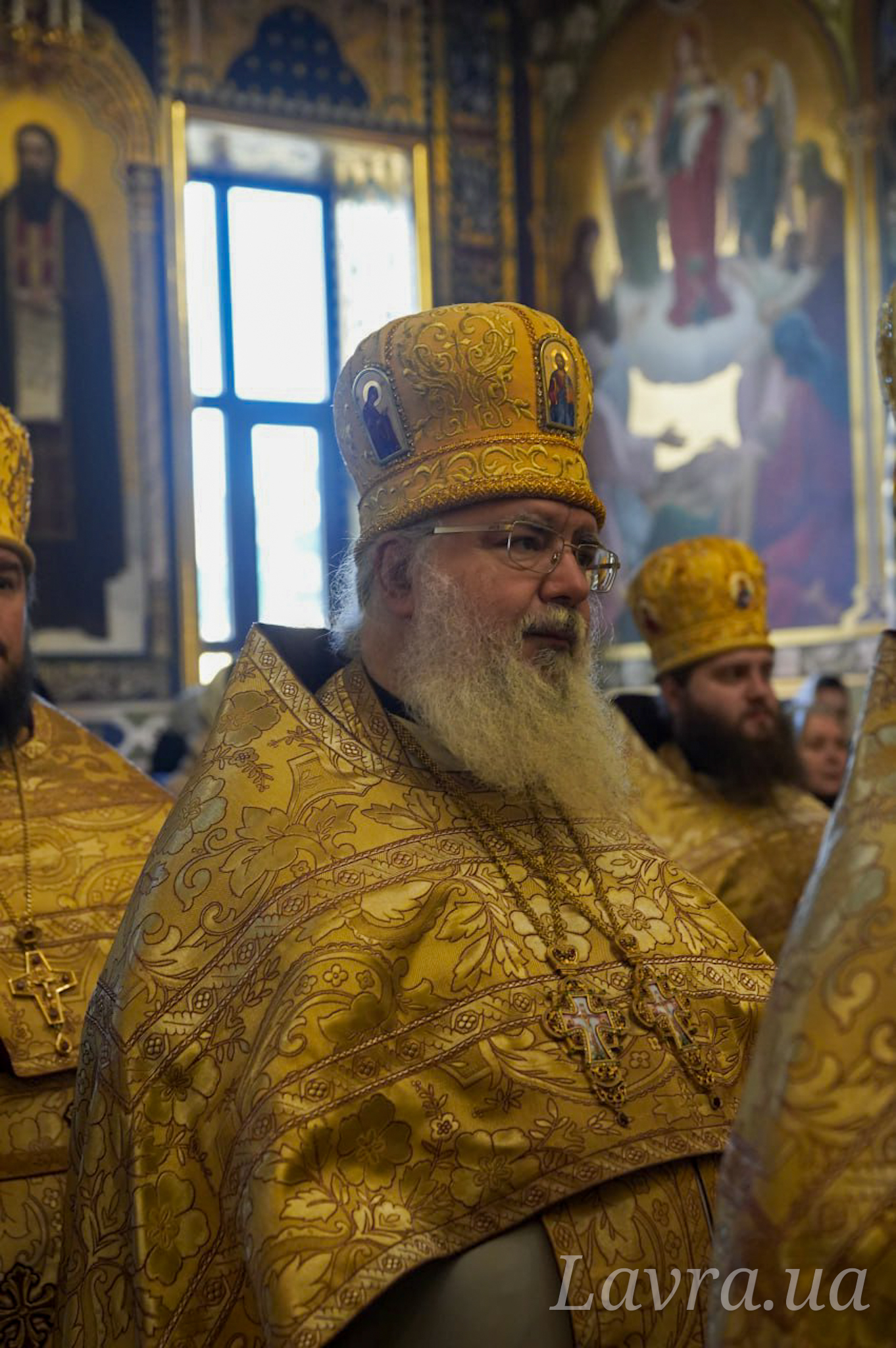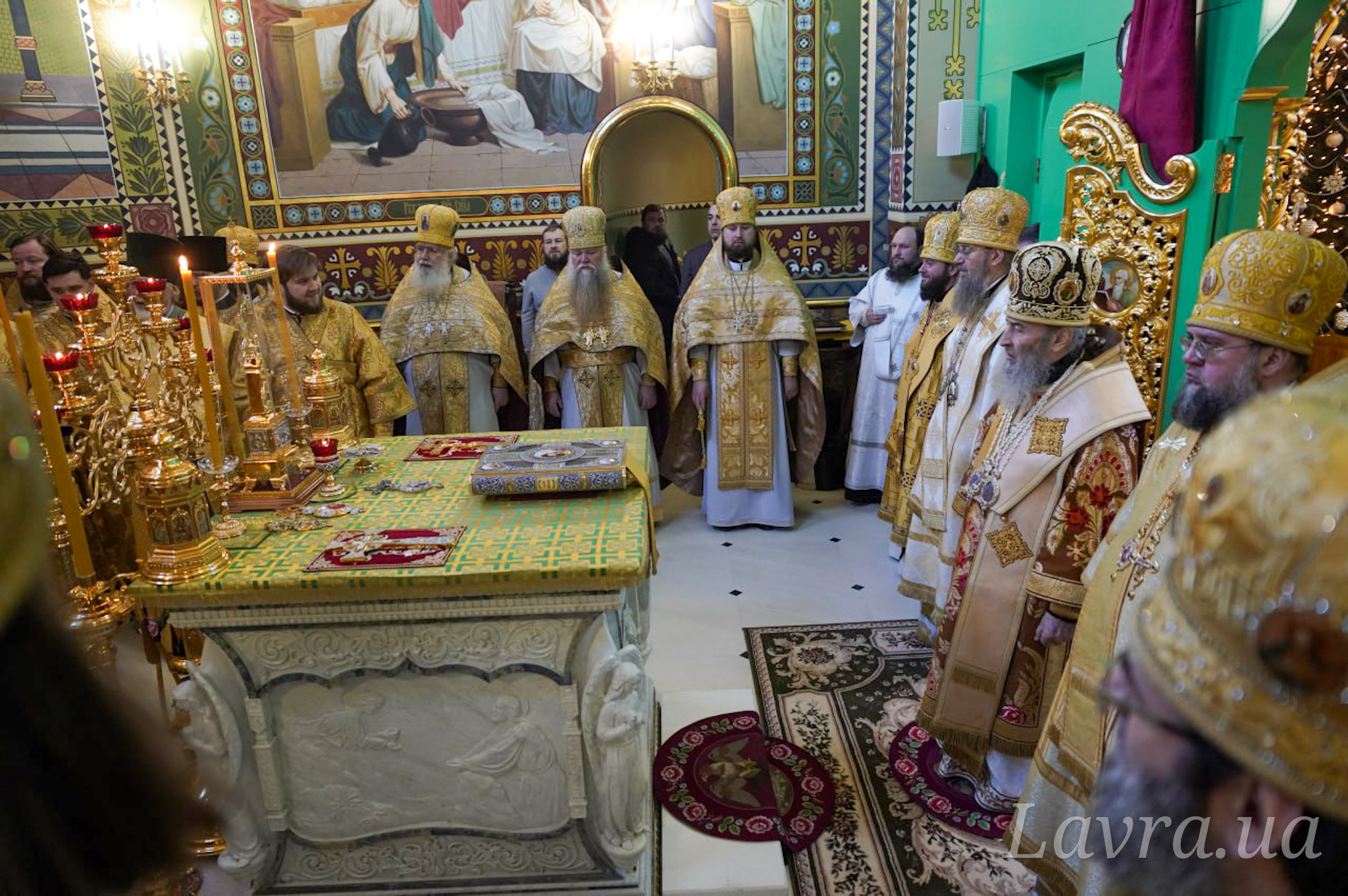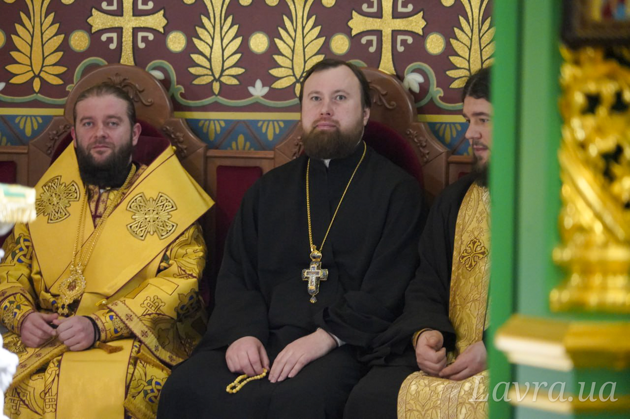 Під час Божественної Літургії Предстоятелю Української Православної Церкви співслужили керуючий справами УПЦ митрополит Бориспільський і Броварський Антоній, архієпископ Білогородський Сильвестр, єпископ Ірпінський Лавр, єпископ Бородянський Марк, а також братія і гості обителі у священному сані на чолі з благочинним архімандритом Іларіоном.