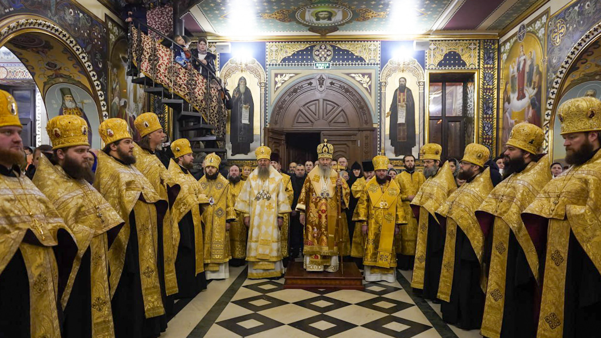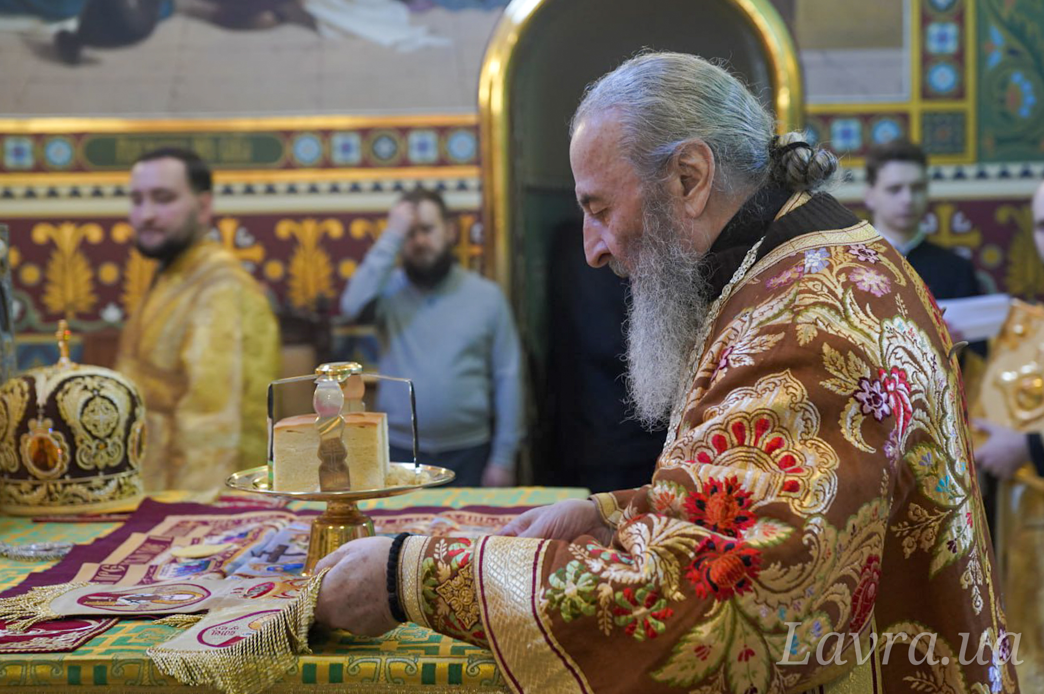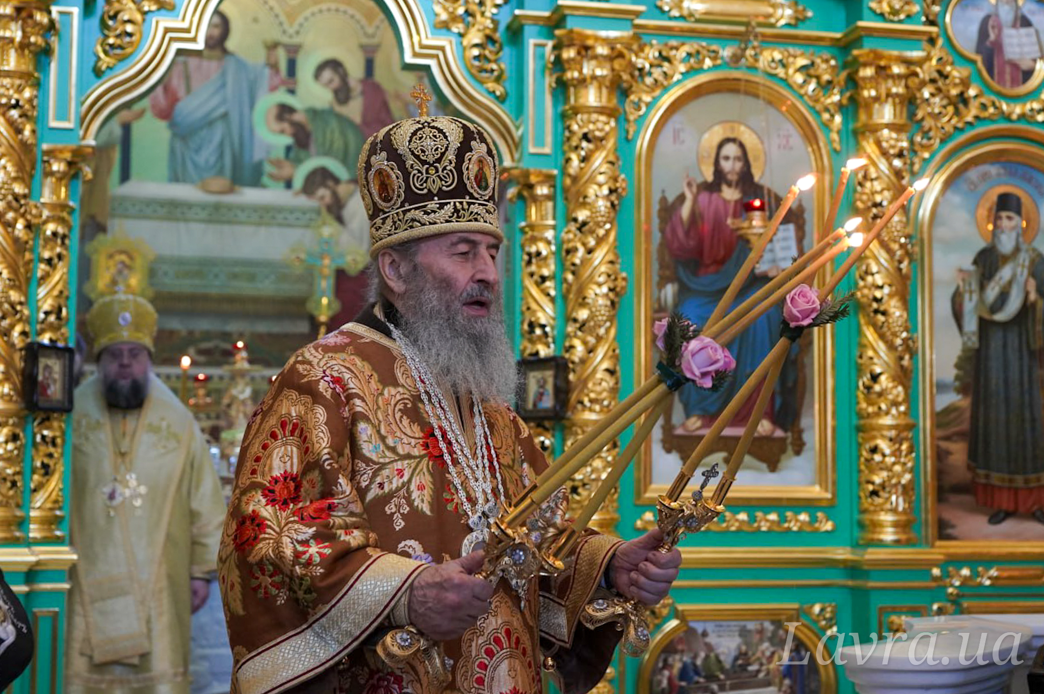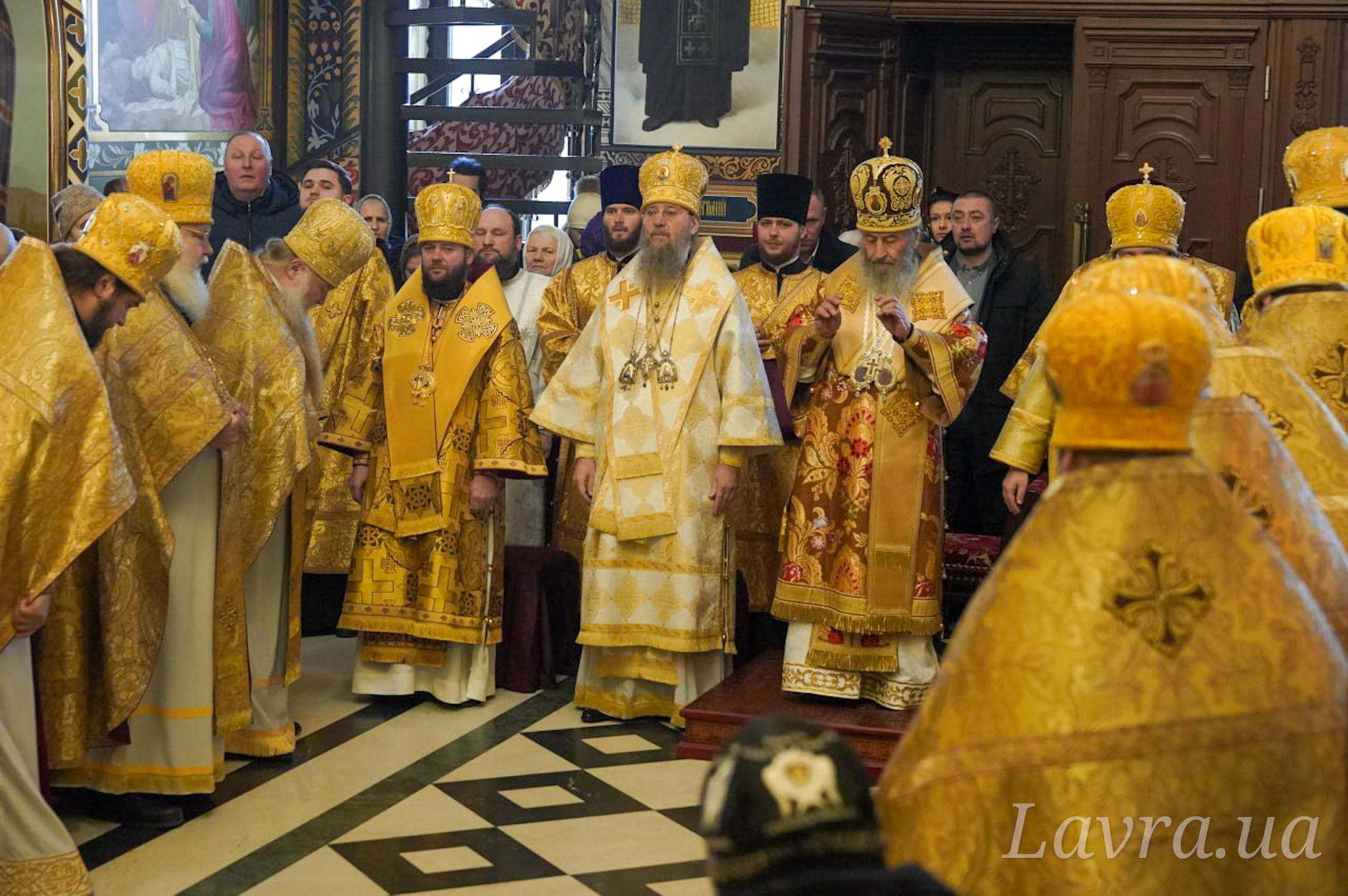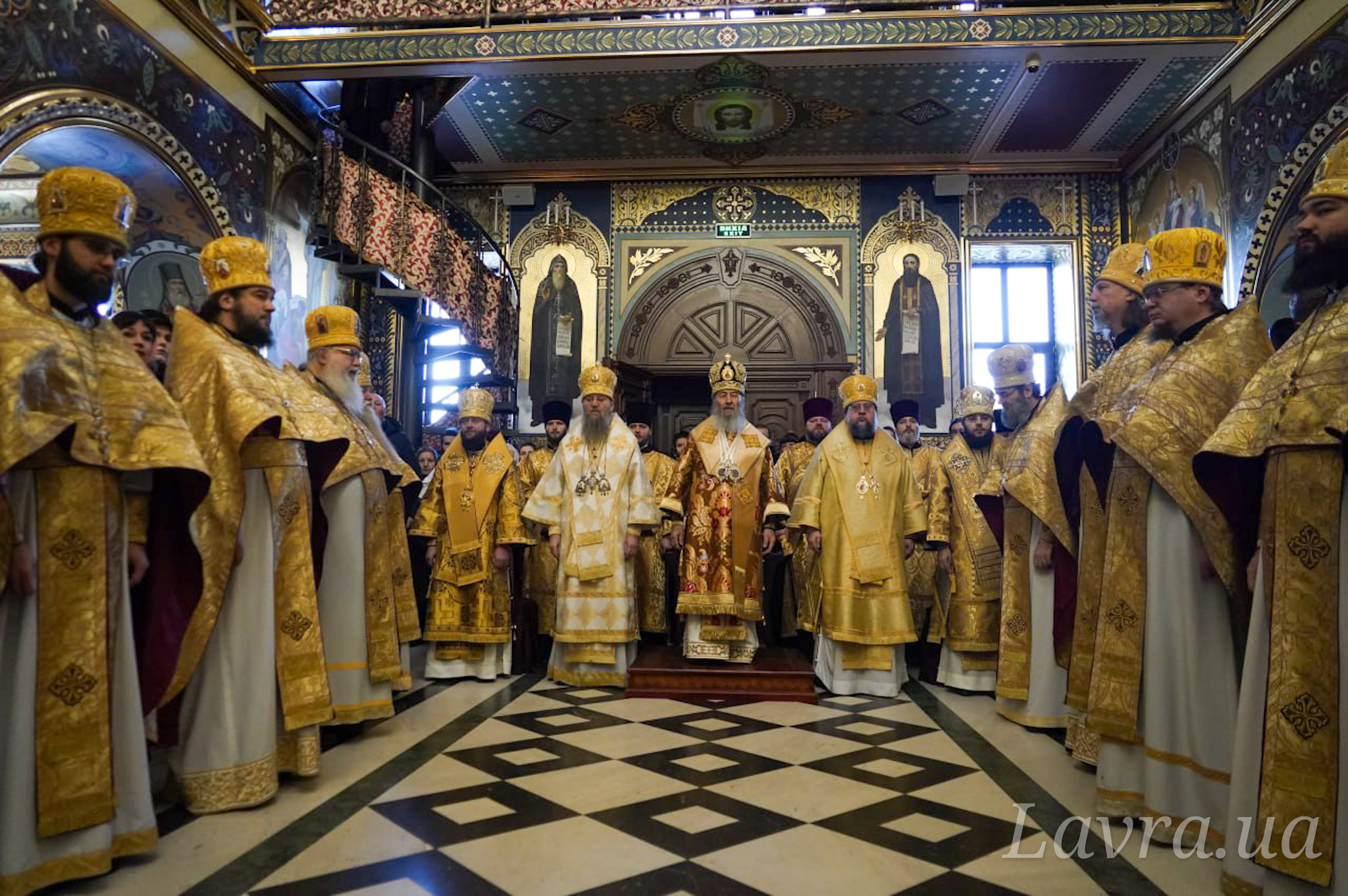 Під час Божественної Літургії Предстоятелю Української Православної Церкви співслужили керуючий справами УПЦ митрополит Бориспільський і Броварський Антоній, архієпископ Білогородський Сильвестр, єпископ Ірпінський Лавр, єпископ Бородянський Марк, а також братія і гості обителі у священному сані на чолі з благочинним архімандритом Іларіоном.