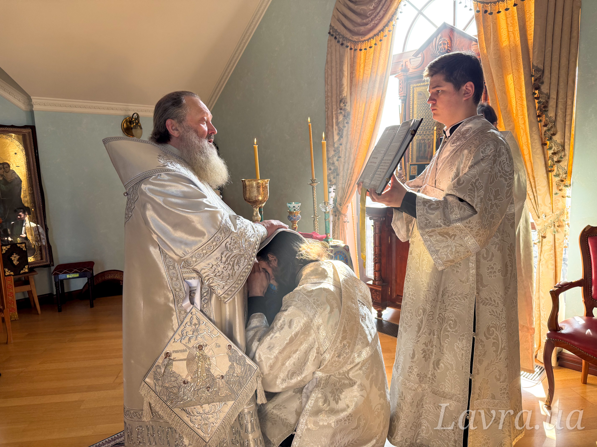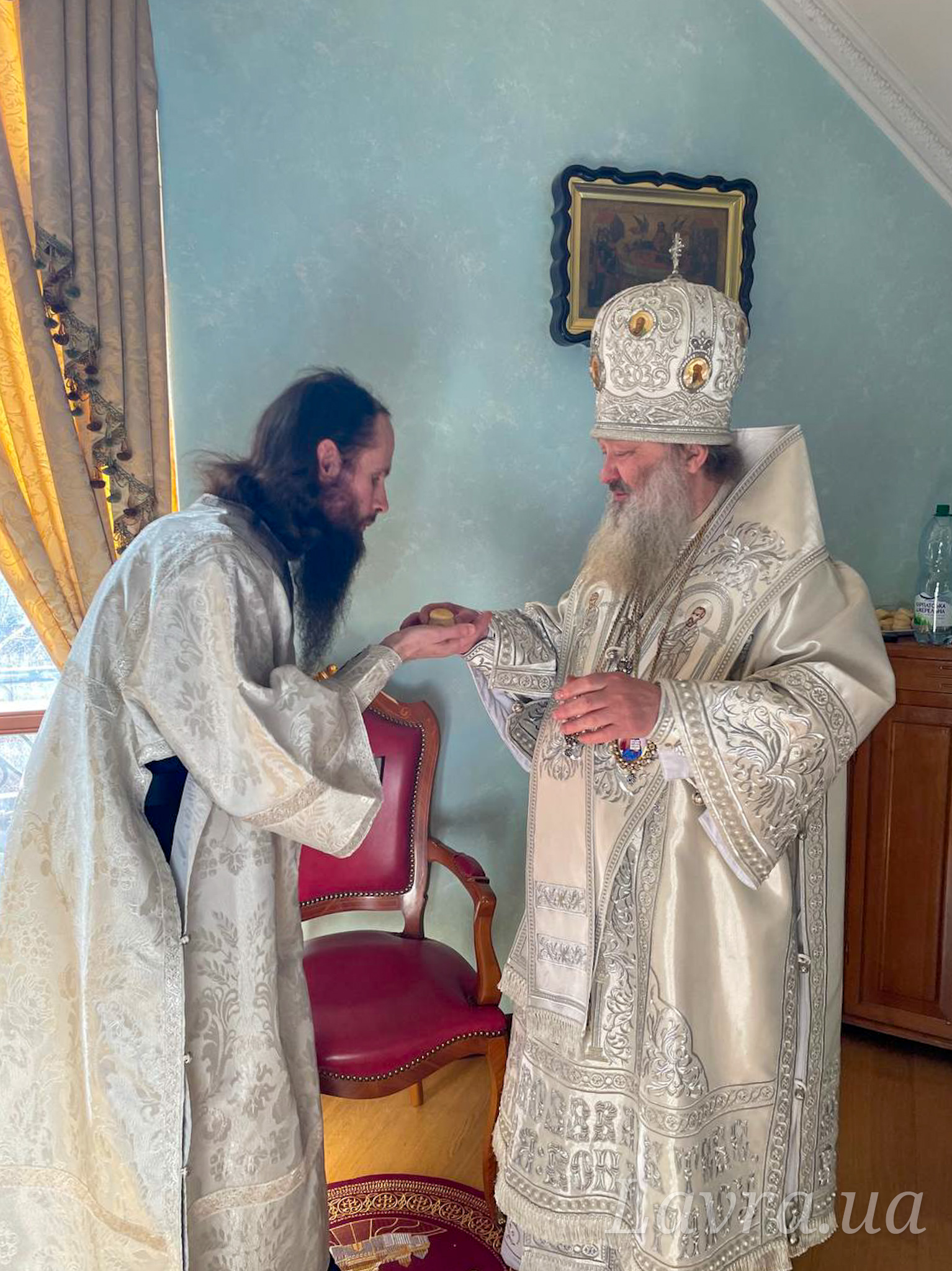 Під час богослужіння Намісник Лаври з благословення Предстоятеля УПЦ звершив дияконську хіротонію інока Клеопи та удостоїв священнослужителів Лаври богослужбових нагород.