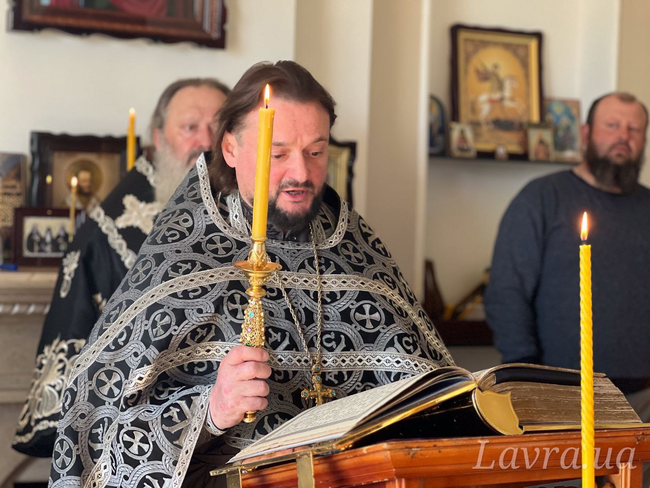 У Велику П’ятницю Намісник Києво-Печерської Лаври митрополит Вишгородський і Чорнобильський Павел звершив Царські Часи і вечірню з виносом Плащаниці (а напередодні ввечері – утреню з читанням 12-ти Страсних Євангелій) у домовому храмі.