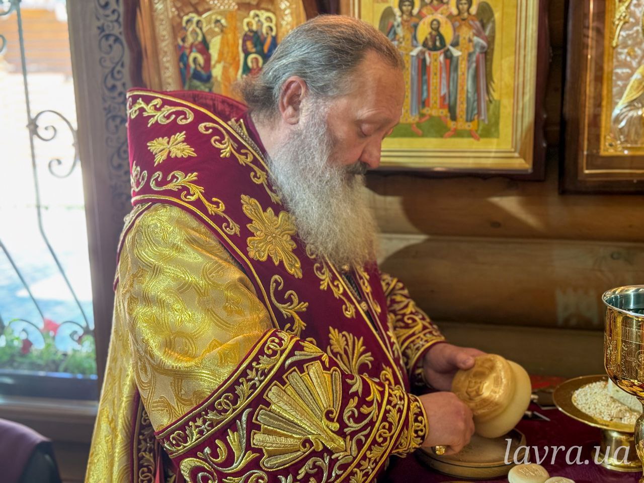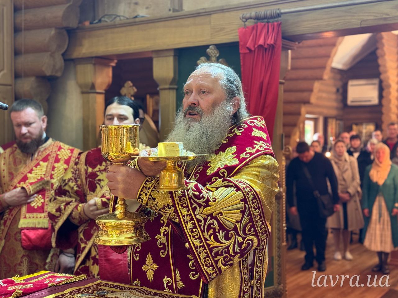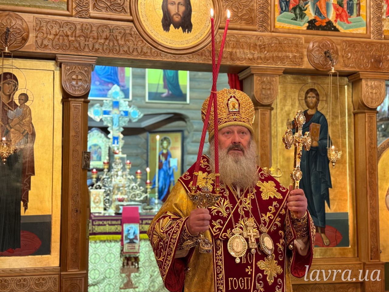Архіпастирю співслужили братія Лаври у священному сані, протоієрей Віктор Дреботій та священнослужителі УПЦ.