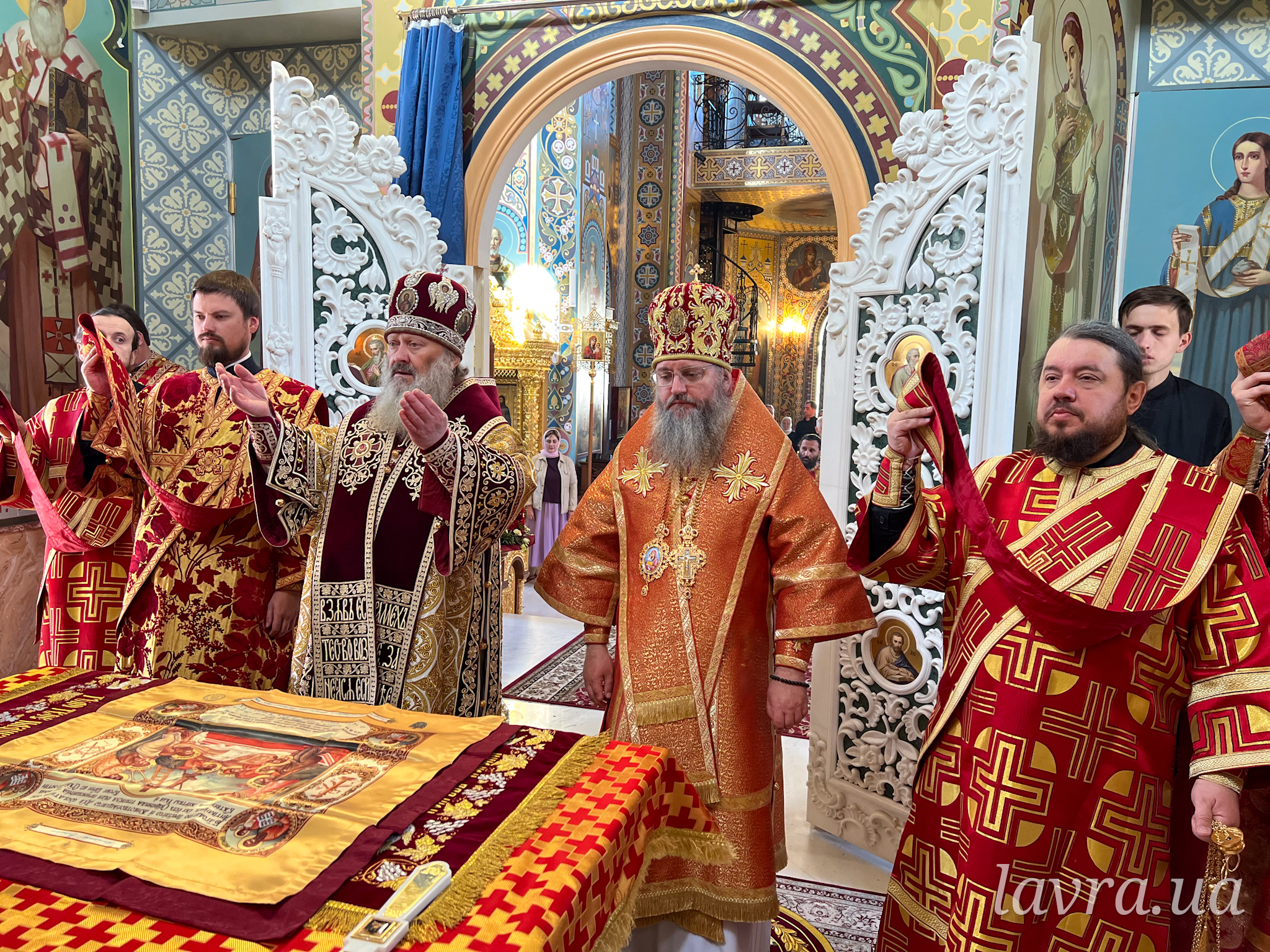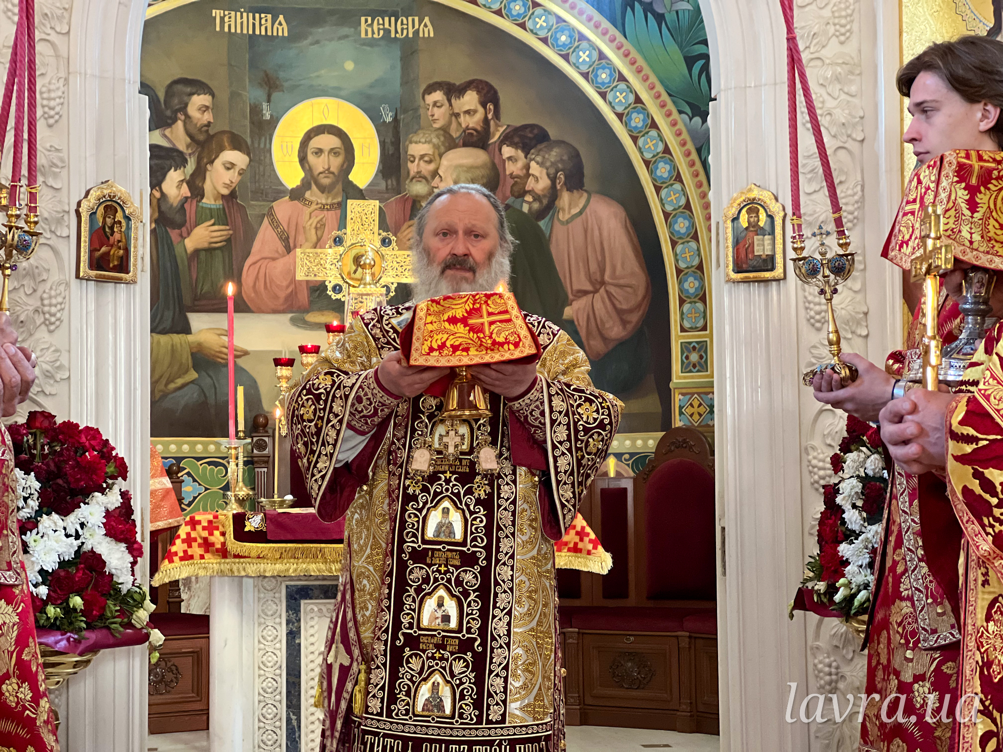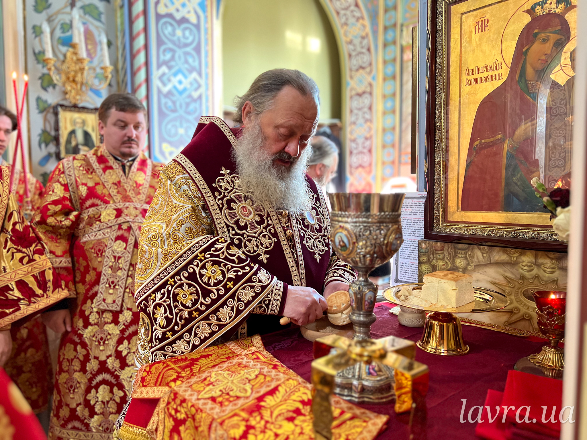 За богослужінням митрополиту Павлу співслужили голова Інформаційно-просвітницького відділу УПЦ митрополит Ніжинський і Прилуцький Климент, духовенство Лаври, а також сонм священнослужителів Української Православної Церкви.