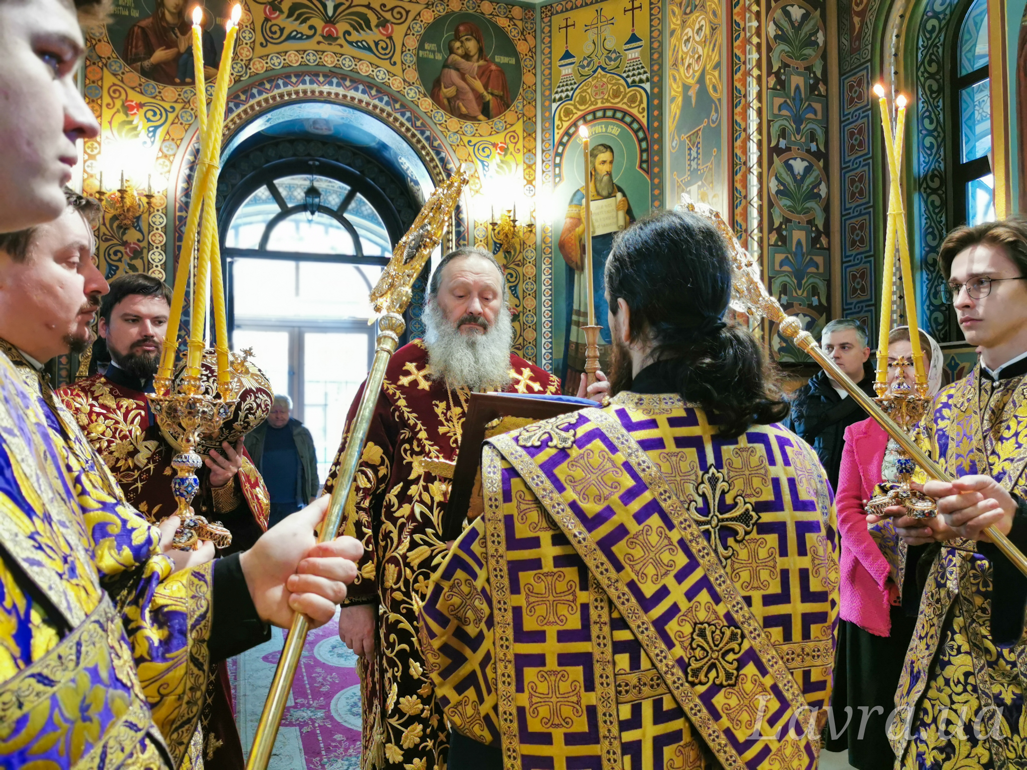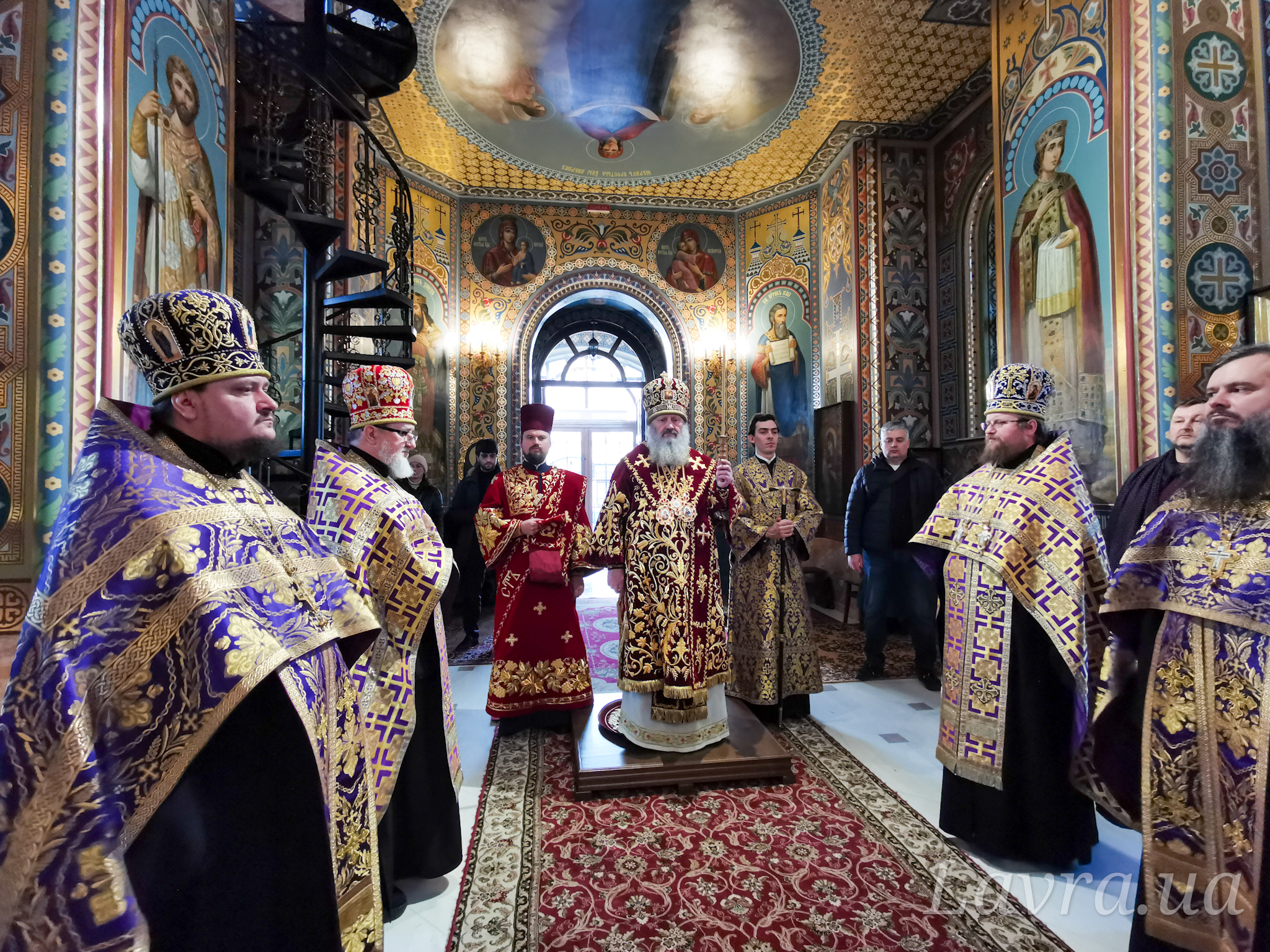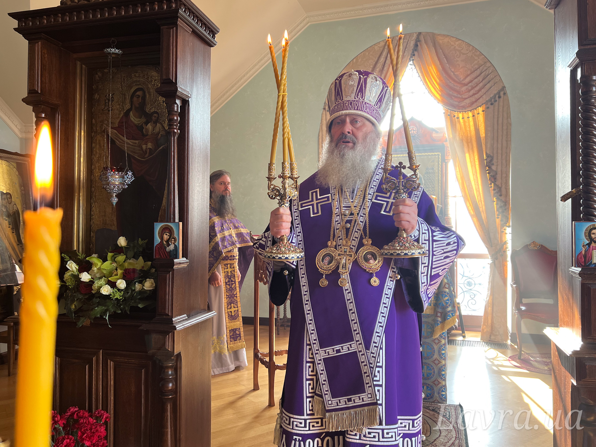 Напередодні увечері митрополит Павло очолив вечірнє поліелейне богослужіння у головному храмі скиту Києво-Печерської обителі.