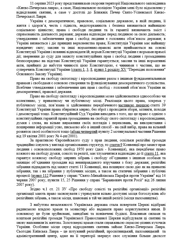 Позовна заява до Печерського районного суду м. Києва