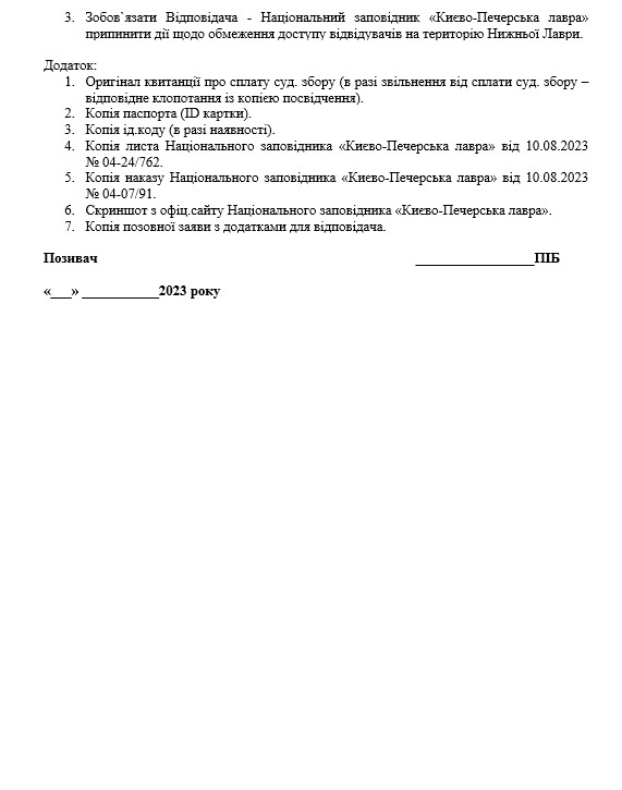- Разом з Позовом подається його копія в одному екземплярі зі всіма додатками для відповідача.