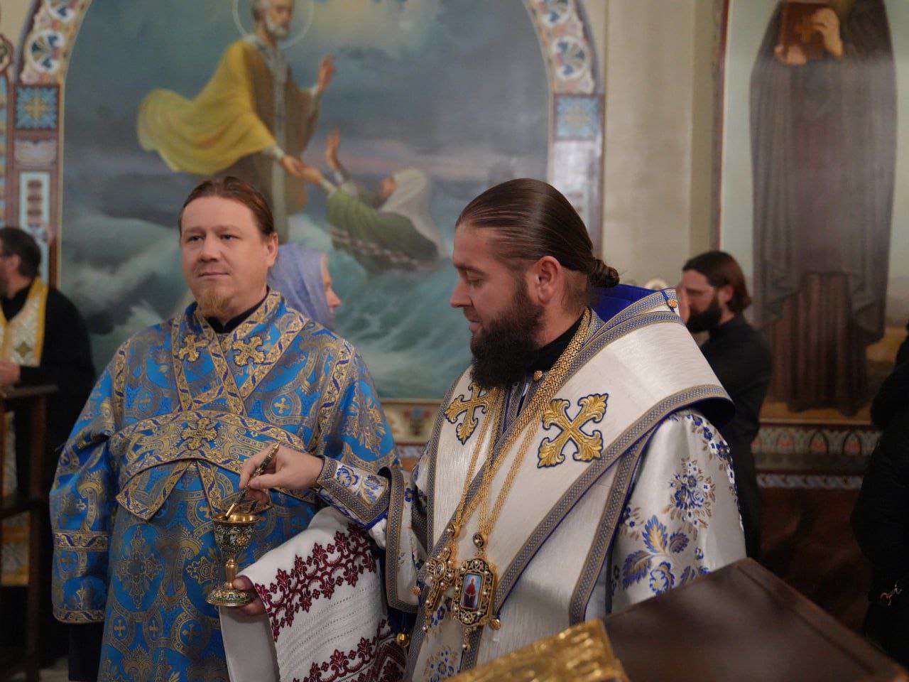 Під час недільної Літургії Предстоятелю Української Православної Церкви співслужили керуючий справами УПЦ митрополит Бориспільський і Броварський Антоній, архієпископ Білогіродський Сильвестр, архієпископ Ірпінський Лавр, архієпископ Бородянський Марк, а також братія та гості обителі у священному сані на чолі з духівником монастиря архімандритом Антонієм.