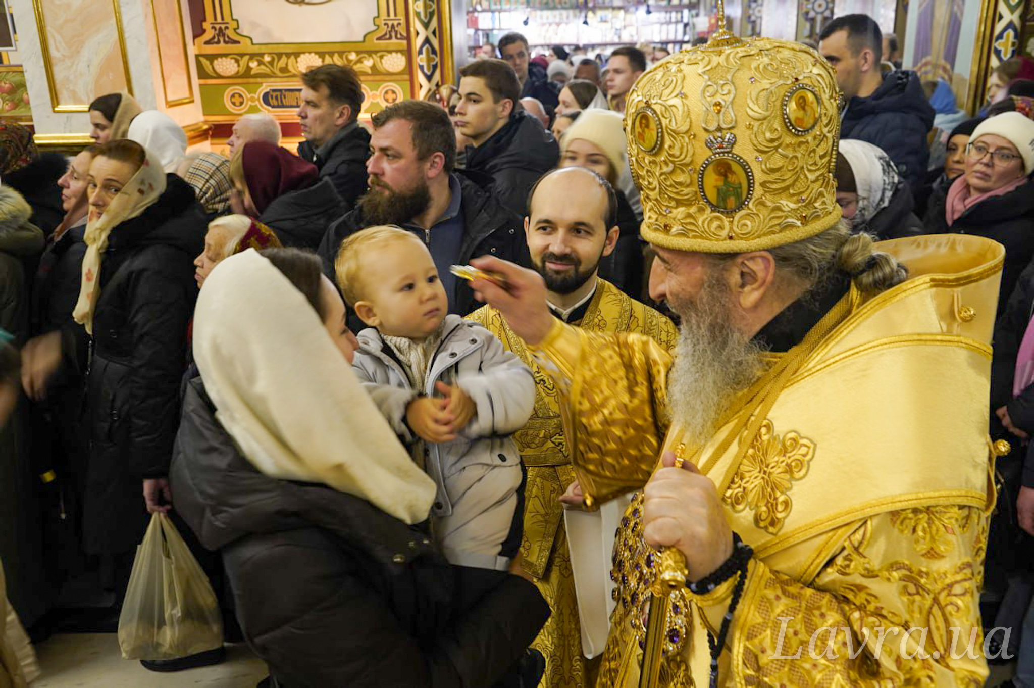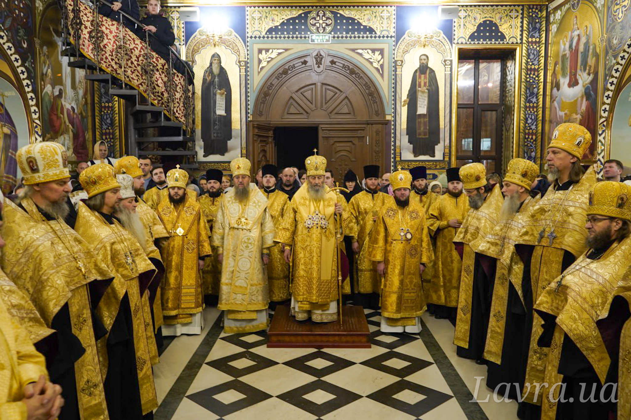 Під час богослужіння в лаврському храмі в ім’я прп. Агапіта Печерського Предстоятелю Української Православної Церкви співслужили керуючий справами УПЦ митрополит Бориспільський і Броварський Антоній, єпископ Ірпінський Лавр, єпископ Бородянський Марк, братія та гості монастиря у священному сані.