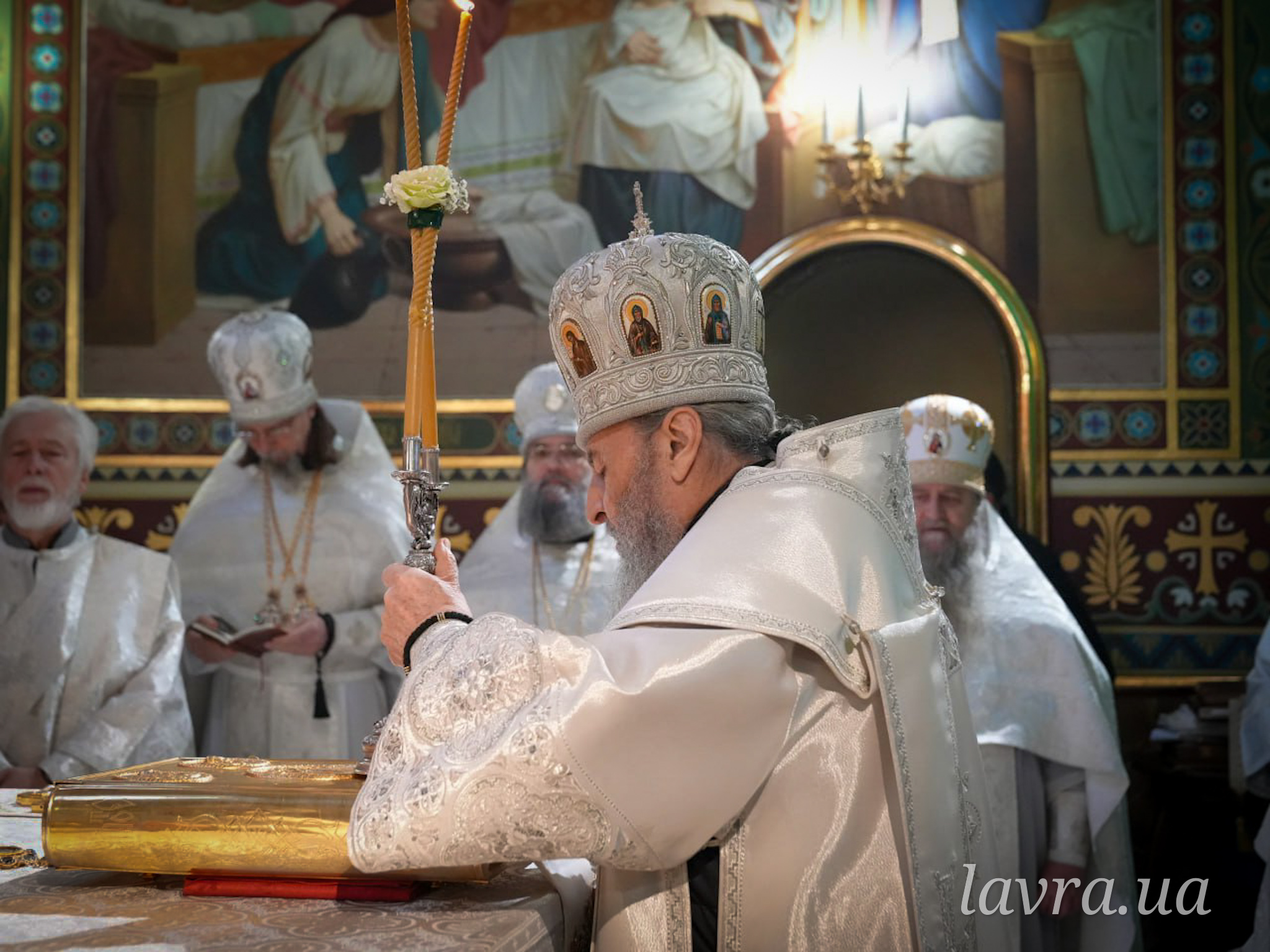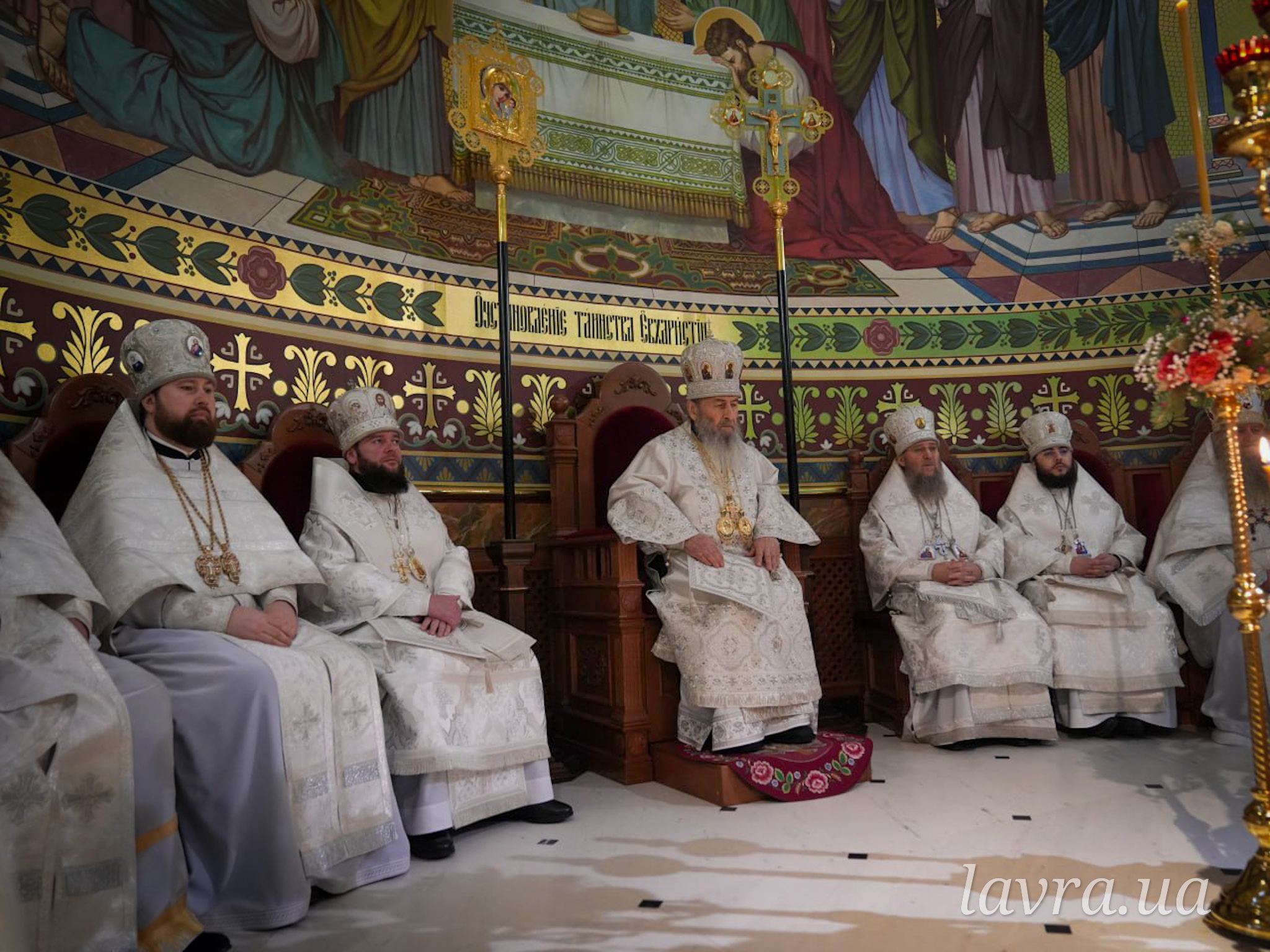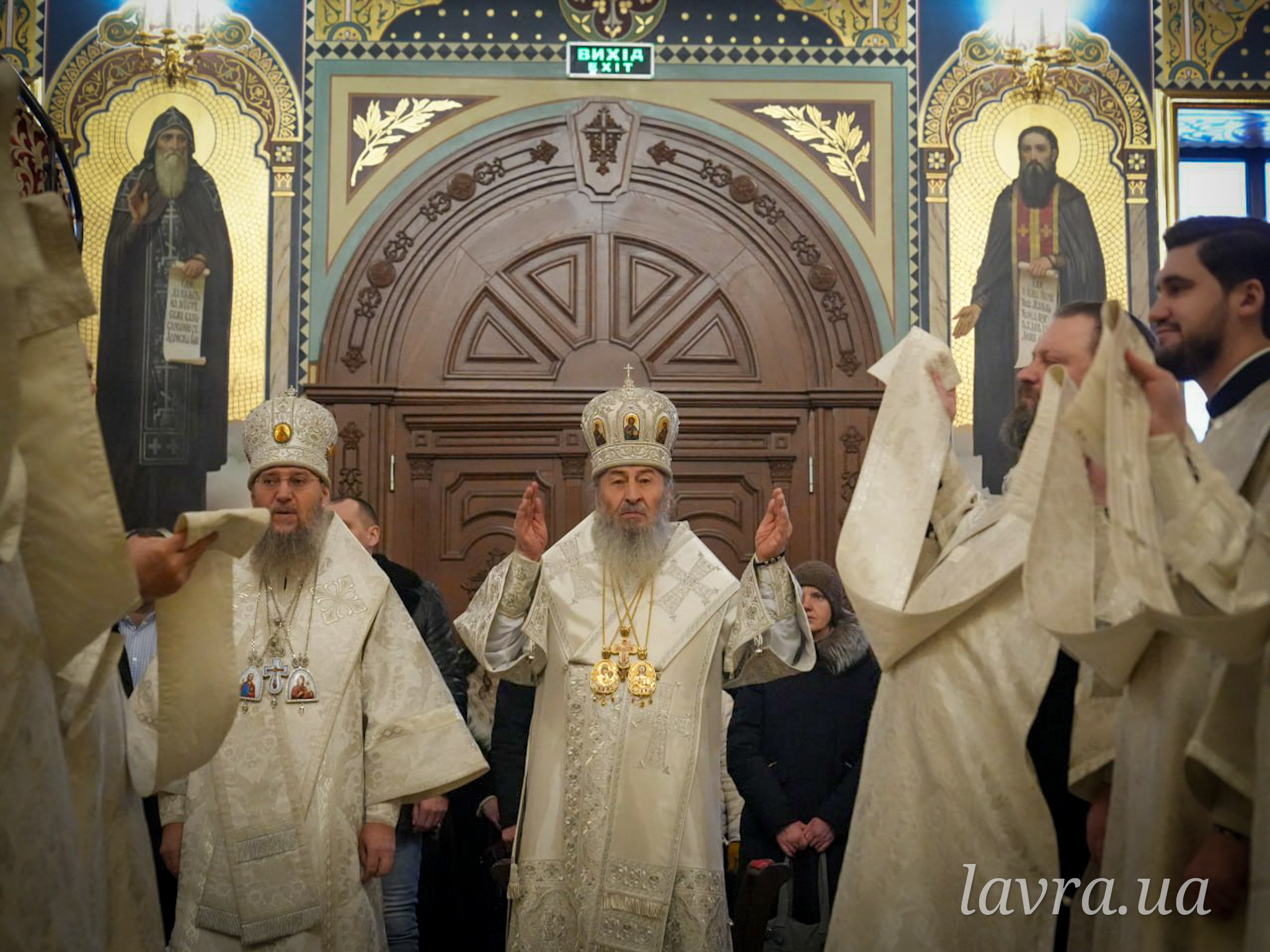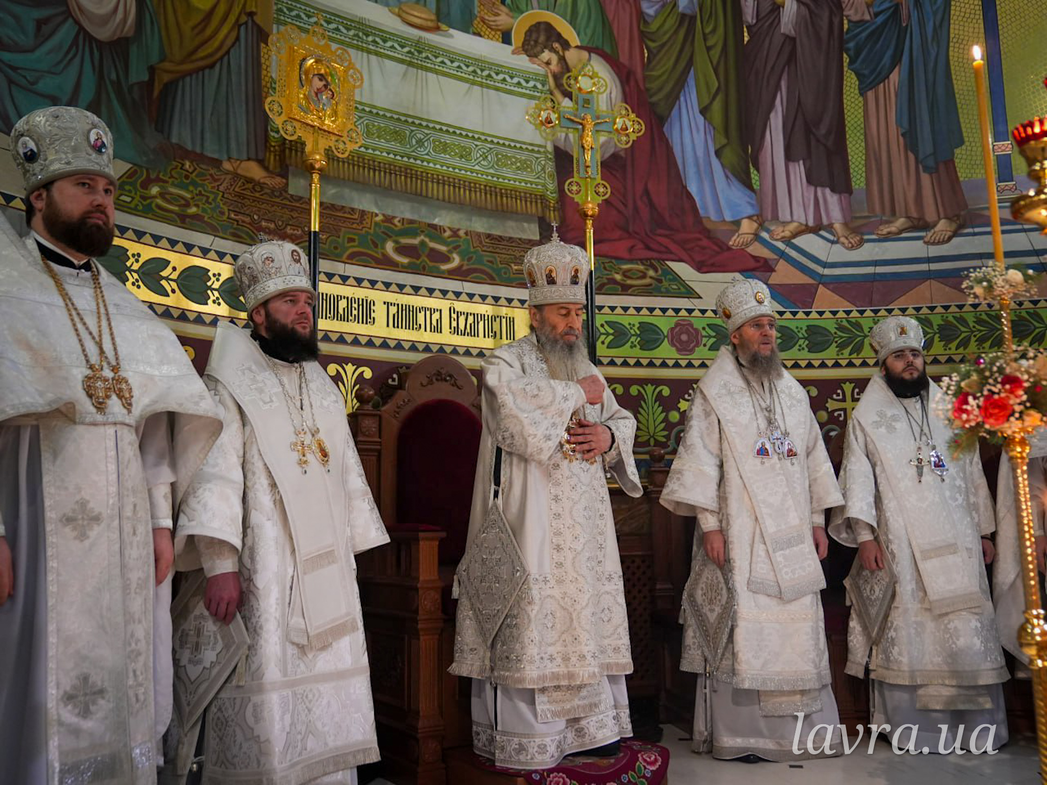 У храмі прп. Агапіта Печерського Блаженнішому Митрополиту Київському і всієї України Онуфрію співслужили керуючий справами УПЦ митрополит Бориспільський і Броварський Антоній, архієпископ Ірпінський Лавр, архієпископ Бородянський Марк, а також братія і гості обителі у священному сані на чолі з духівником монастиря архімандритом Антонієм.